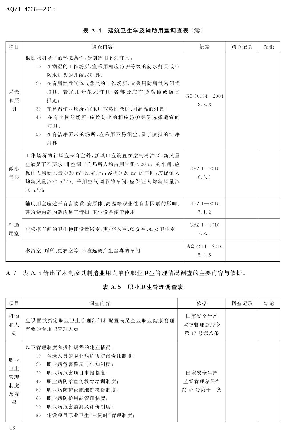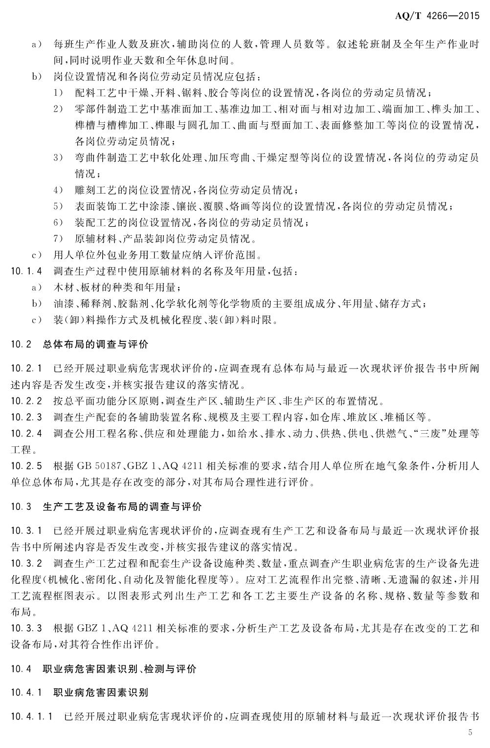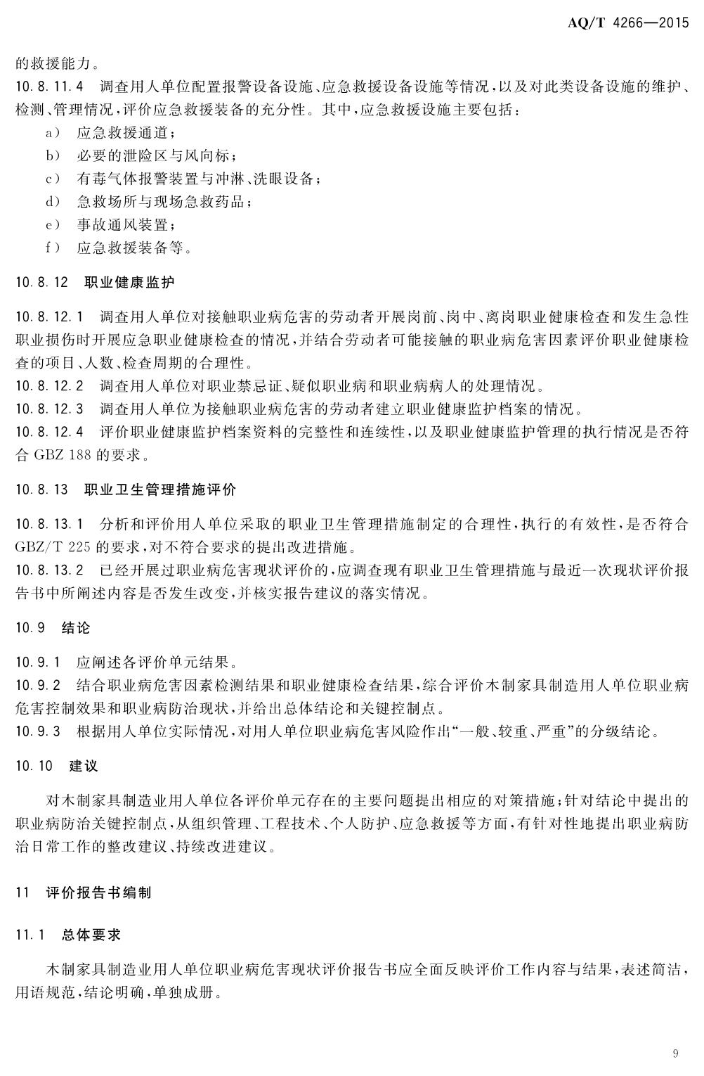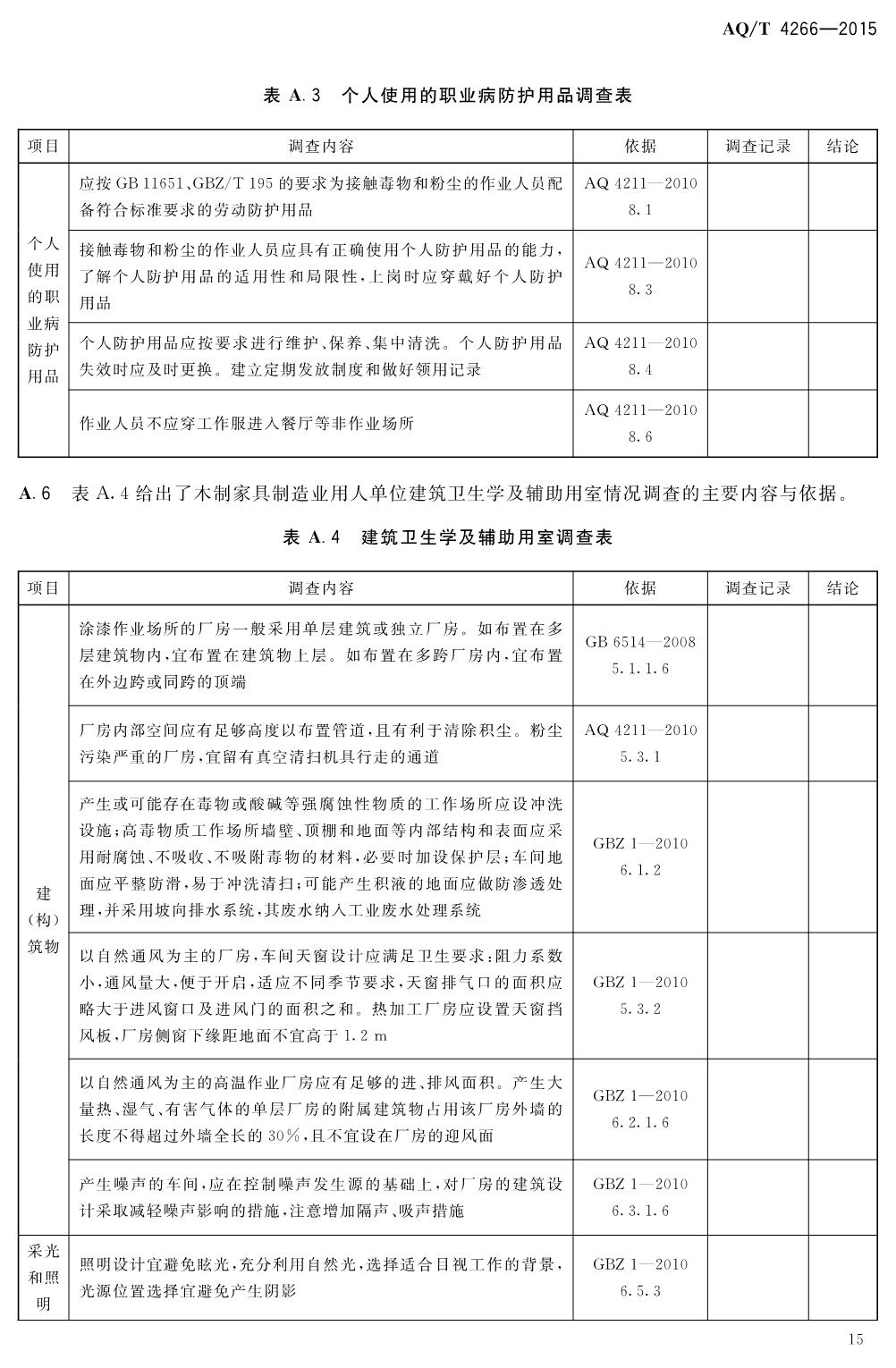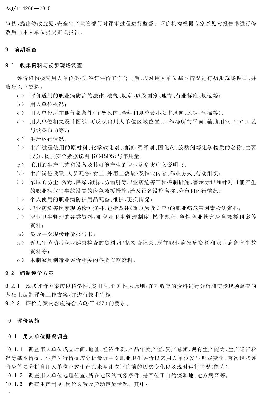 《木制家具制造业职业病危害现状评价细则》(AQT4266-2015)