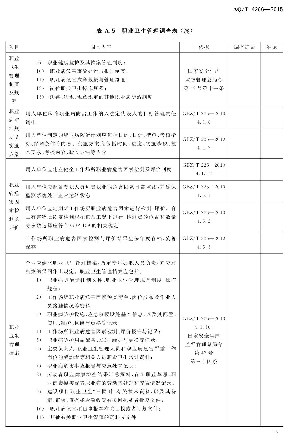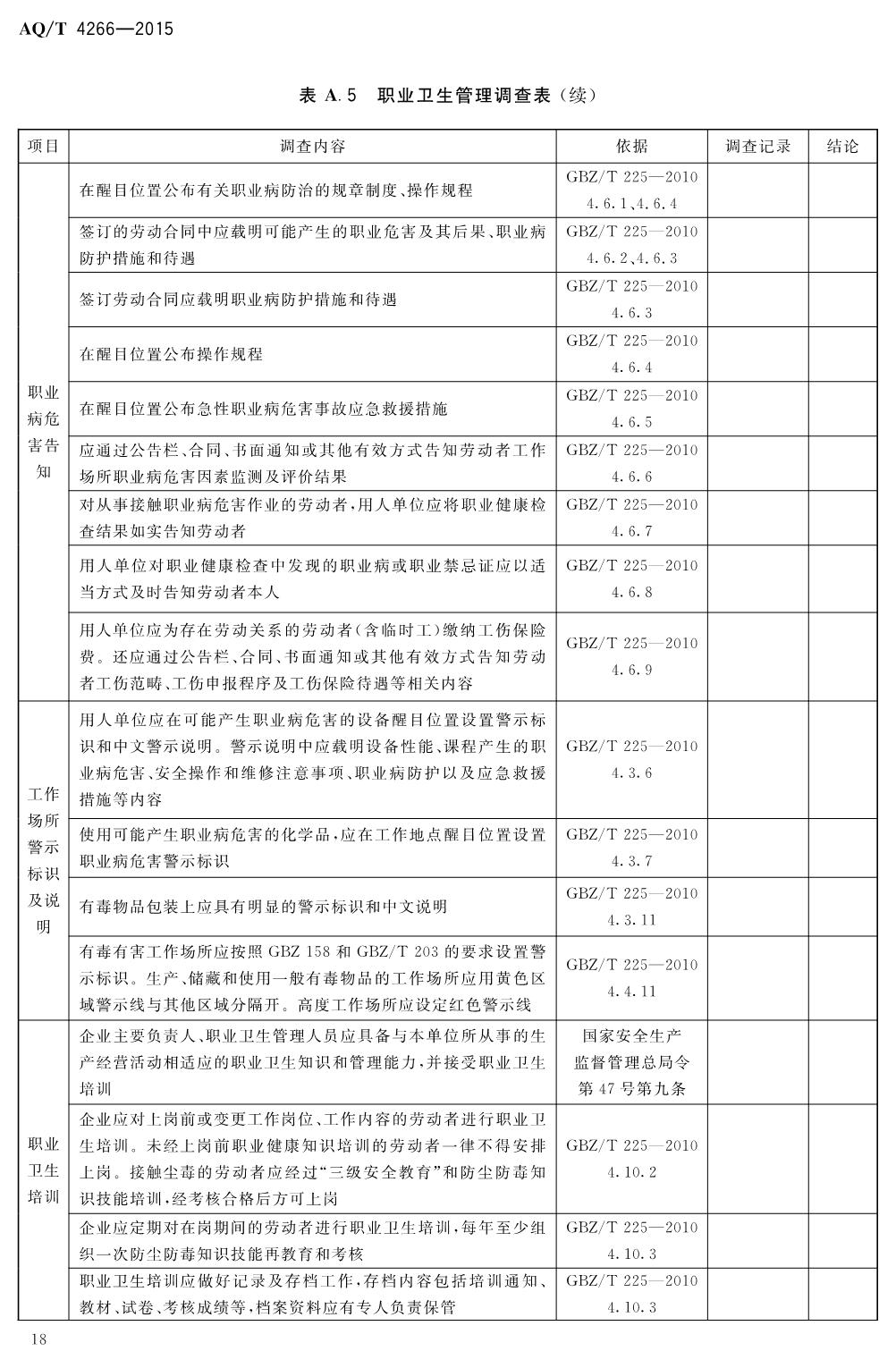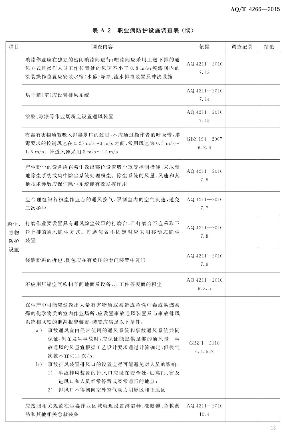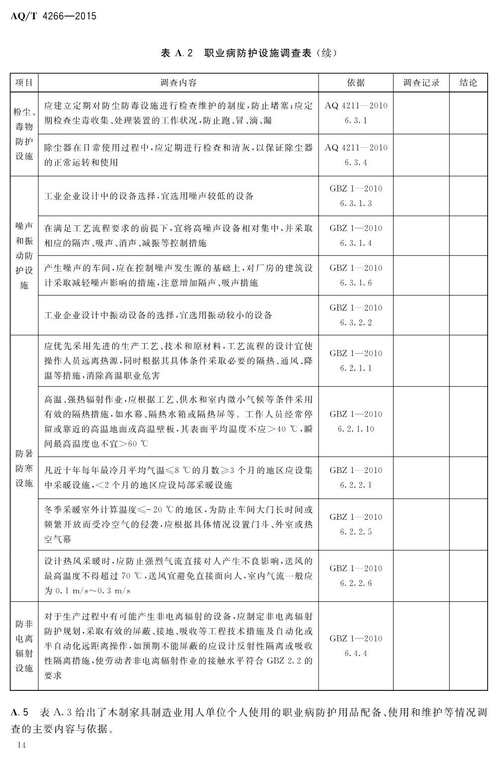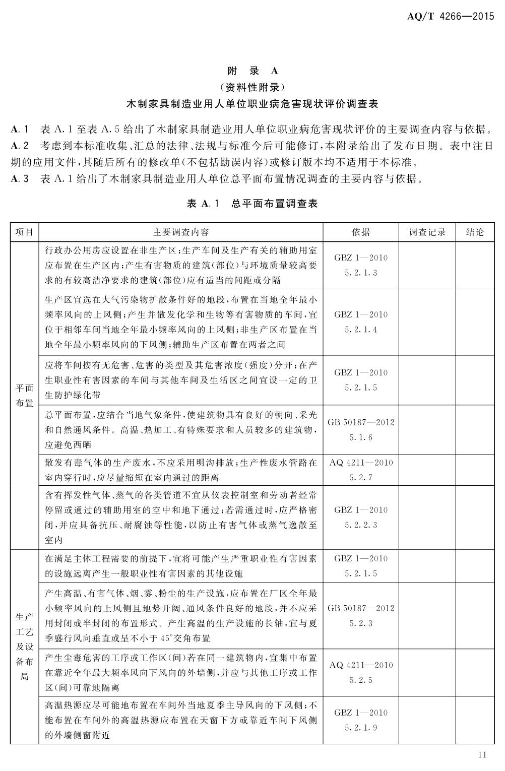 《木制家具制造业职业病危害现状评价细则》(AQT4266-2015)