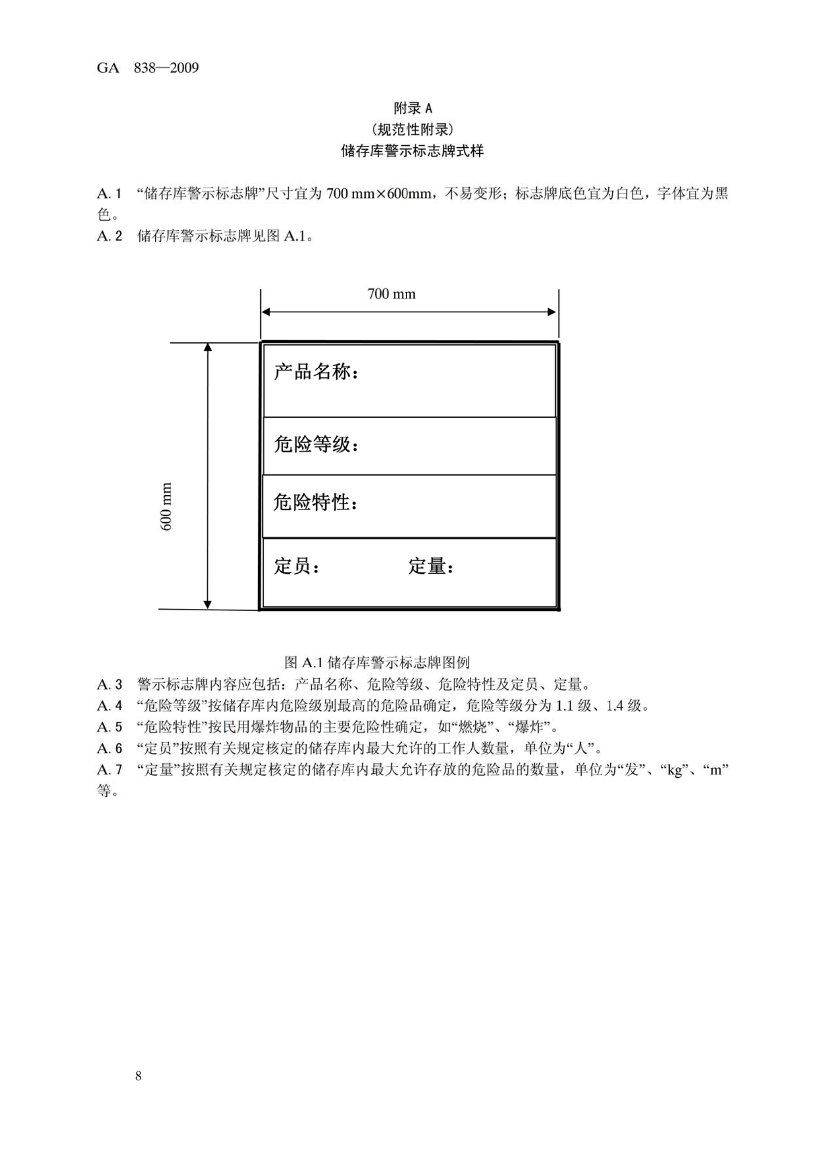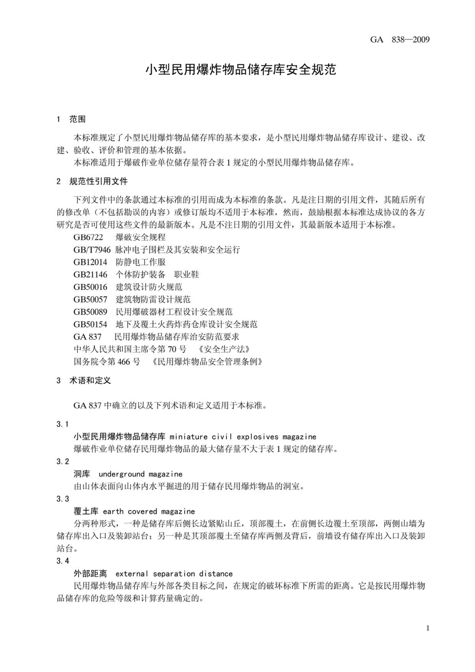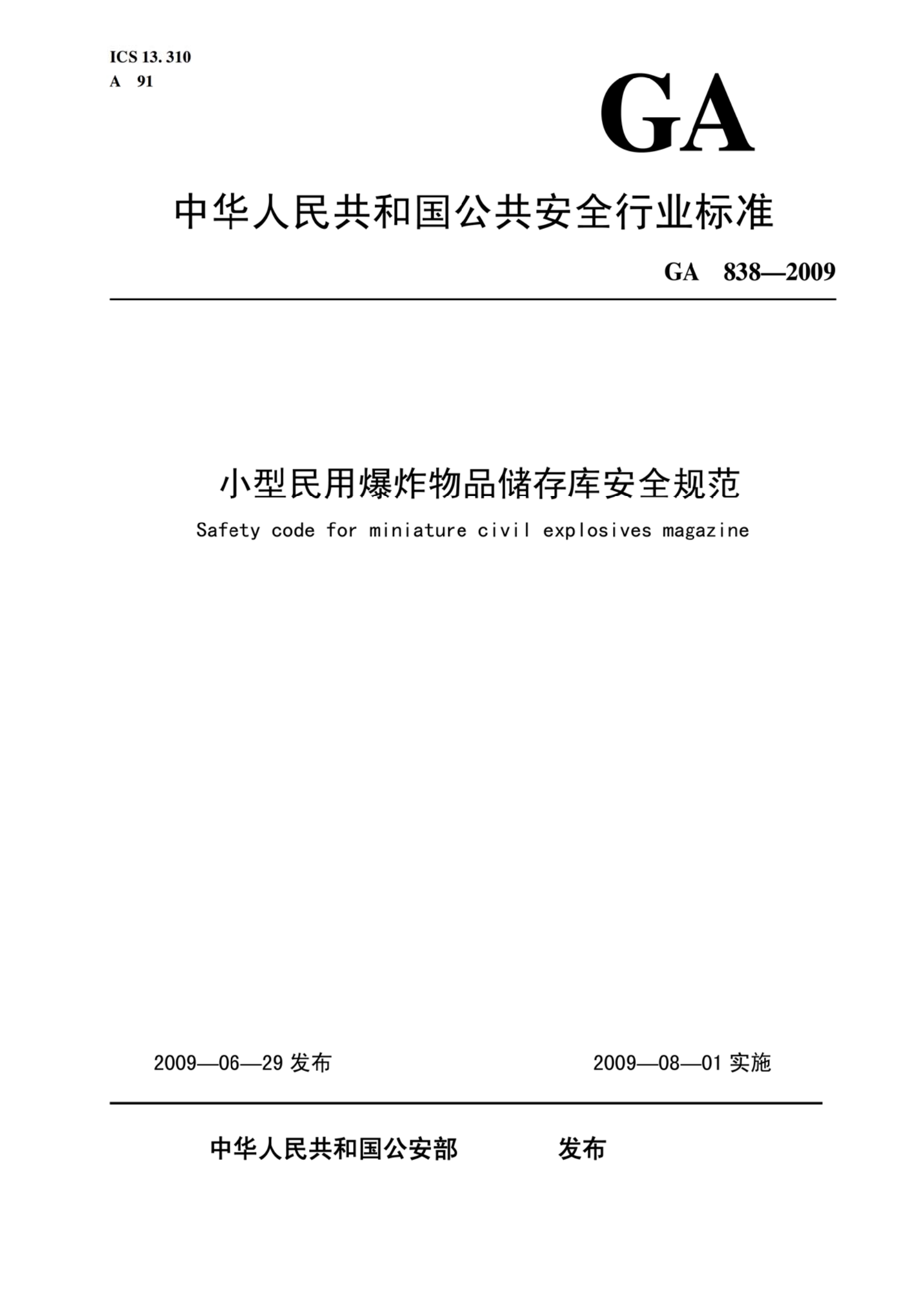 GA838—2009《小型民用爆炸物品储存库安全规范》