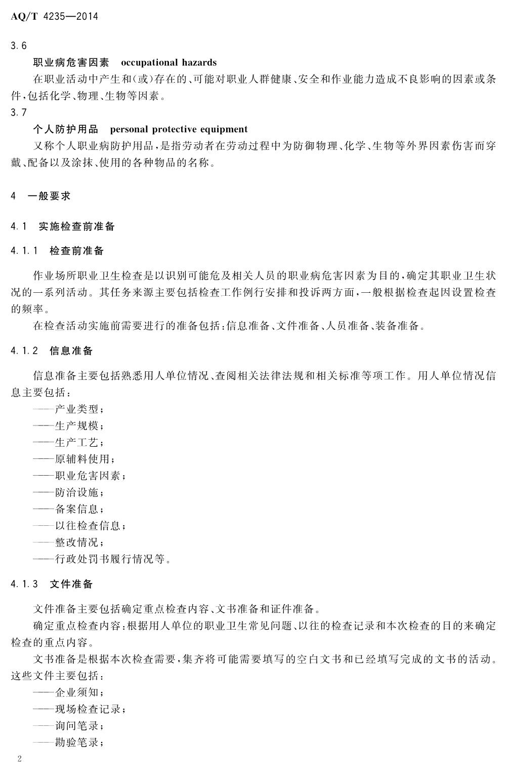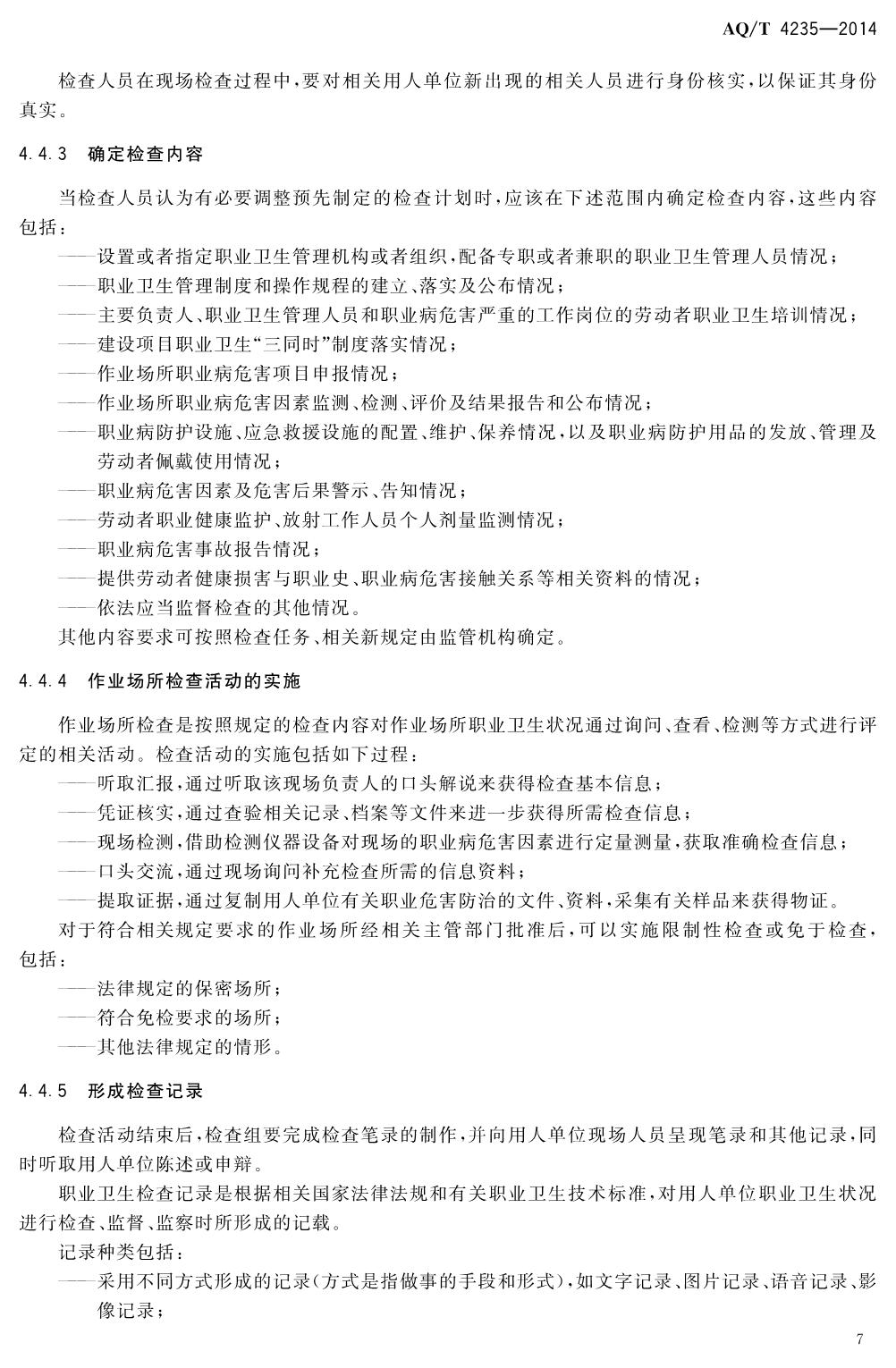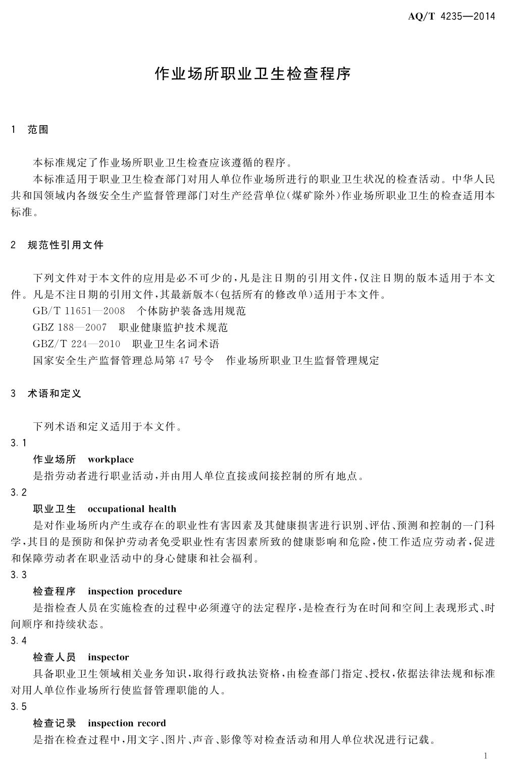 《作业场所职业卫生检查程序》(AQT4235-2014)
