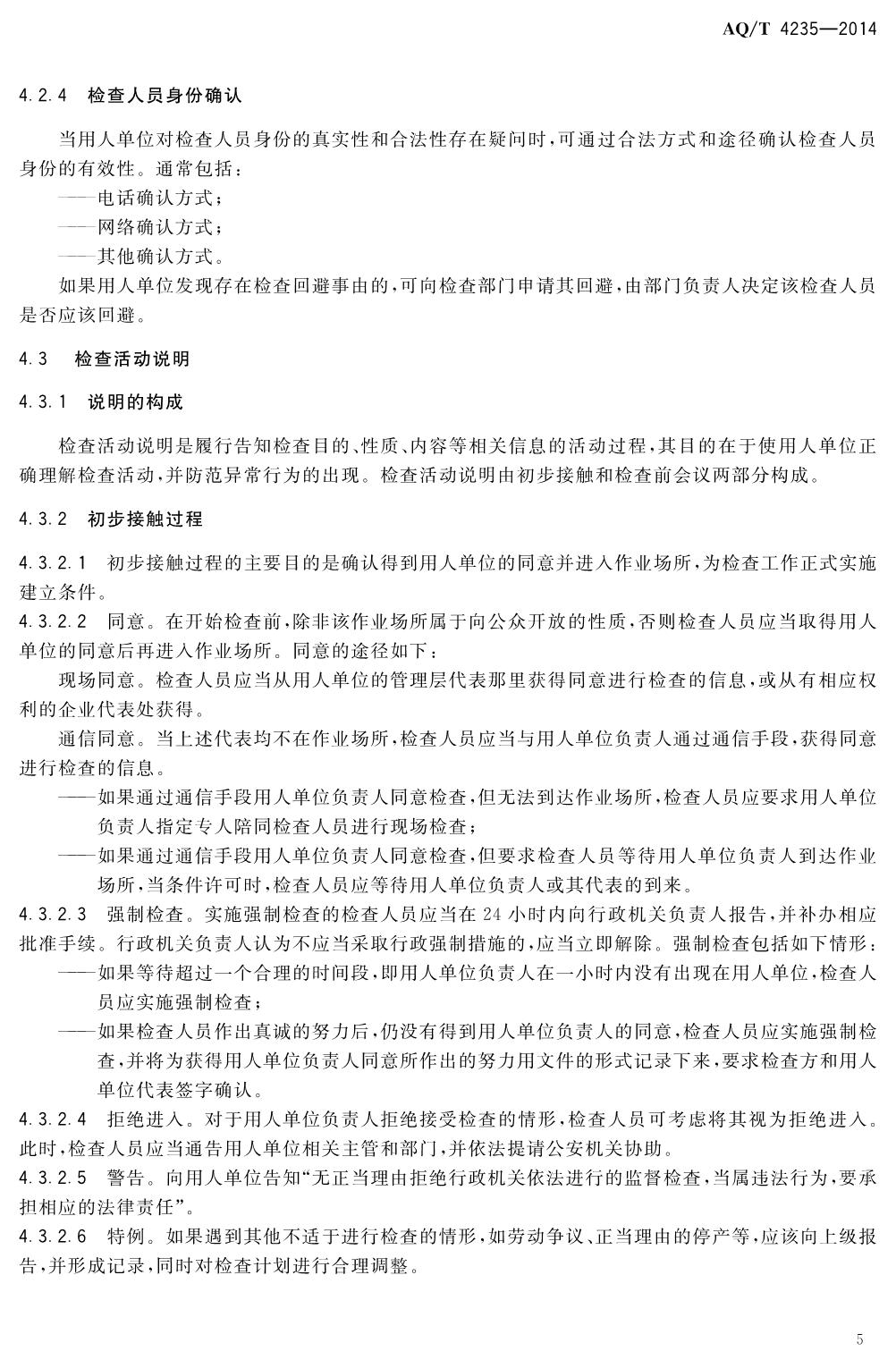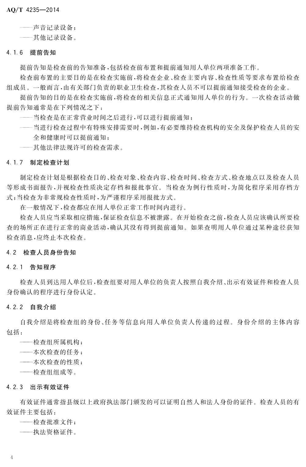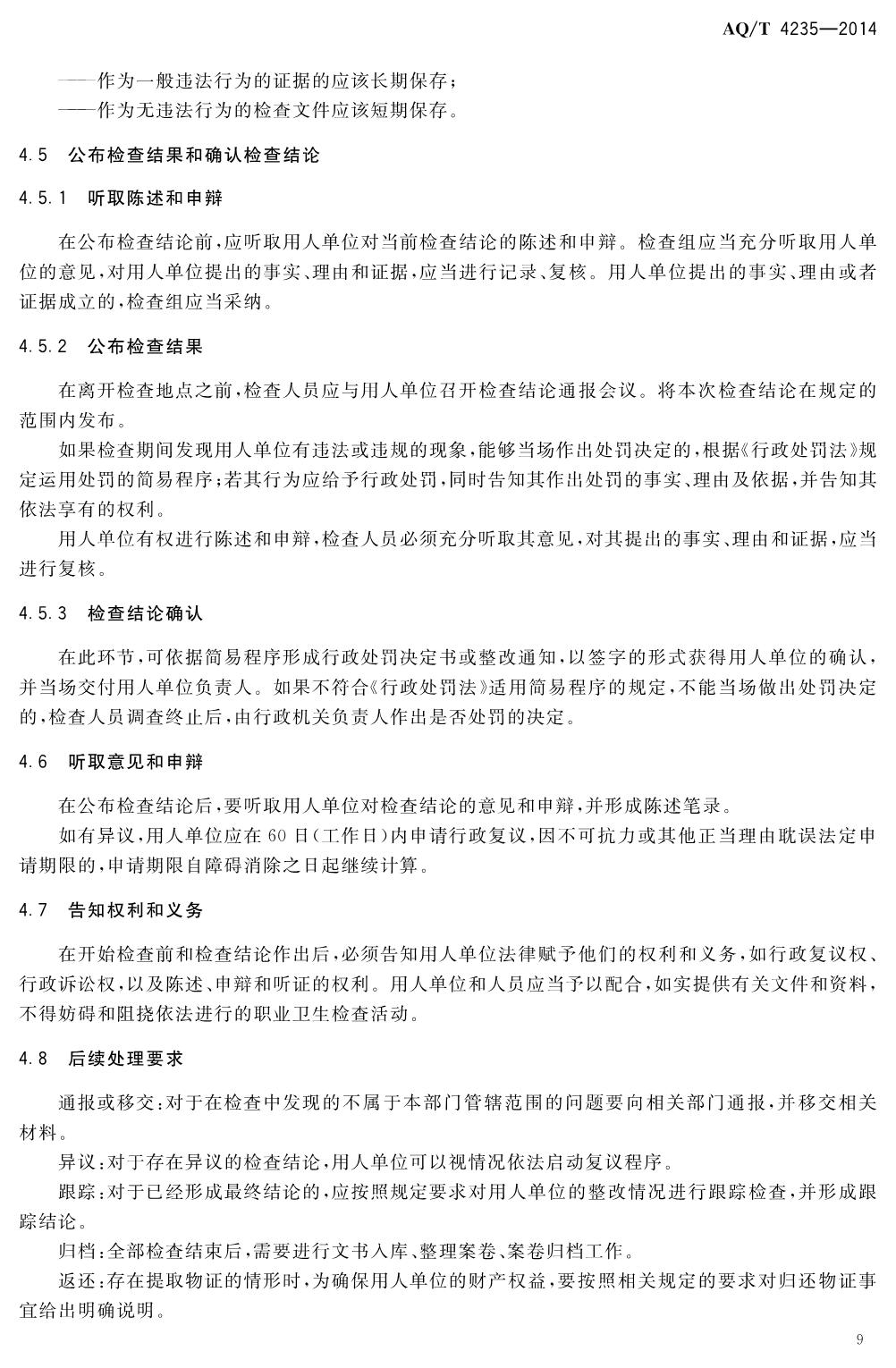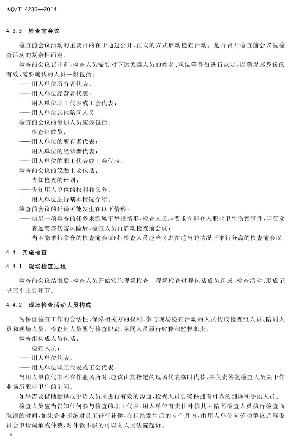 《作业场所职业卫生检查程序》(AQT4235-2014)