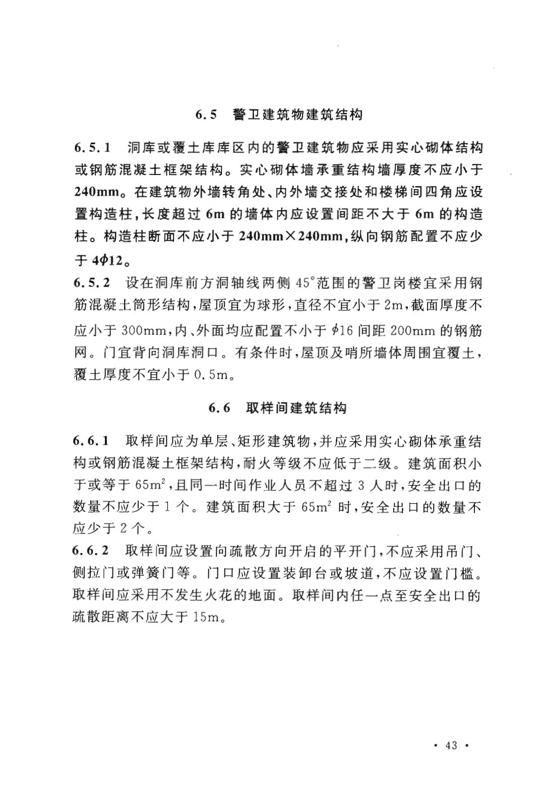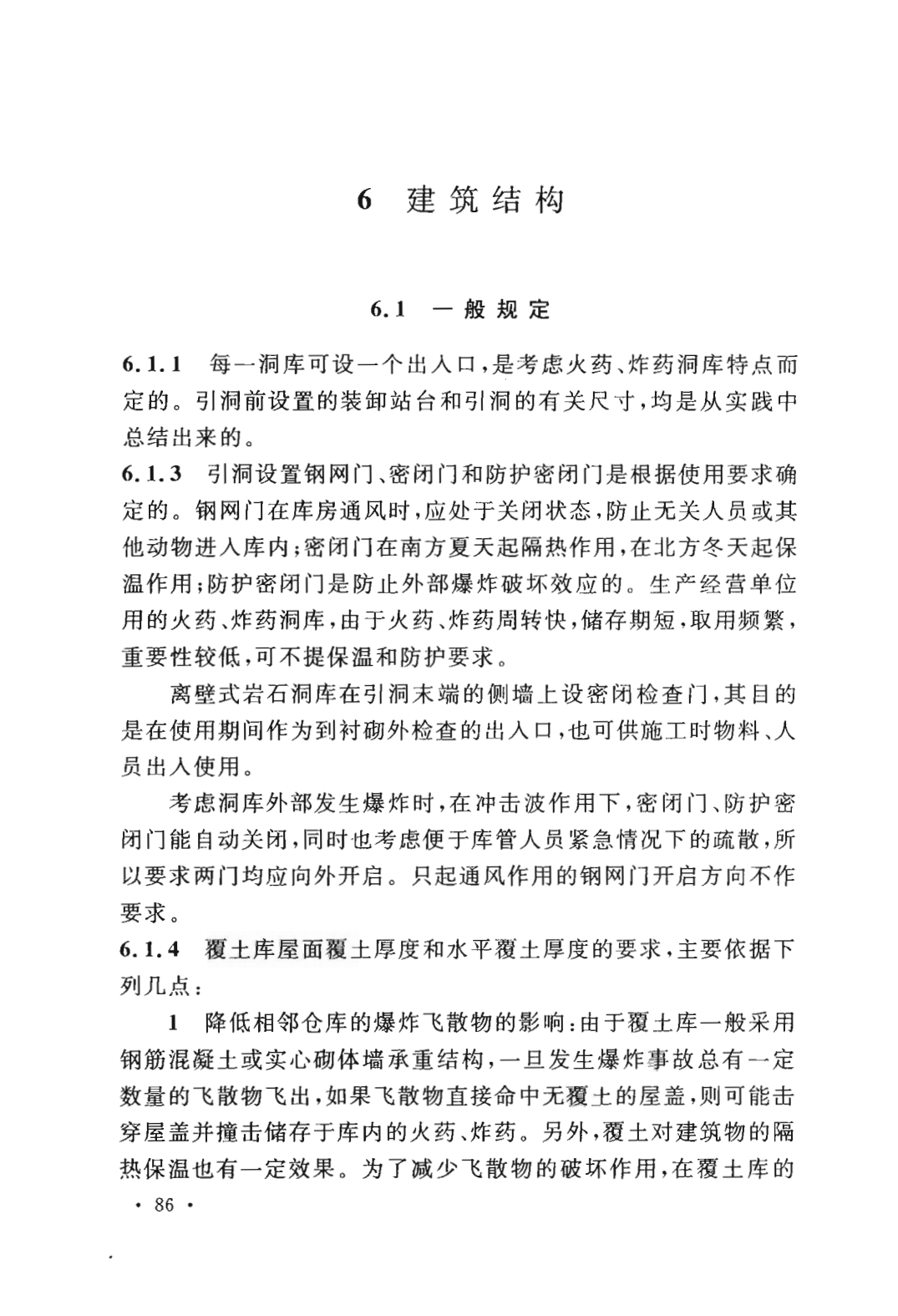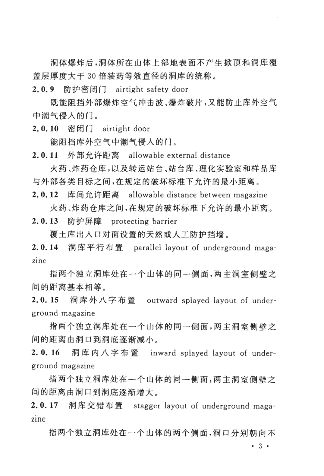 GB50154-2009地下及覆土火药炸药仓库设计安全规范