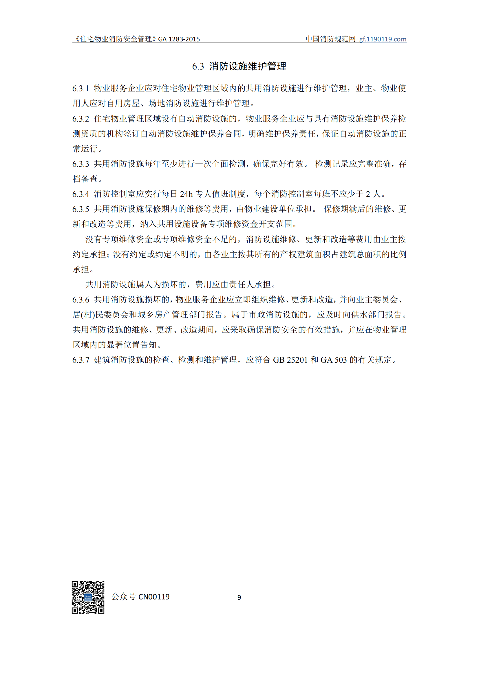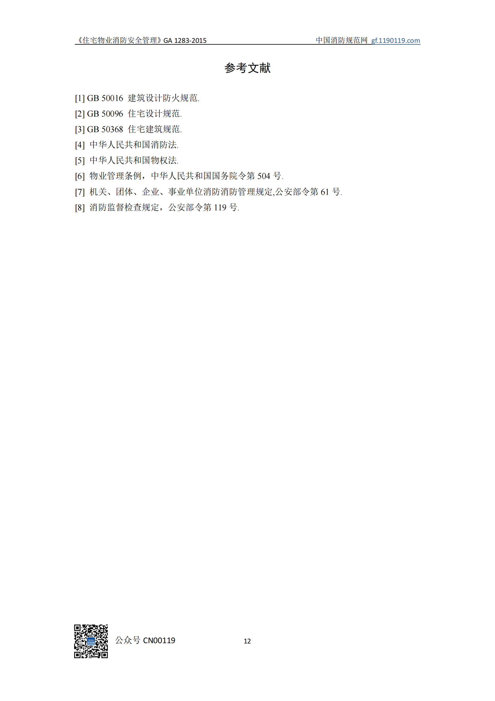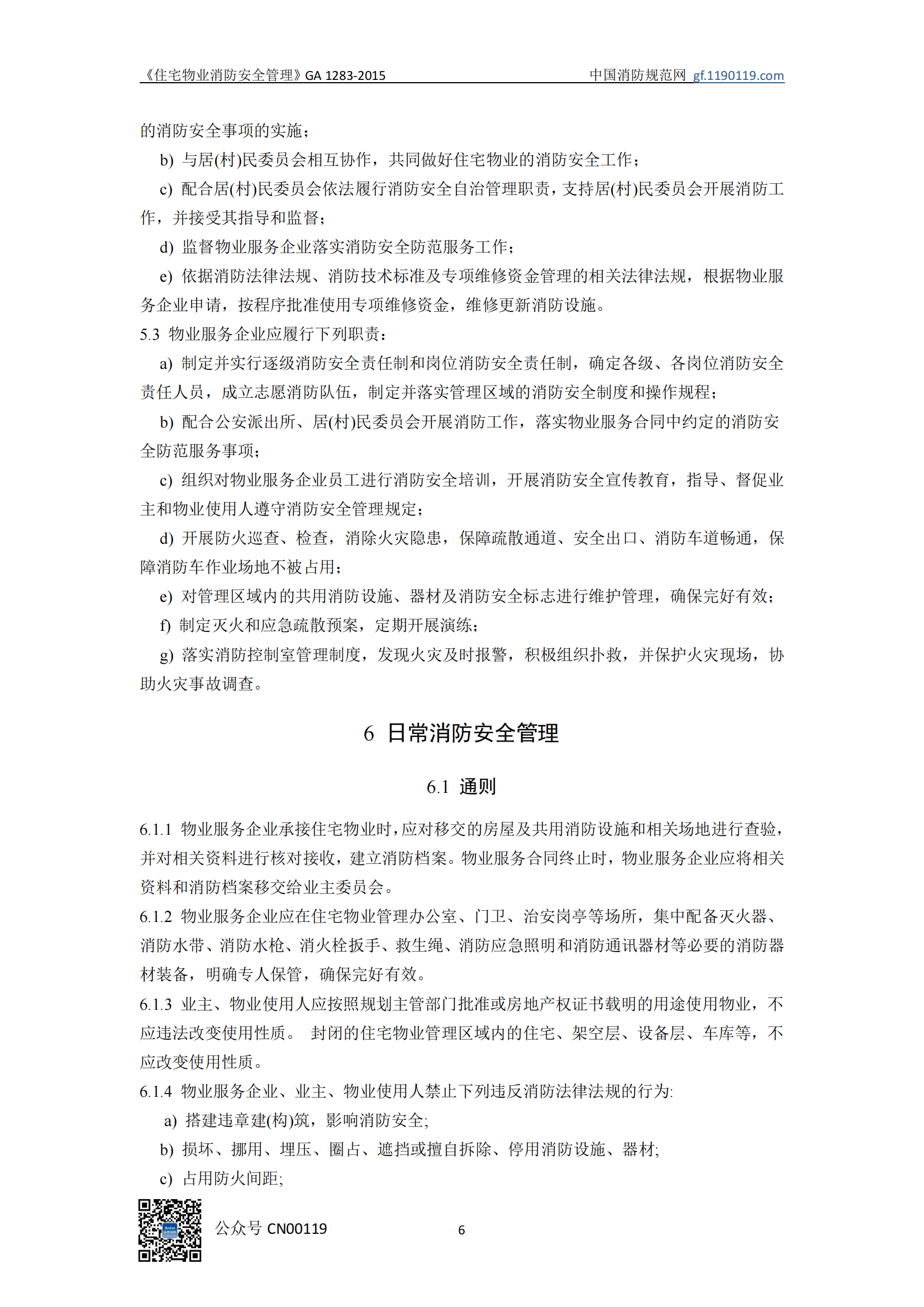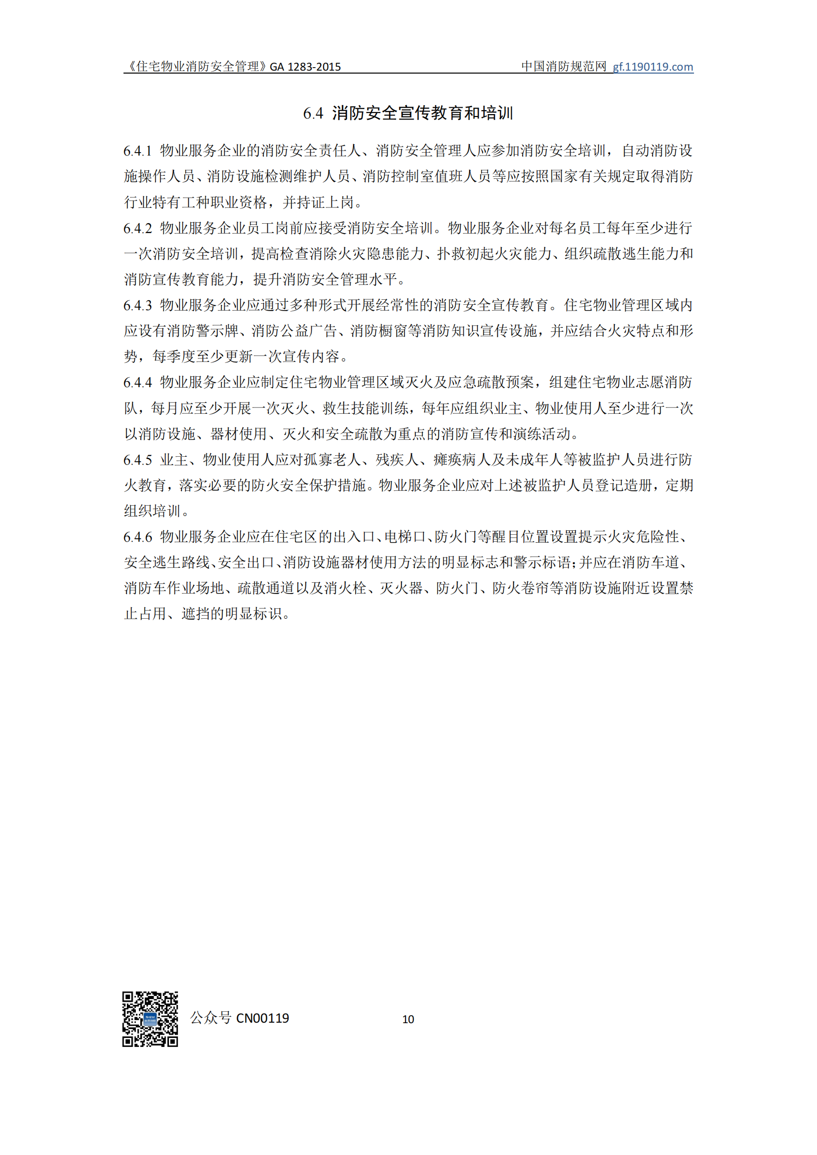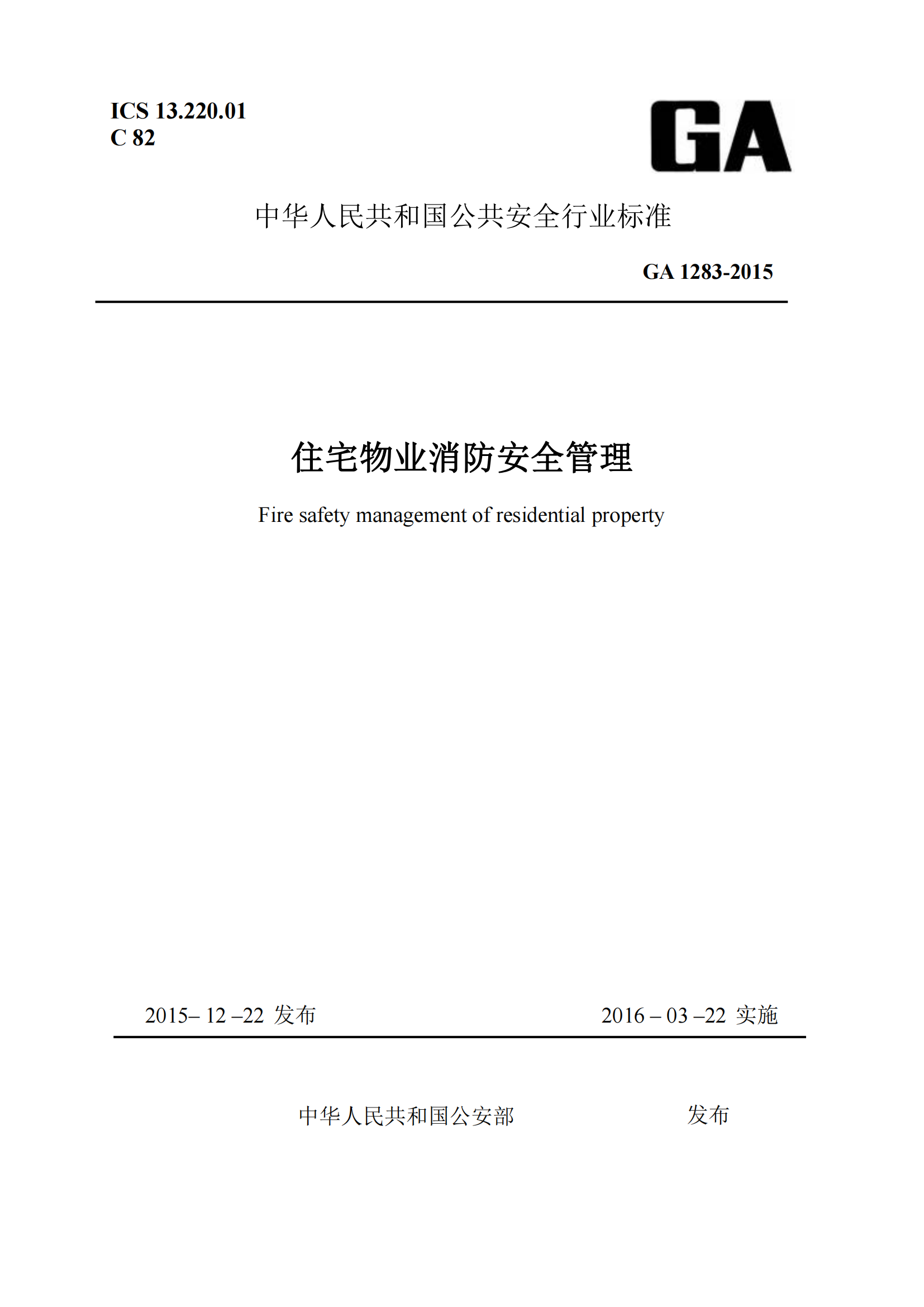 住宅物业消防安全管理GA1283-2015