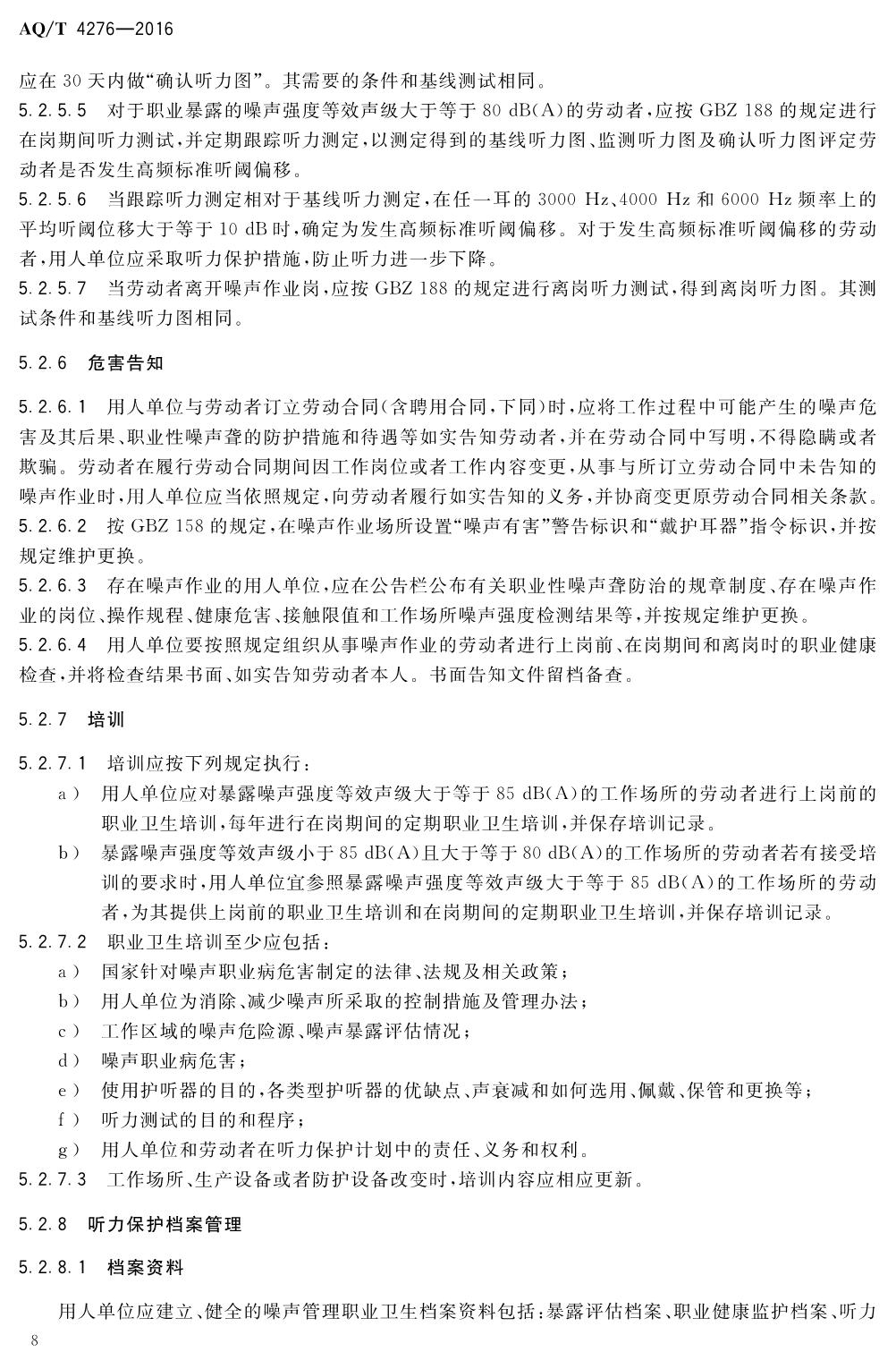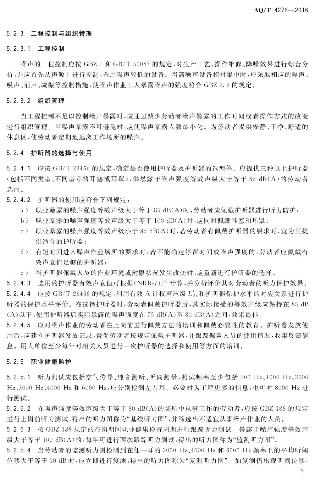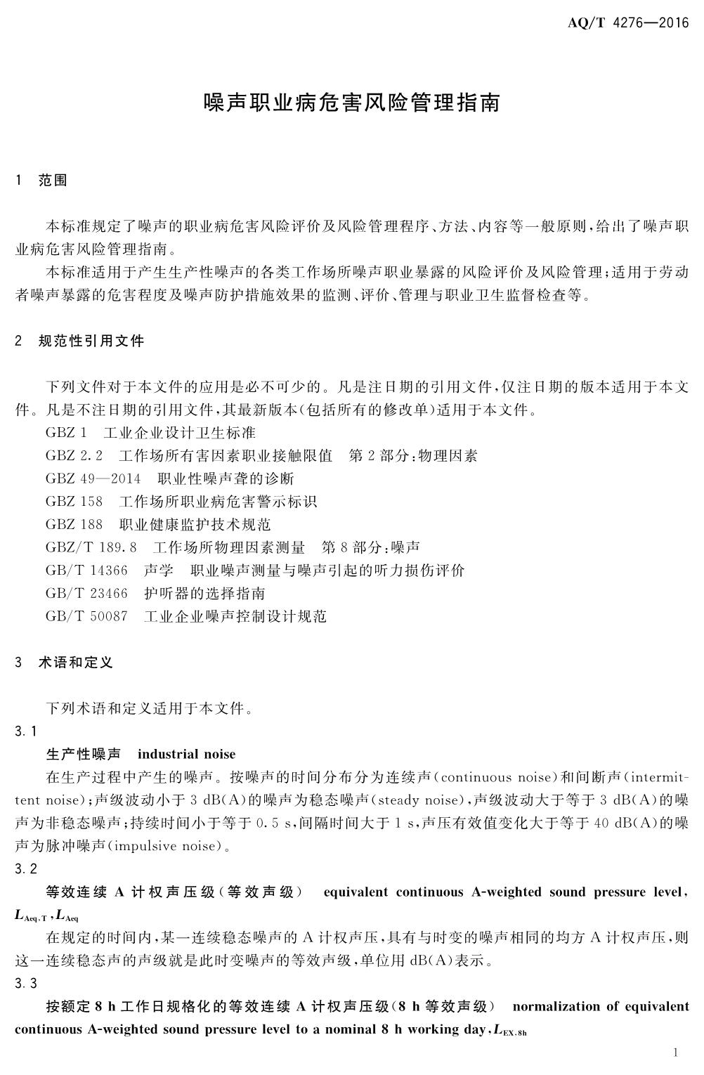 《噪声职业病危害风险管理指南》(AQT4276-2016)