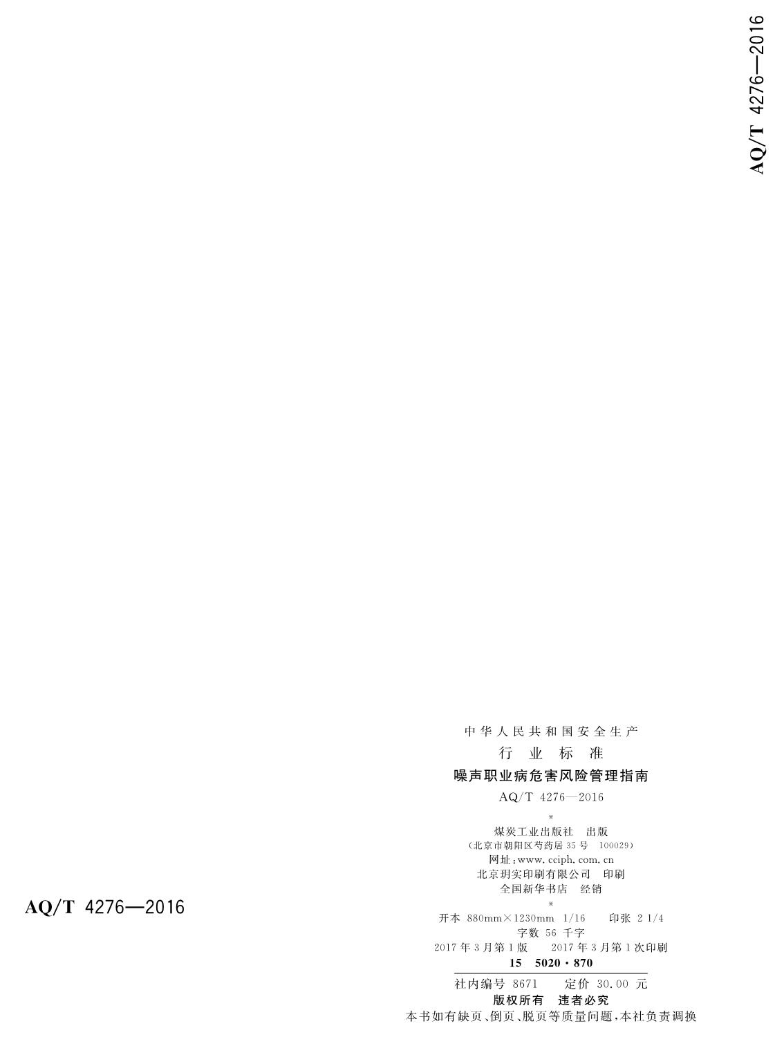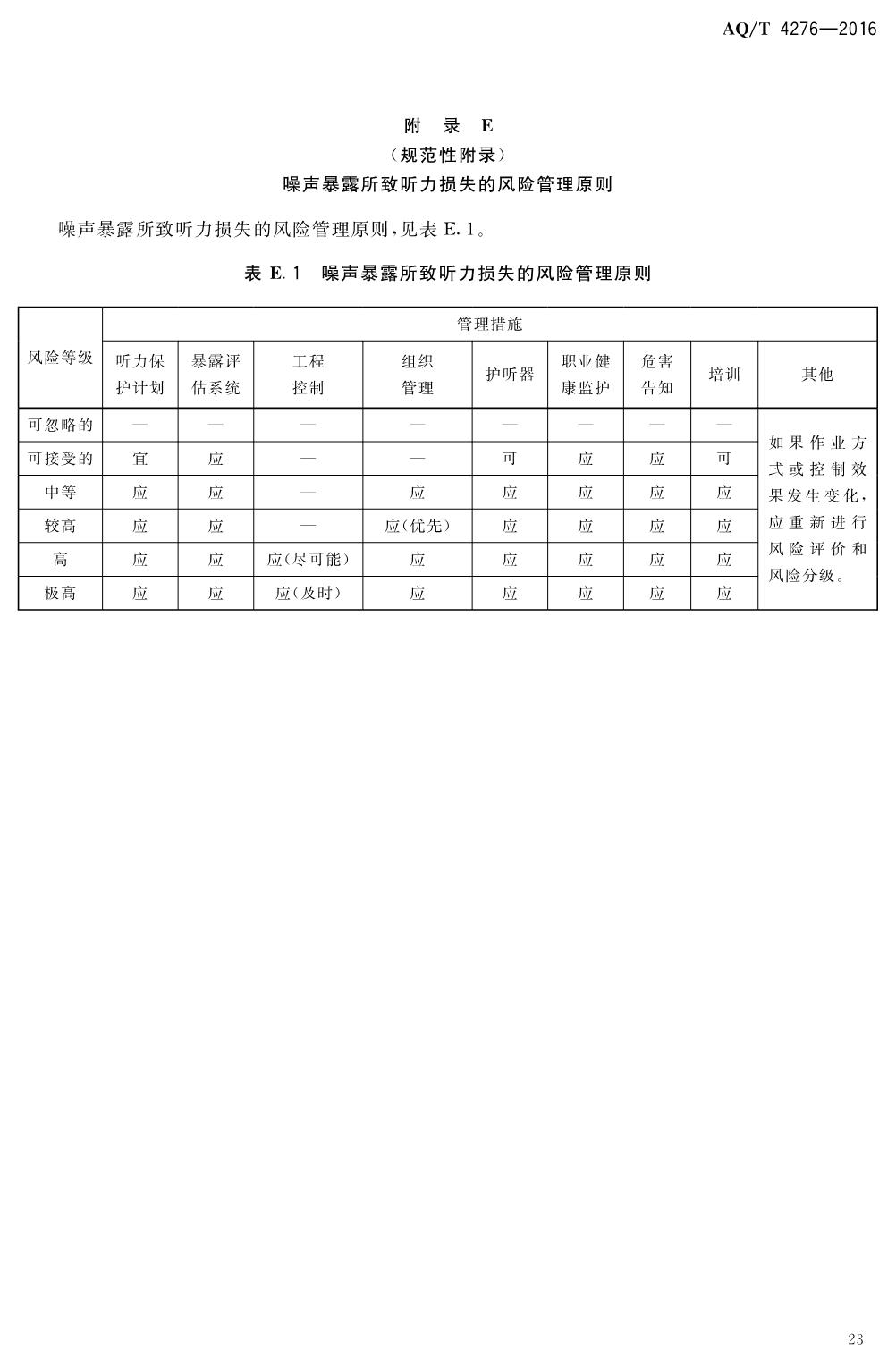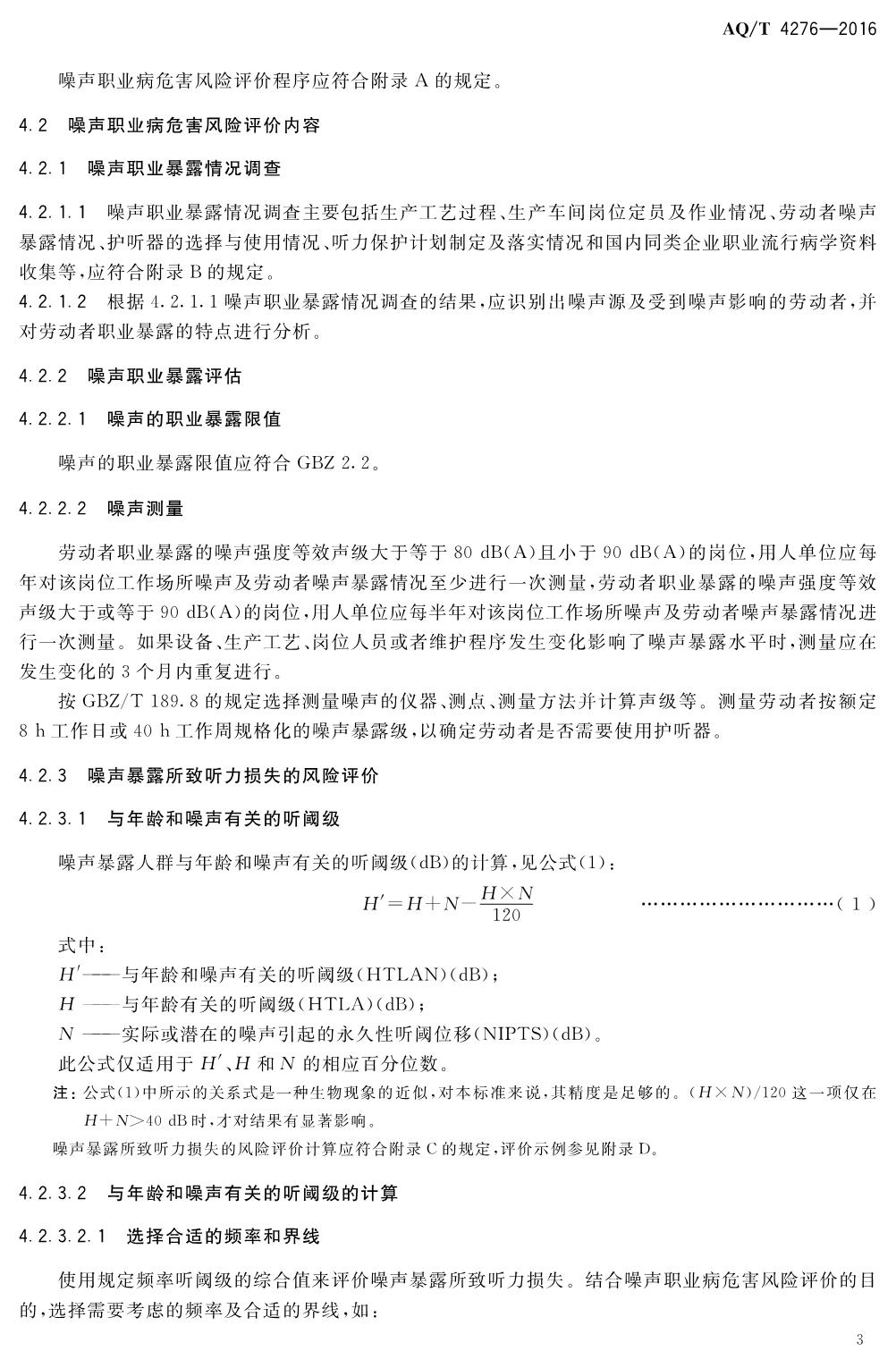 《噪声职业病危害风险管理指南》(AQT4276-2016)