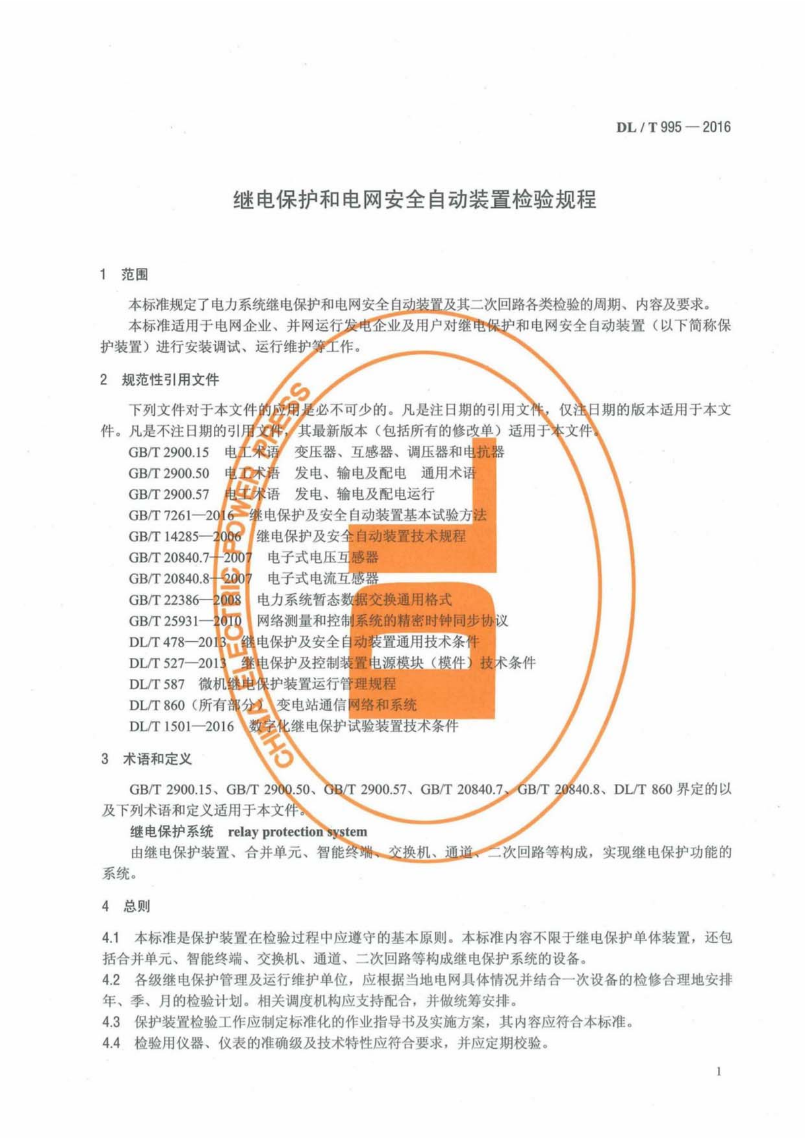 DL∕T 995-2016 继电保护和电网安全自动装置检验规程