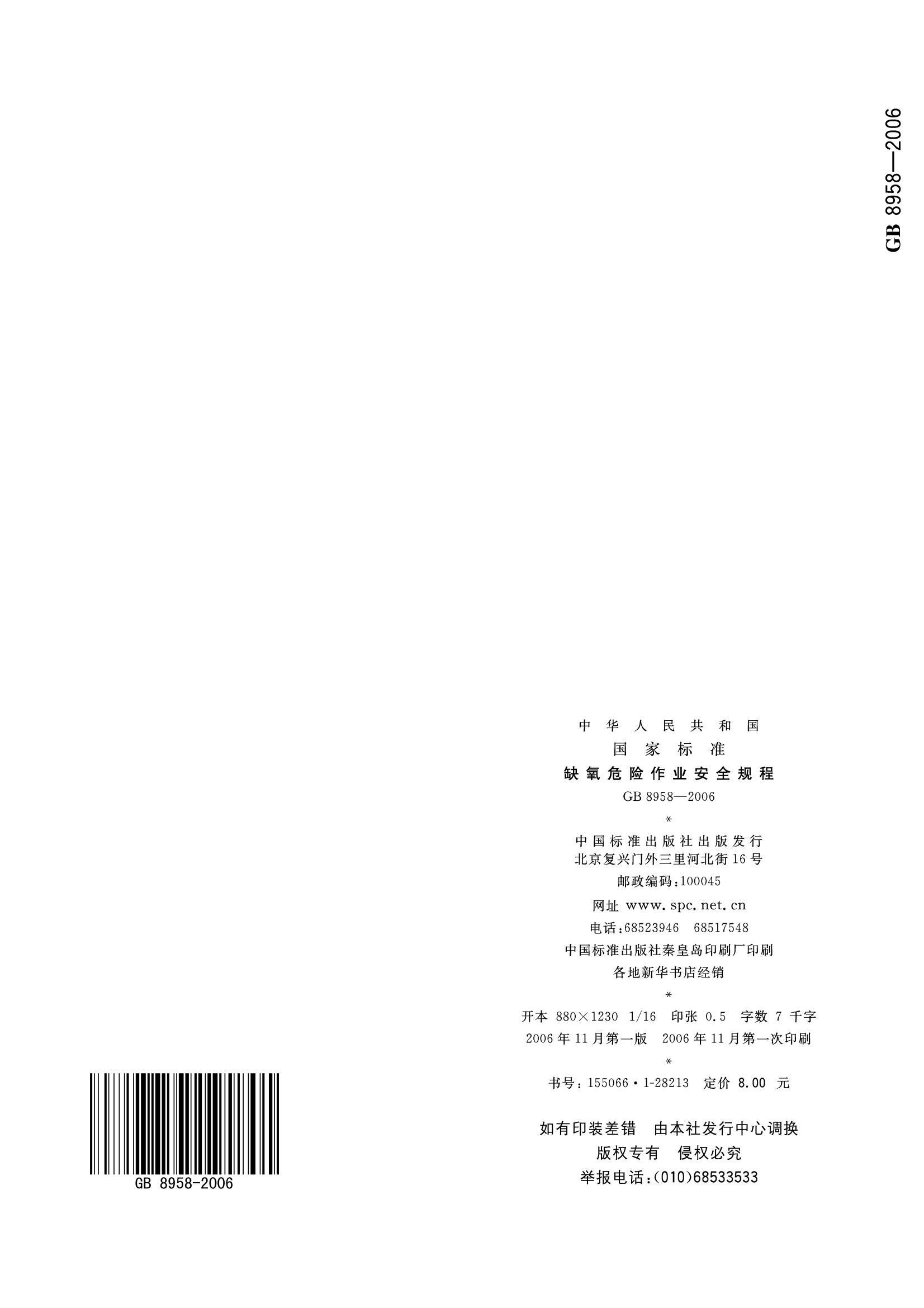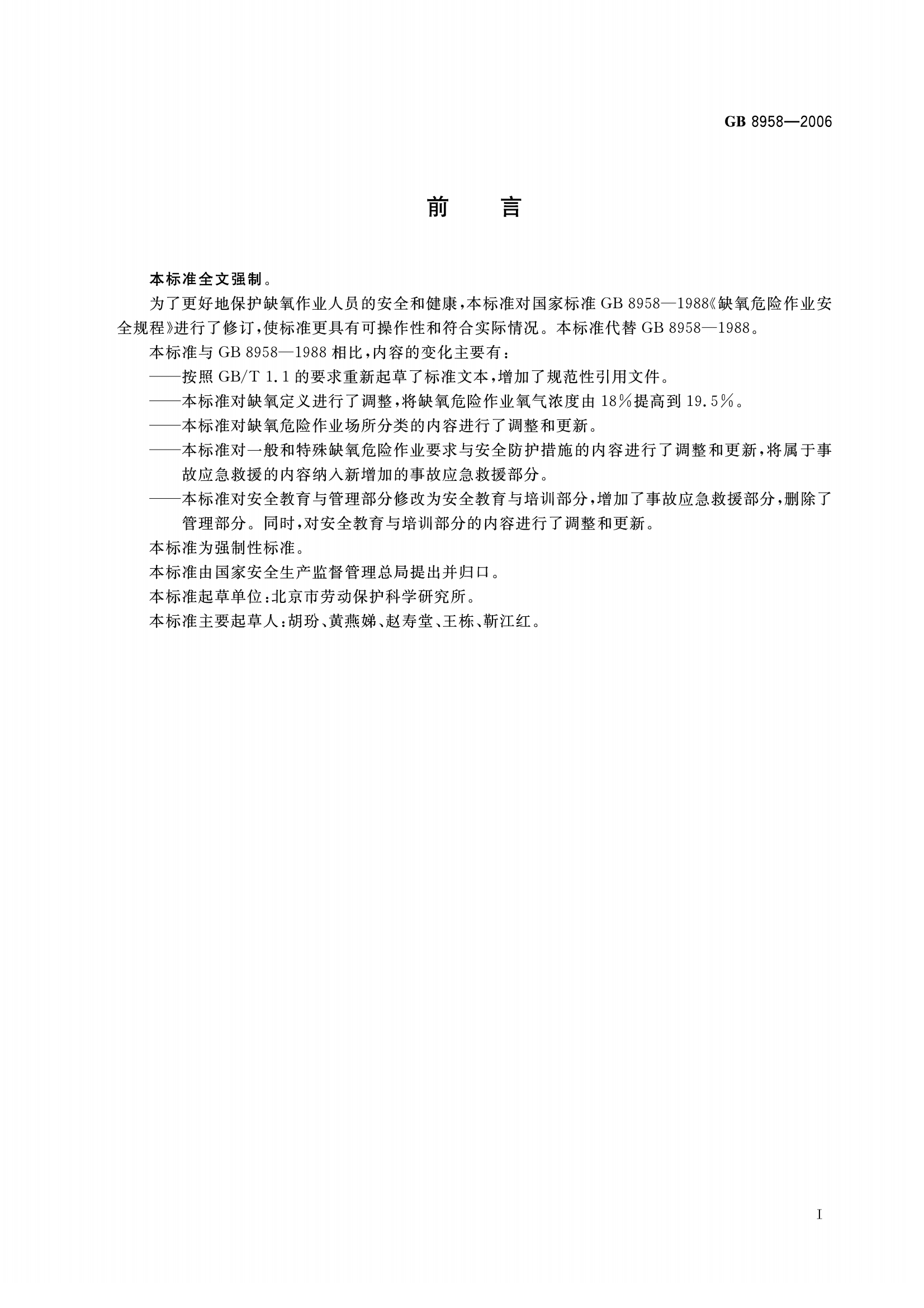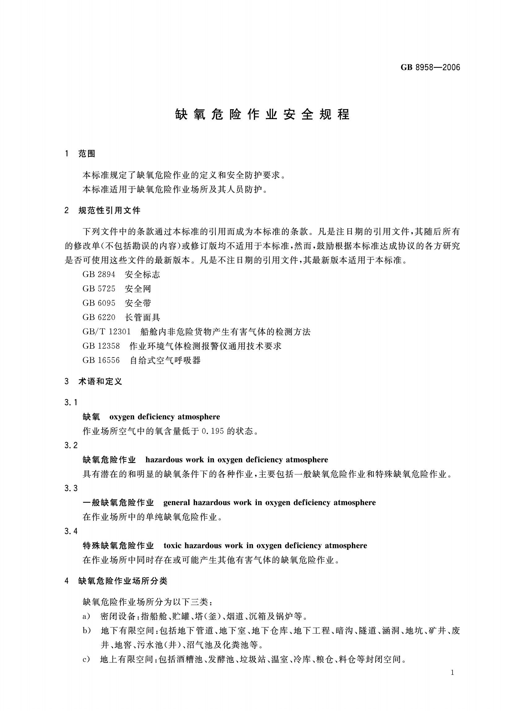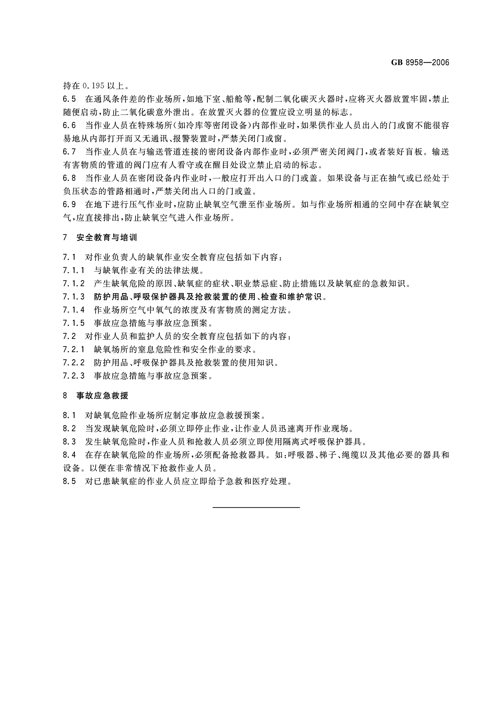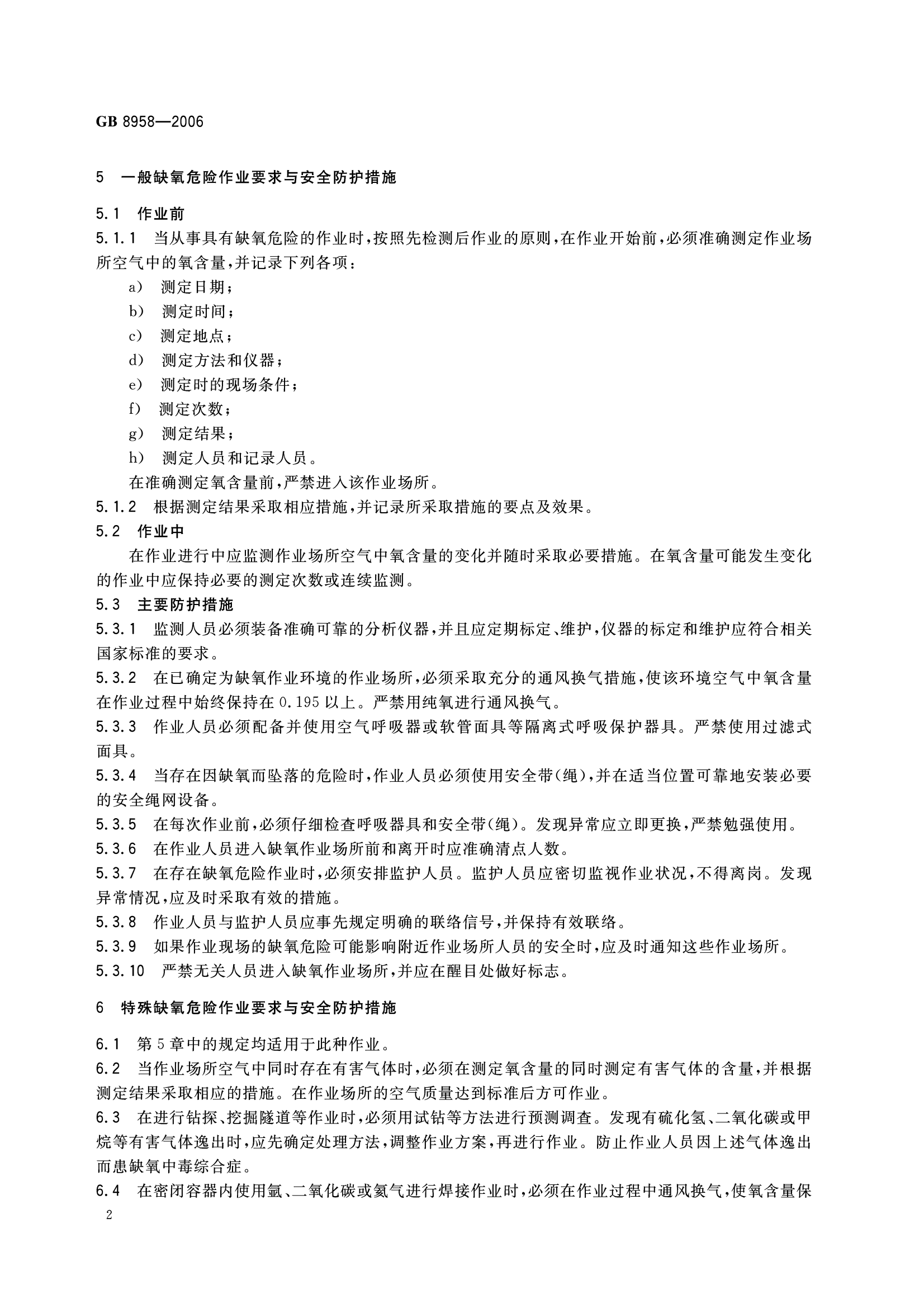 《缺氧危险作业安全规程》(GB8958-2006)