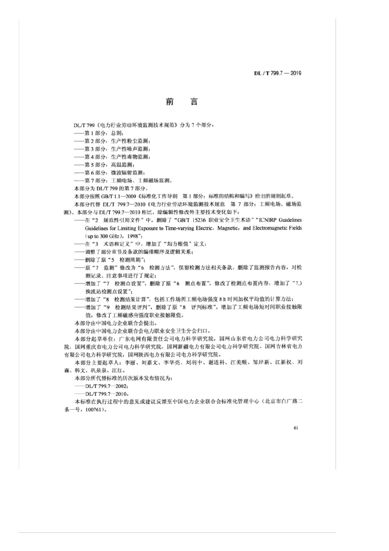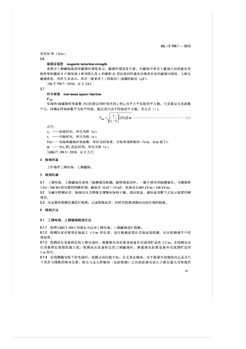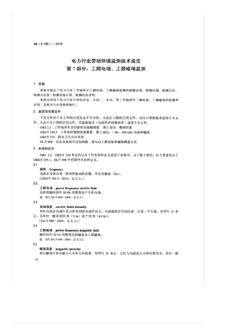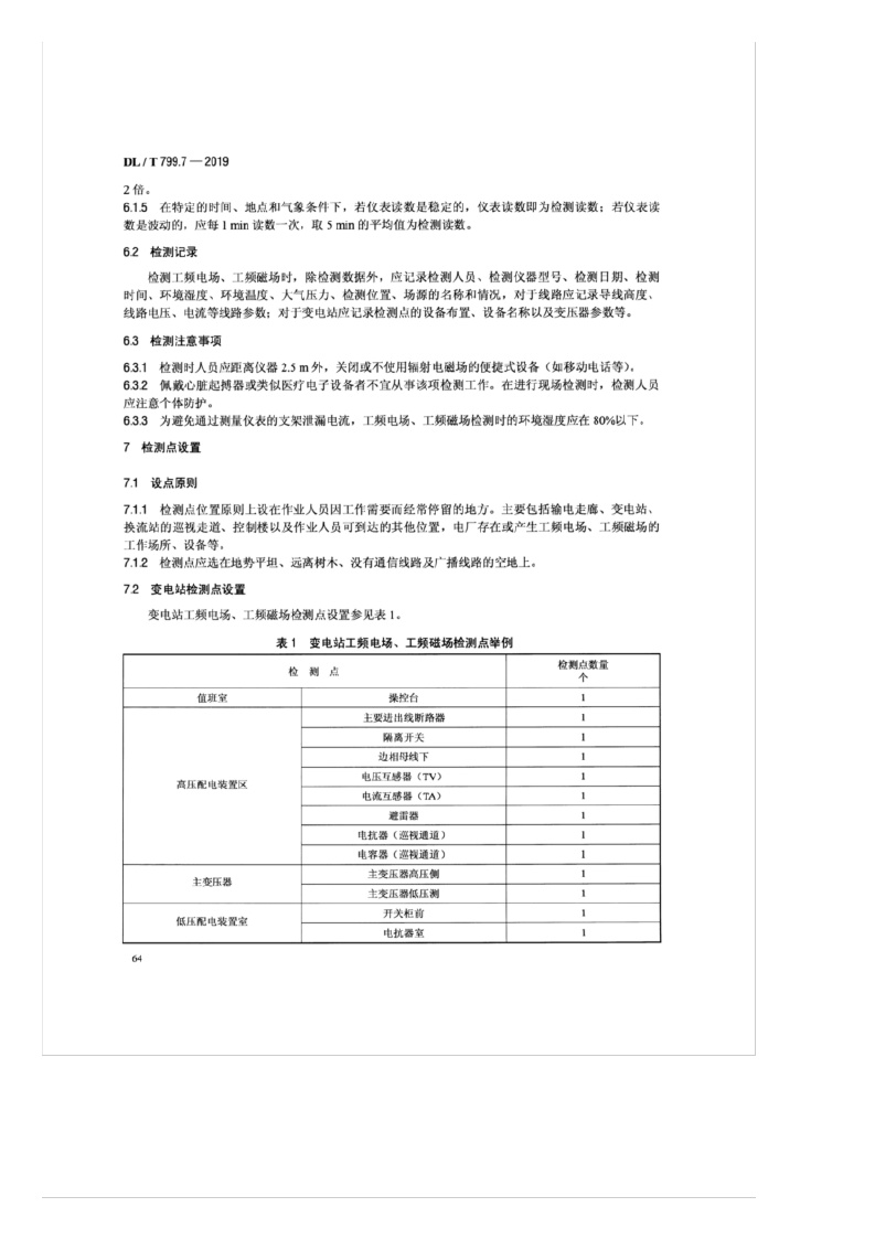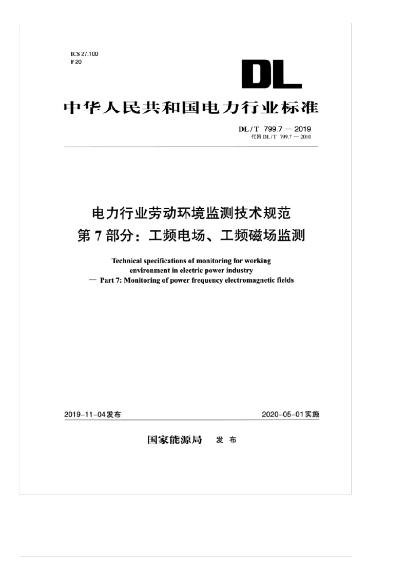 《电力行业劳动环境监测技术规范——第7部分:工频电场、工频磁场监测》(DL/T799.7-2019)