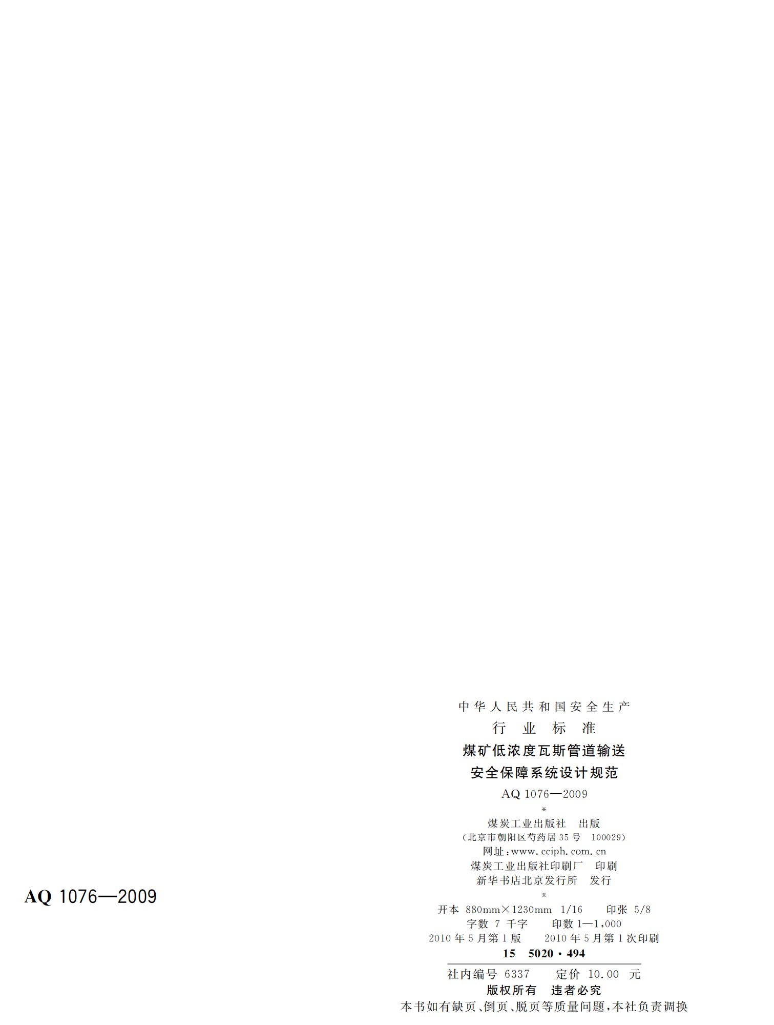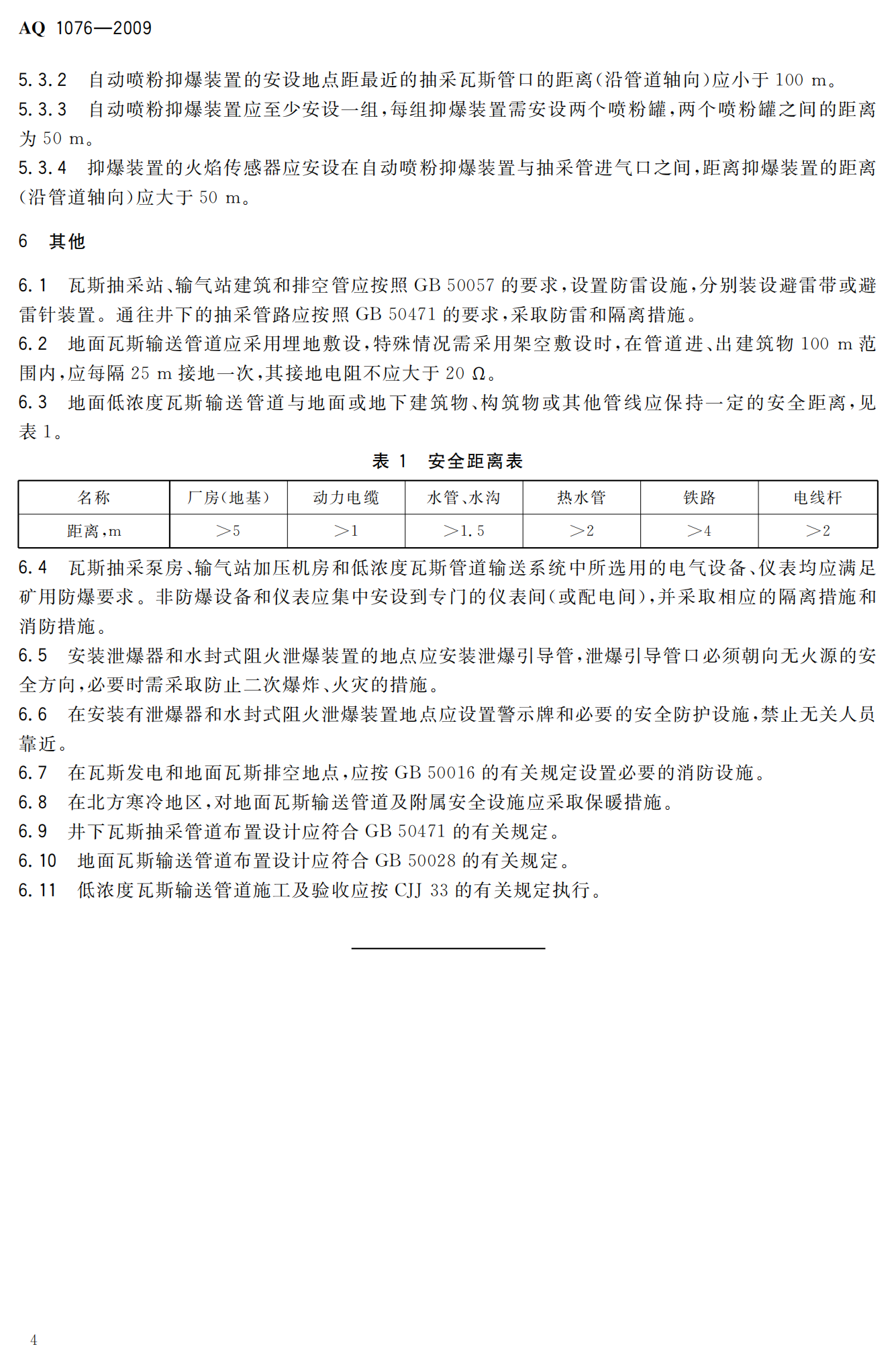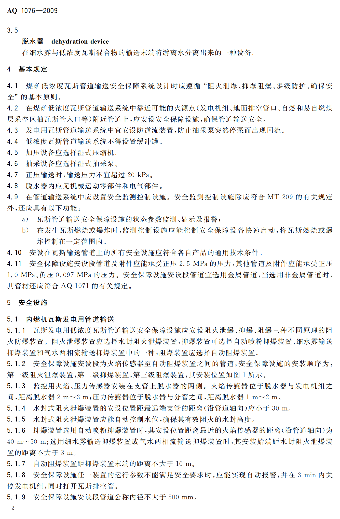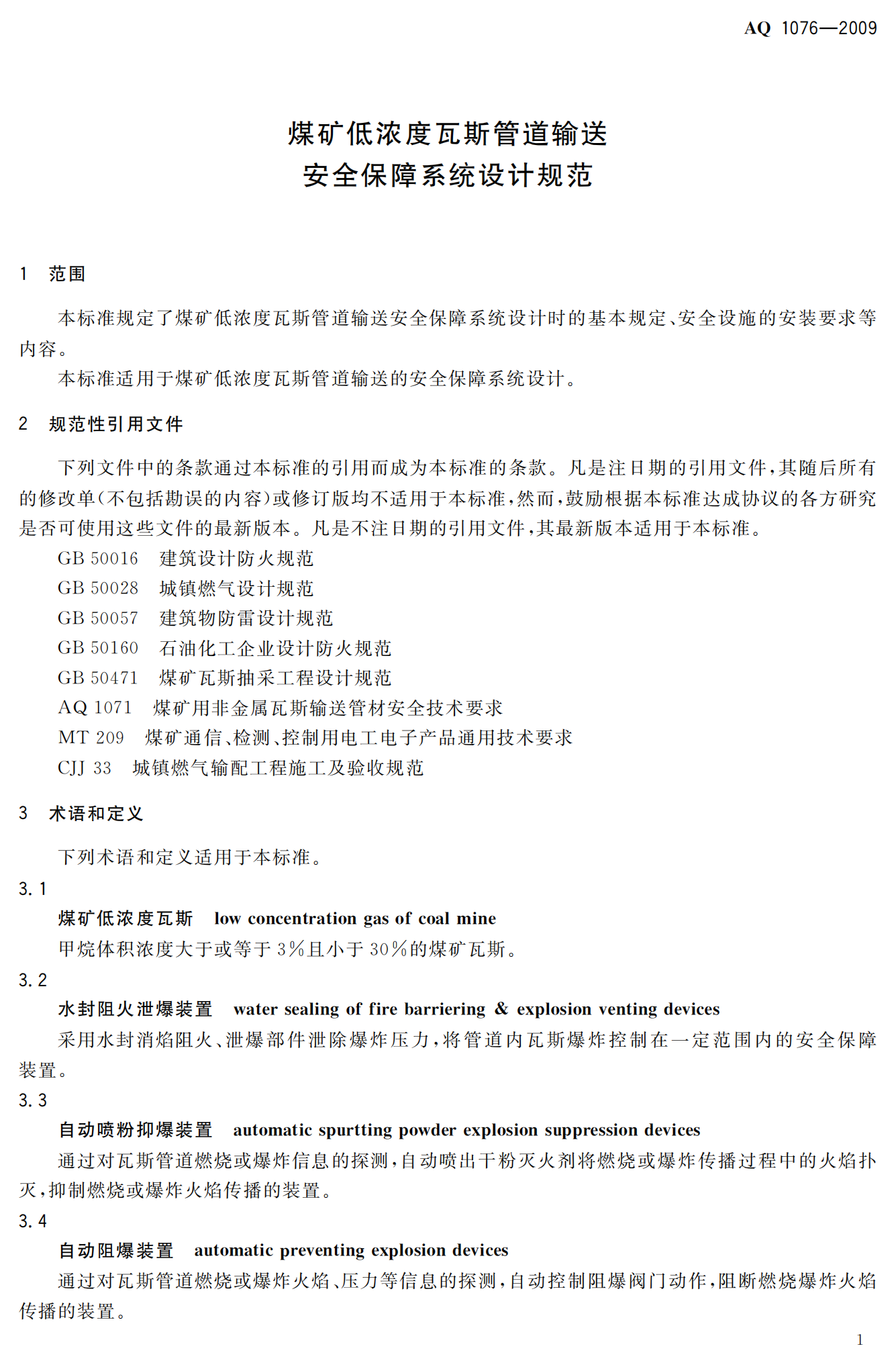 《煤矿低浓度瓦斯管道输送安全保障系统设计规范》(AQ1076-2009)