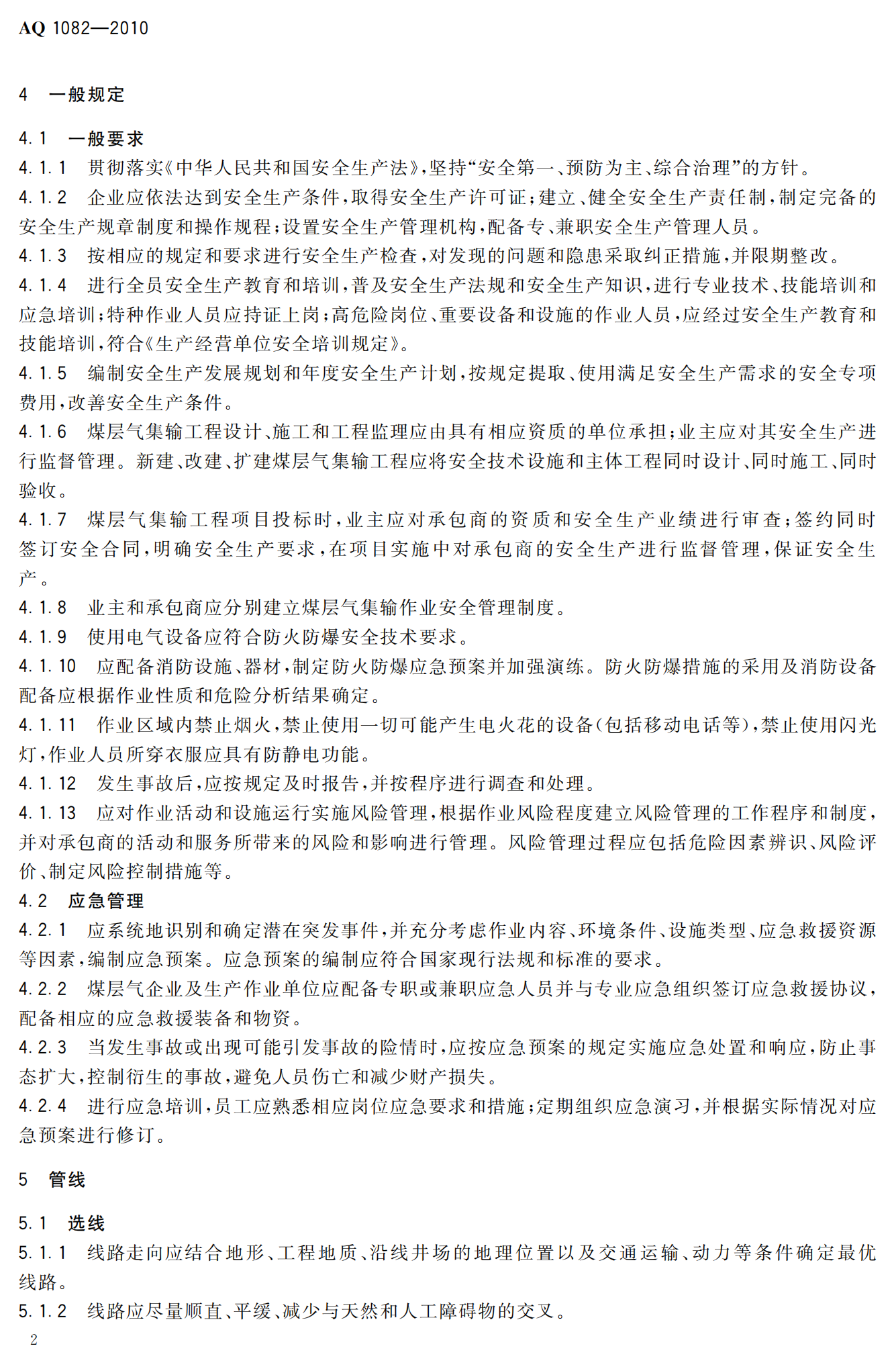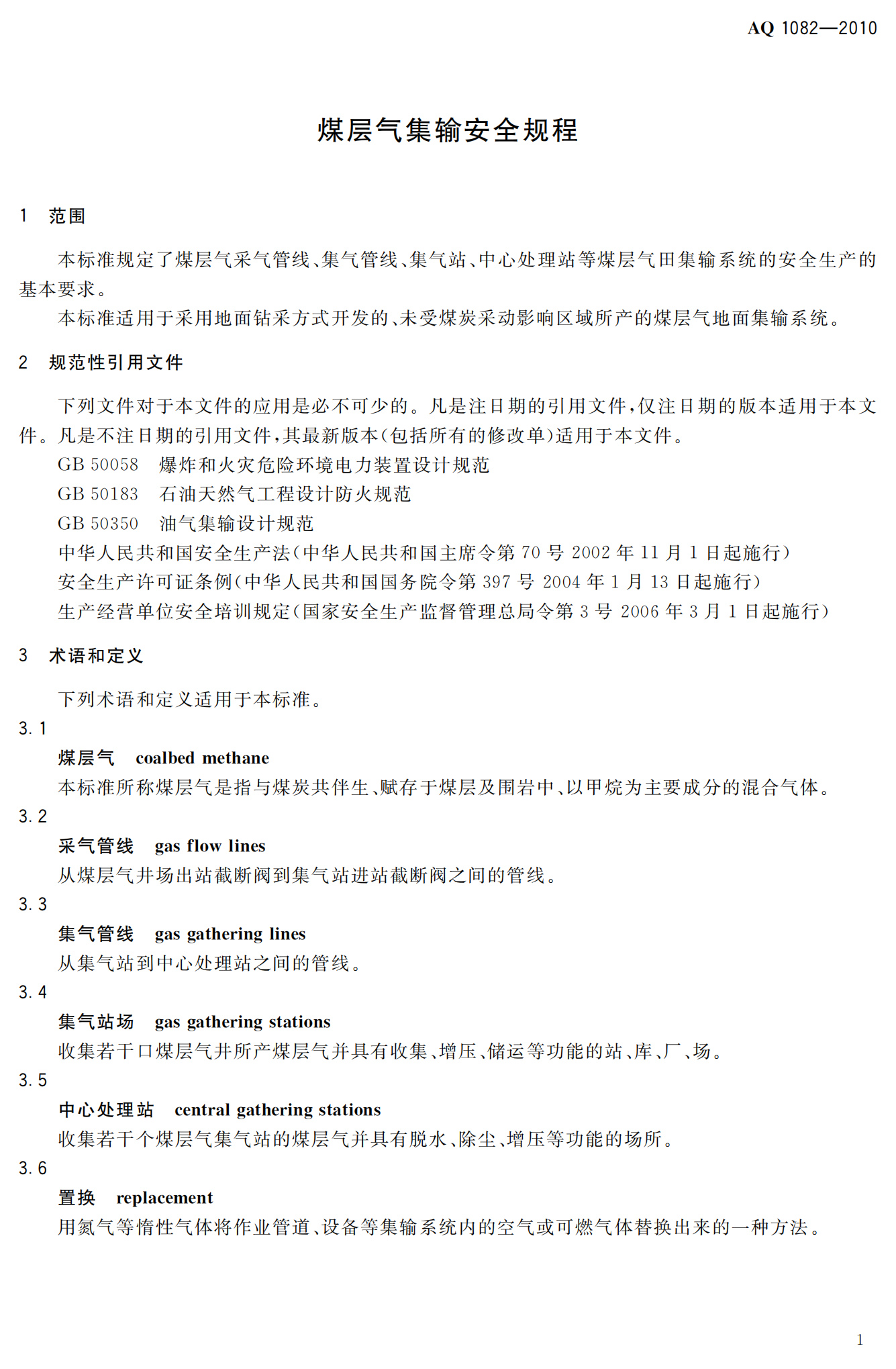 《煤层气集输安全规程》(AQ1082-2010)