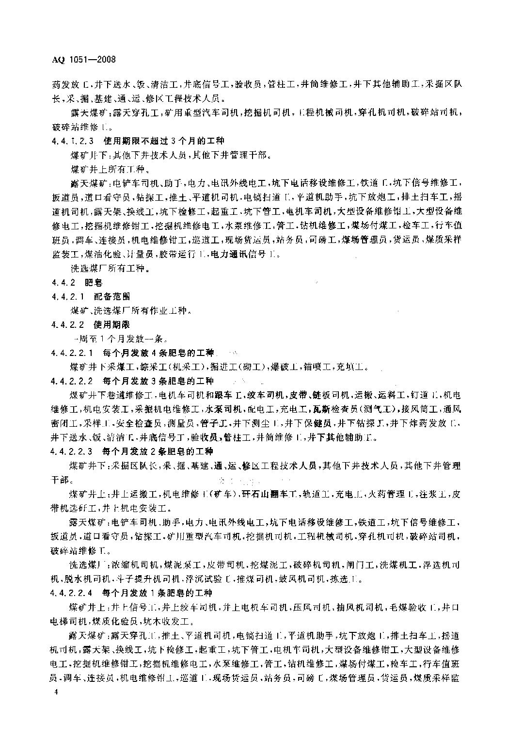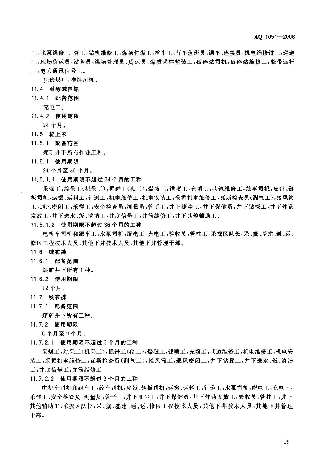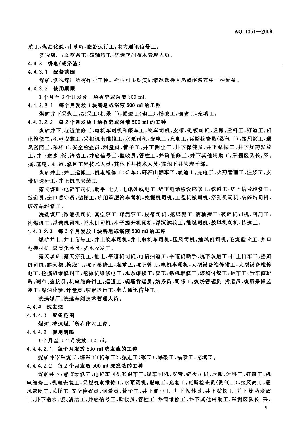 《煤矿职业安全卫生个体防护用品配备标准》(AQ1051-2008)