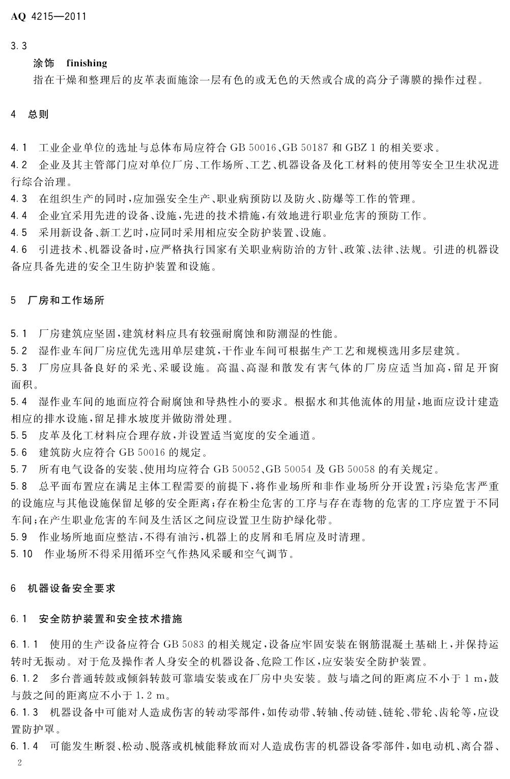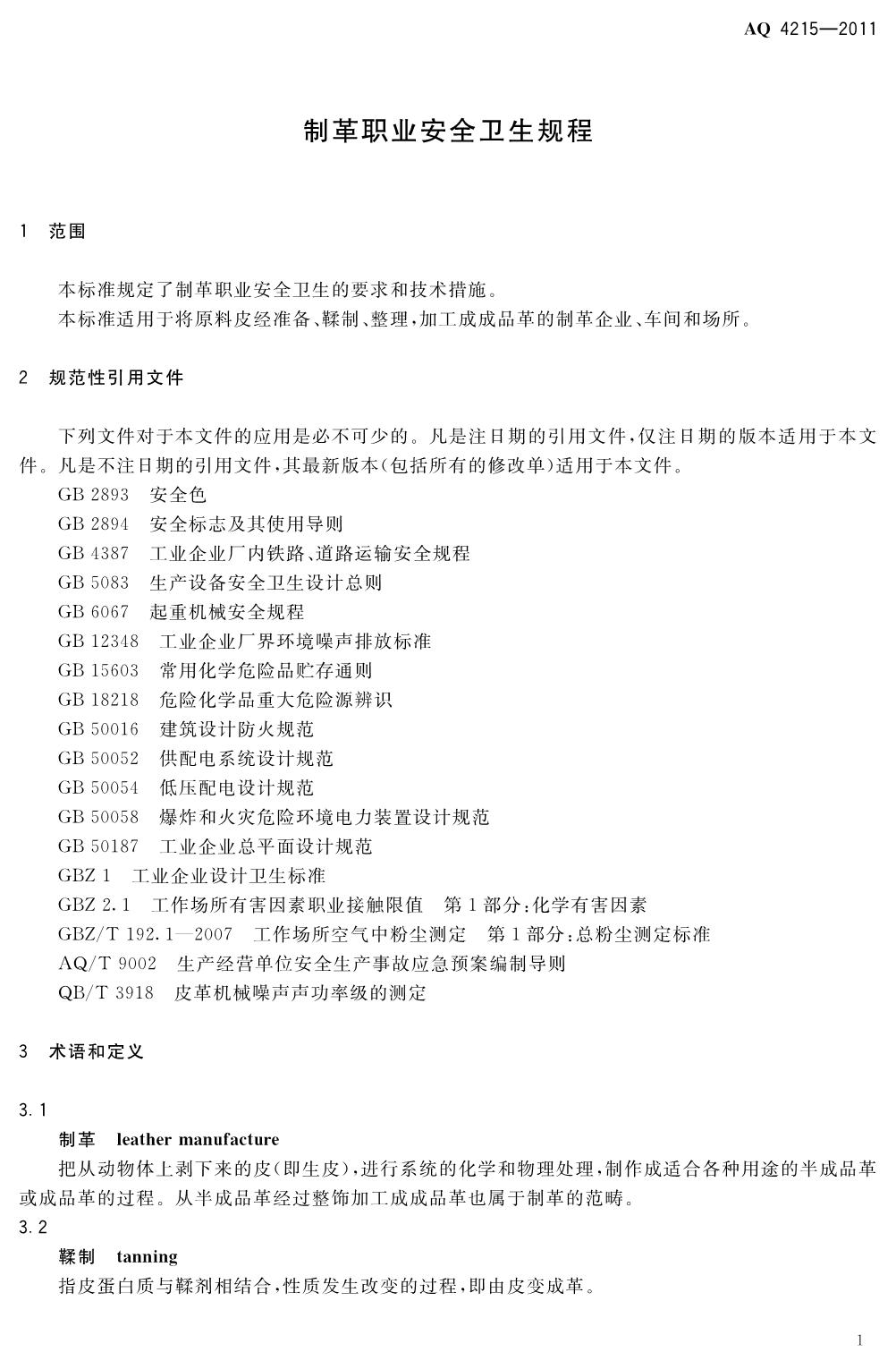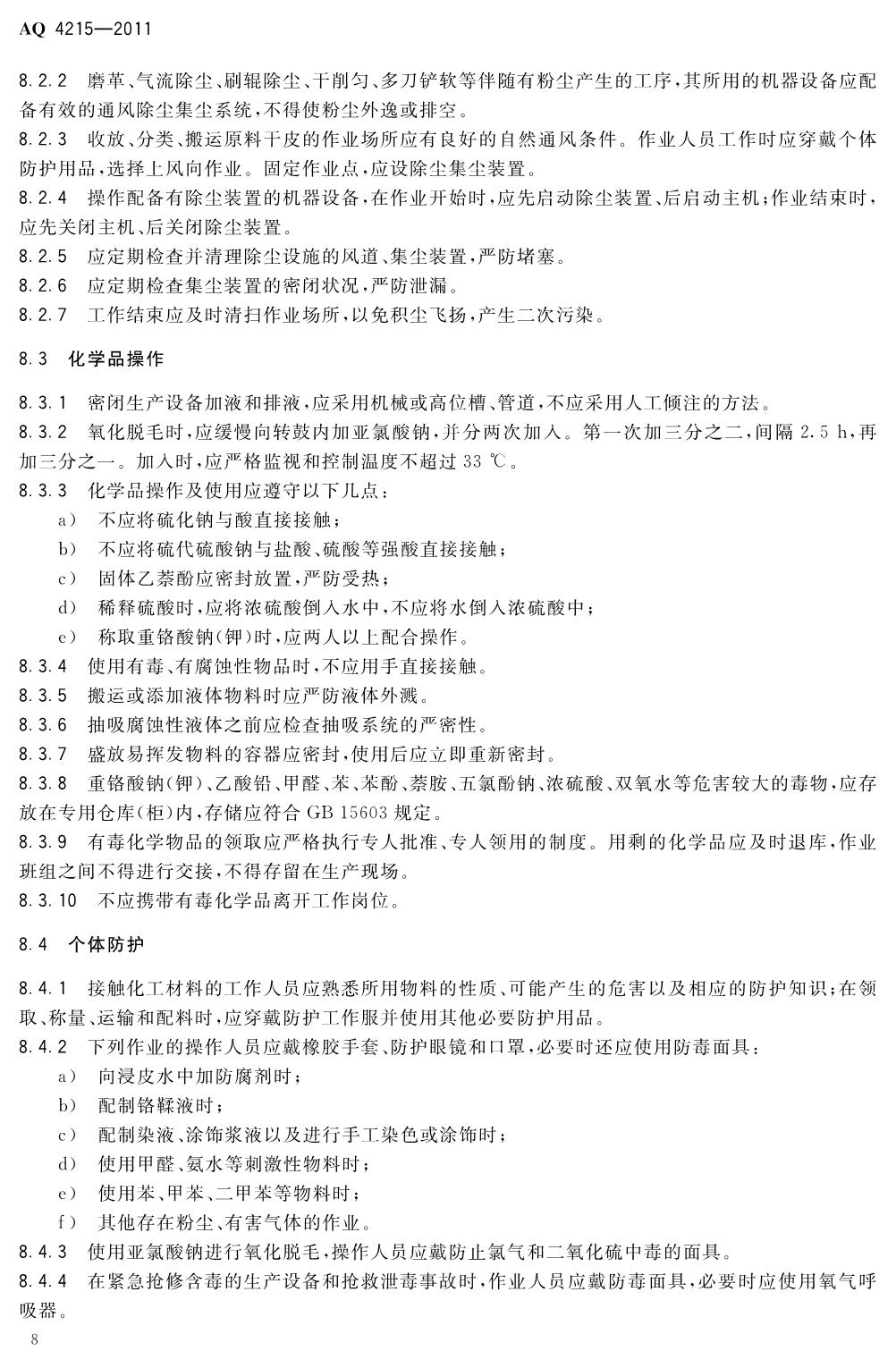 《制革职业安全卫生规程》(AQ4215-2011)