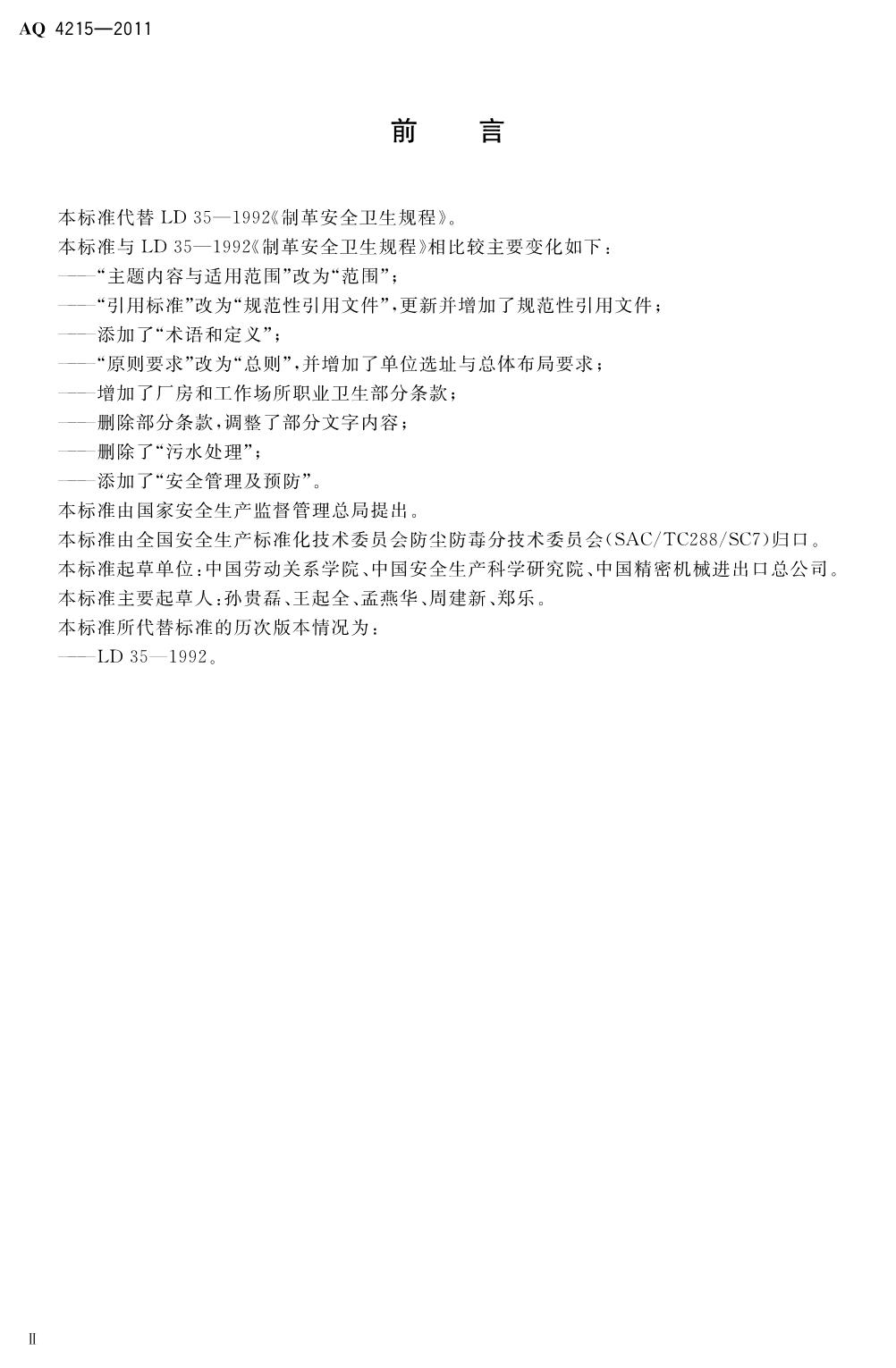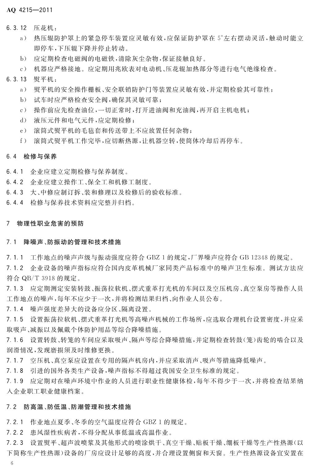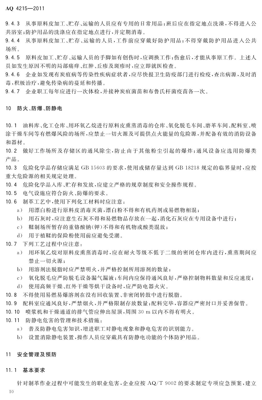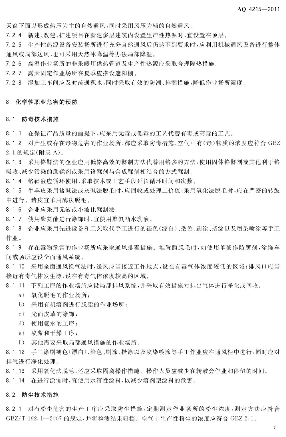 《制革职业安全卫生规程》(AQ4215-2011)