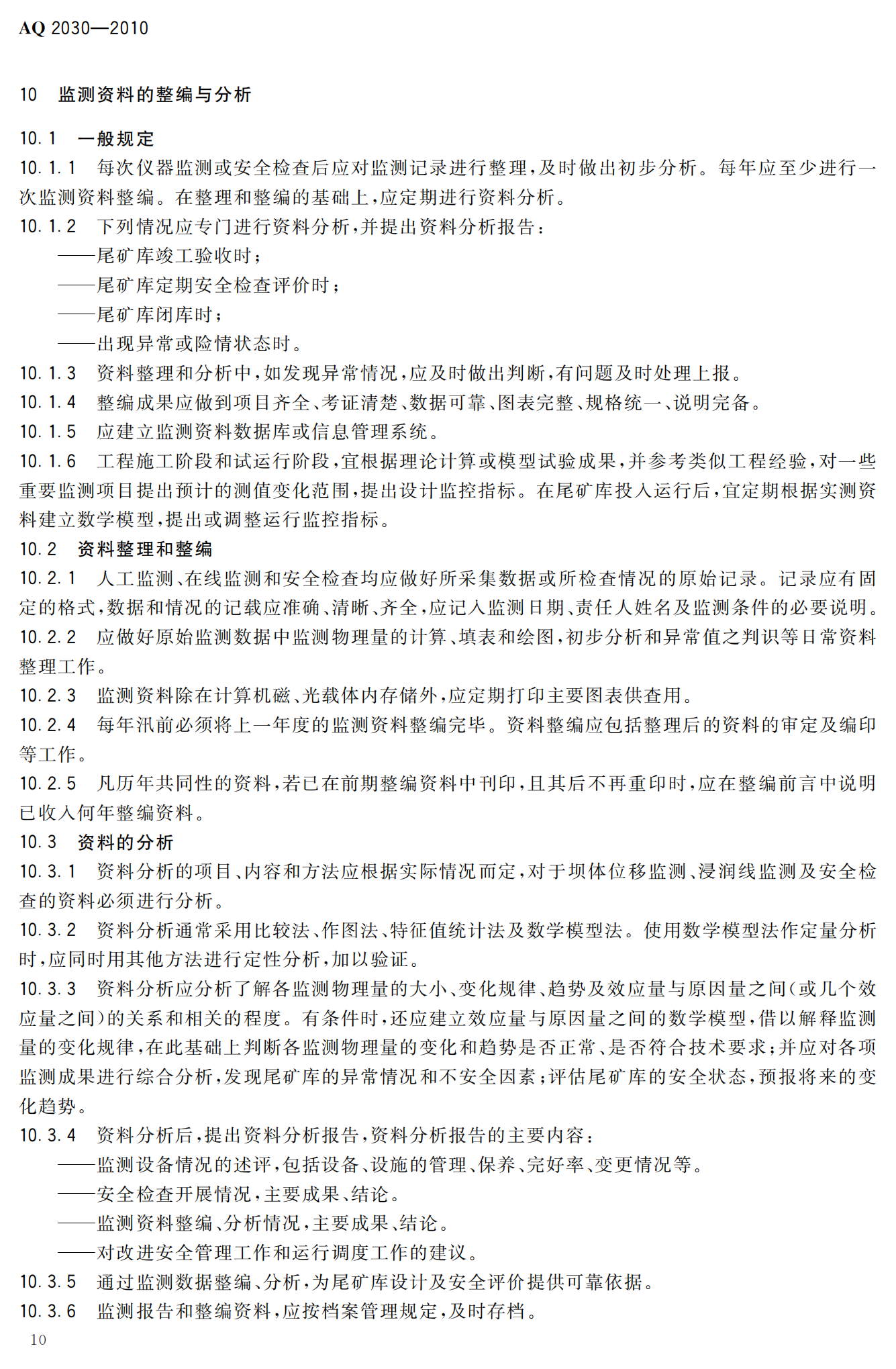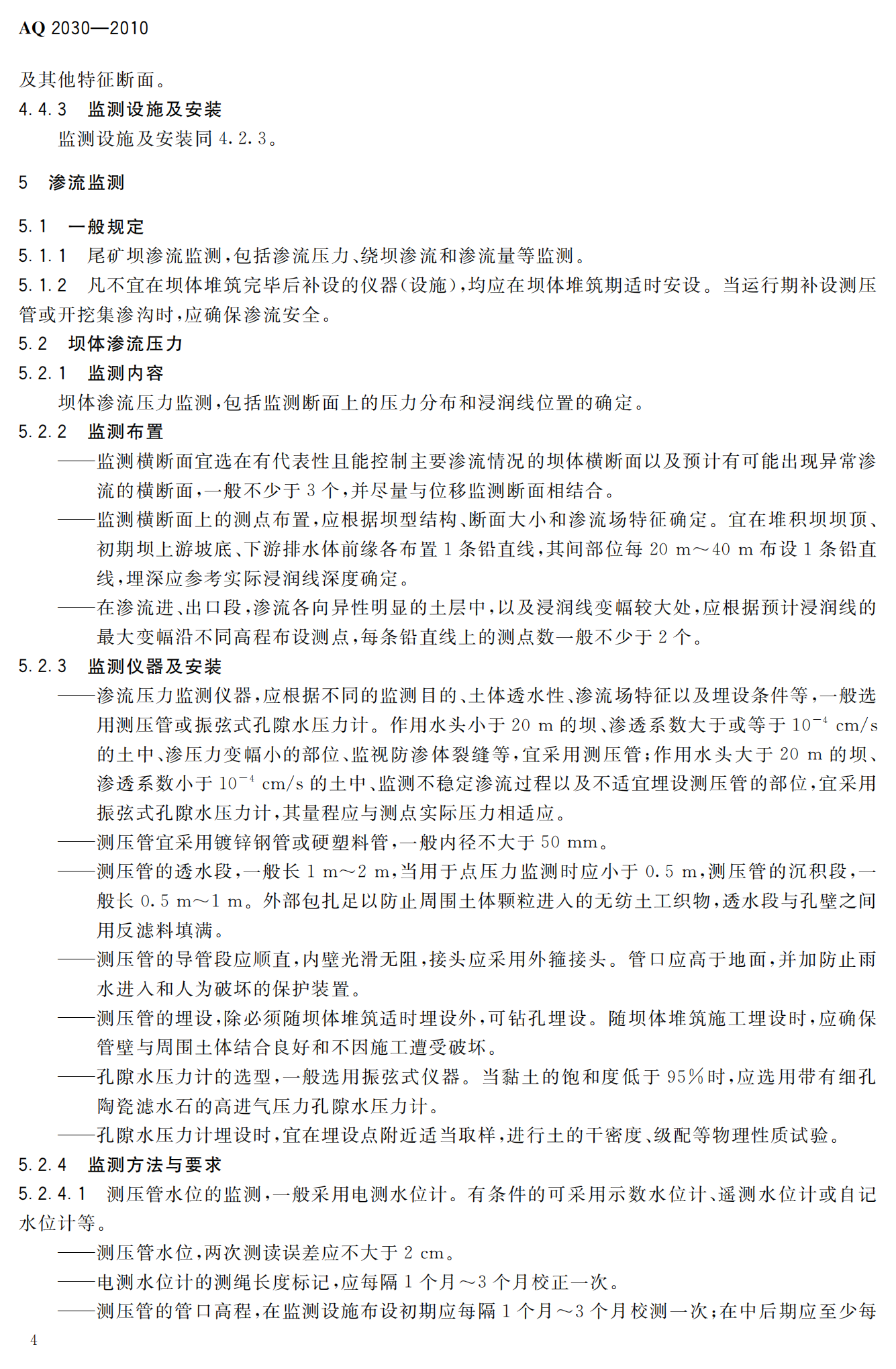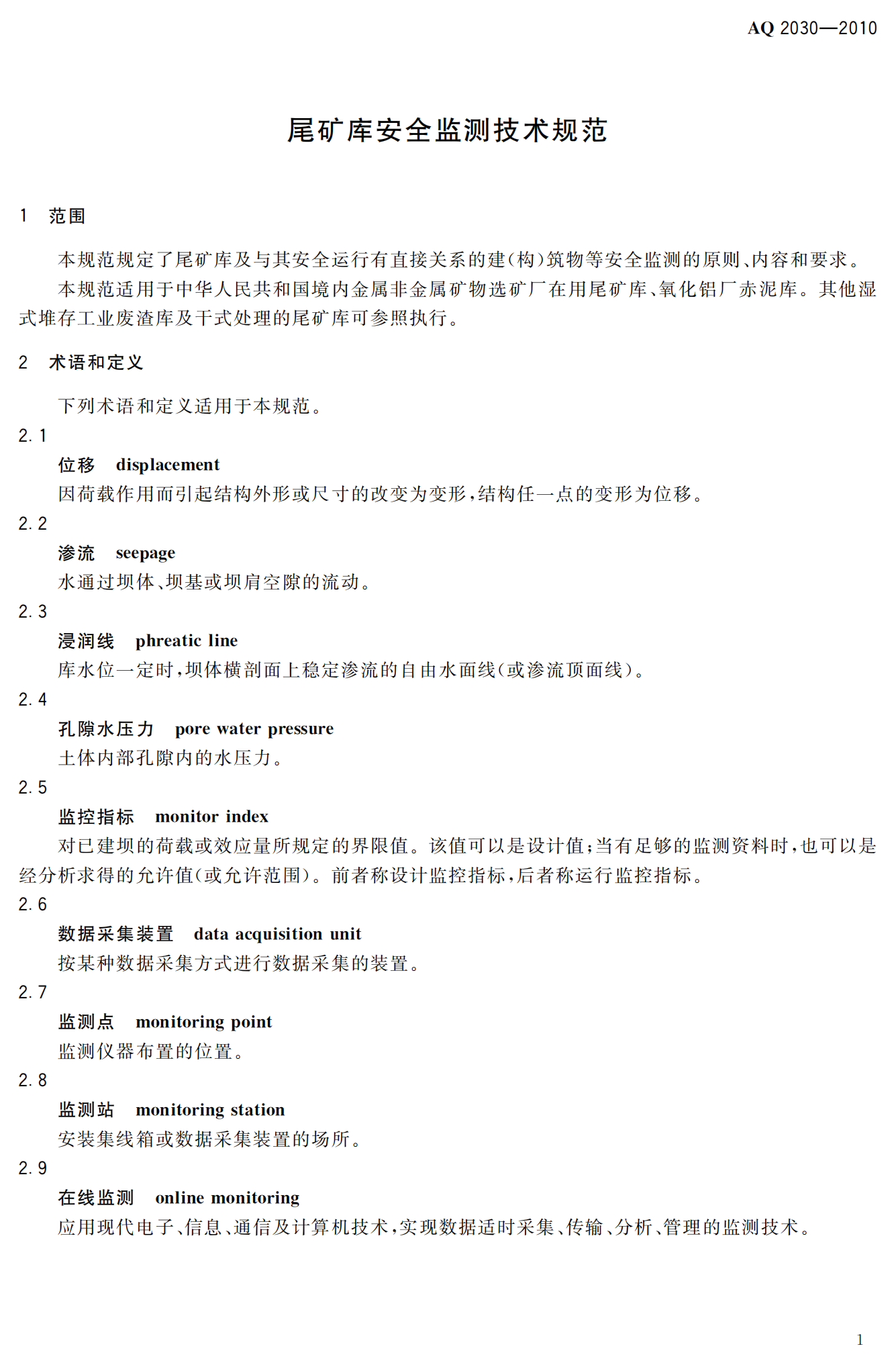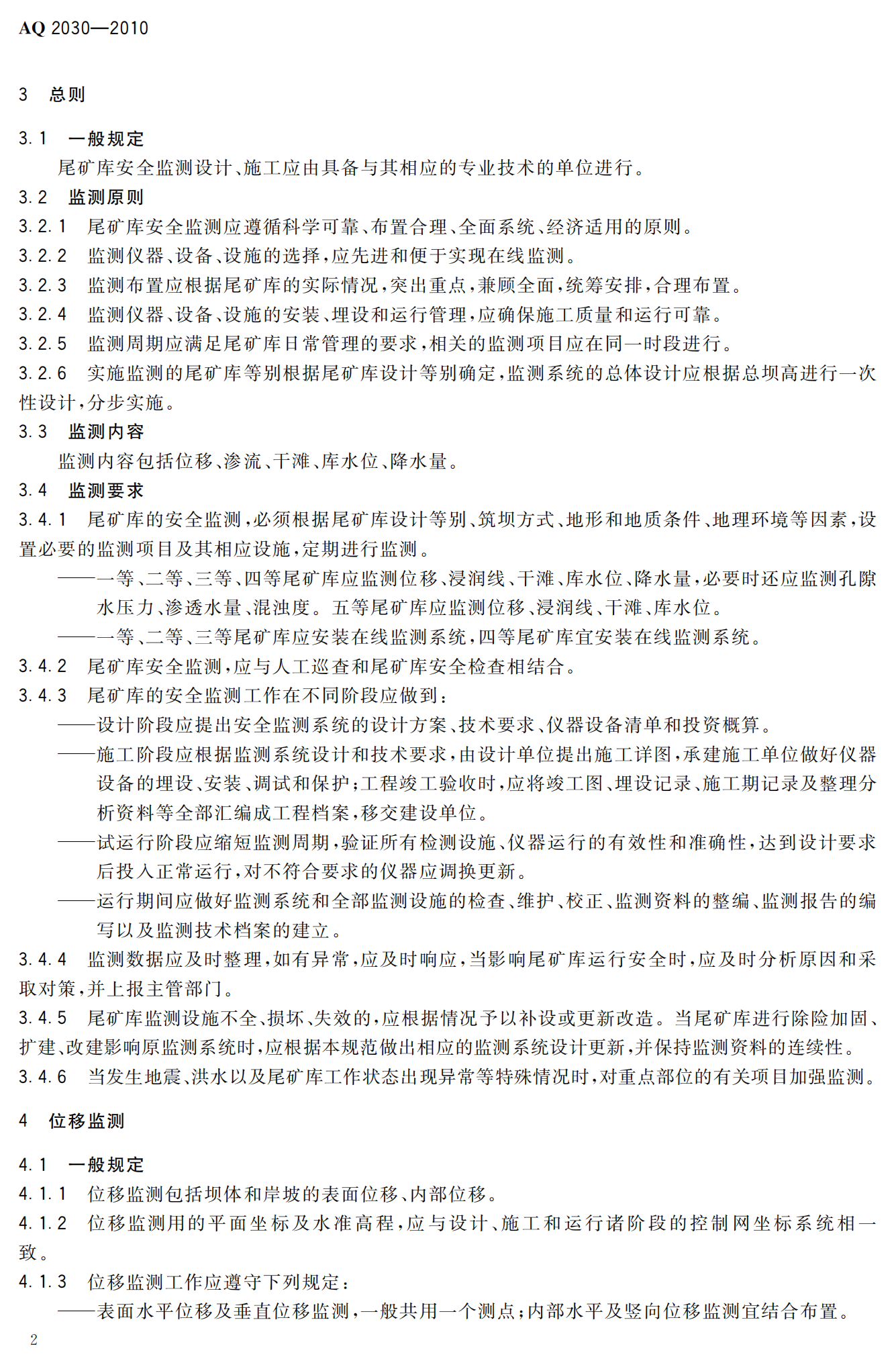 《尾矿库安全监测技术规范》(AQ2030-2010)