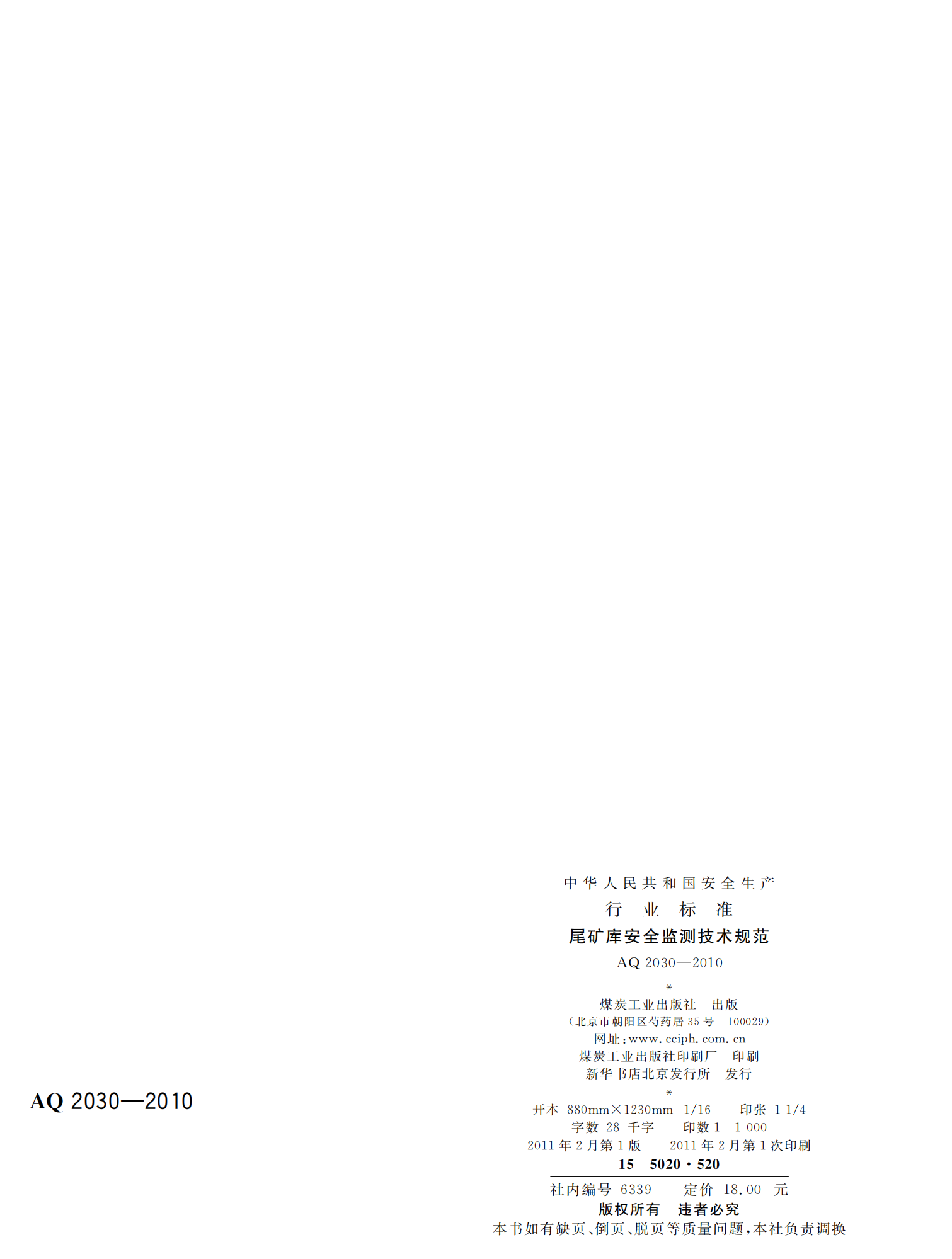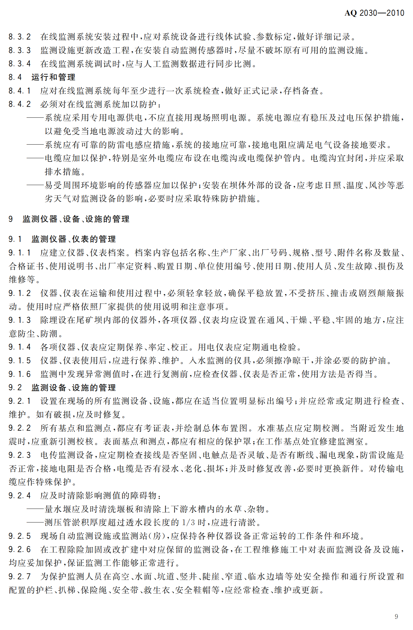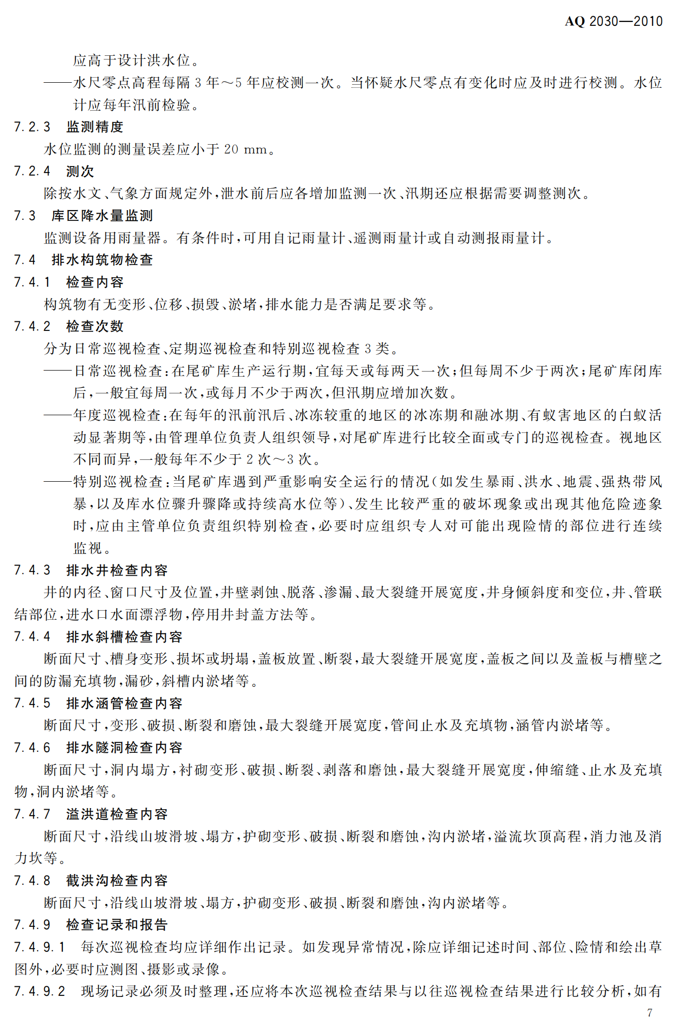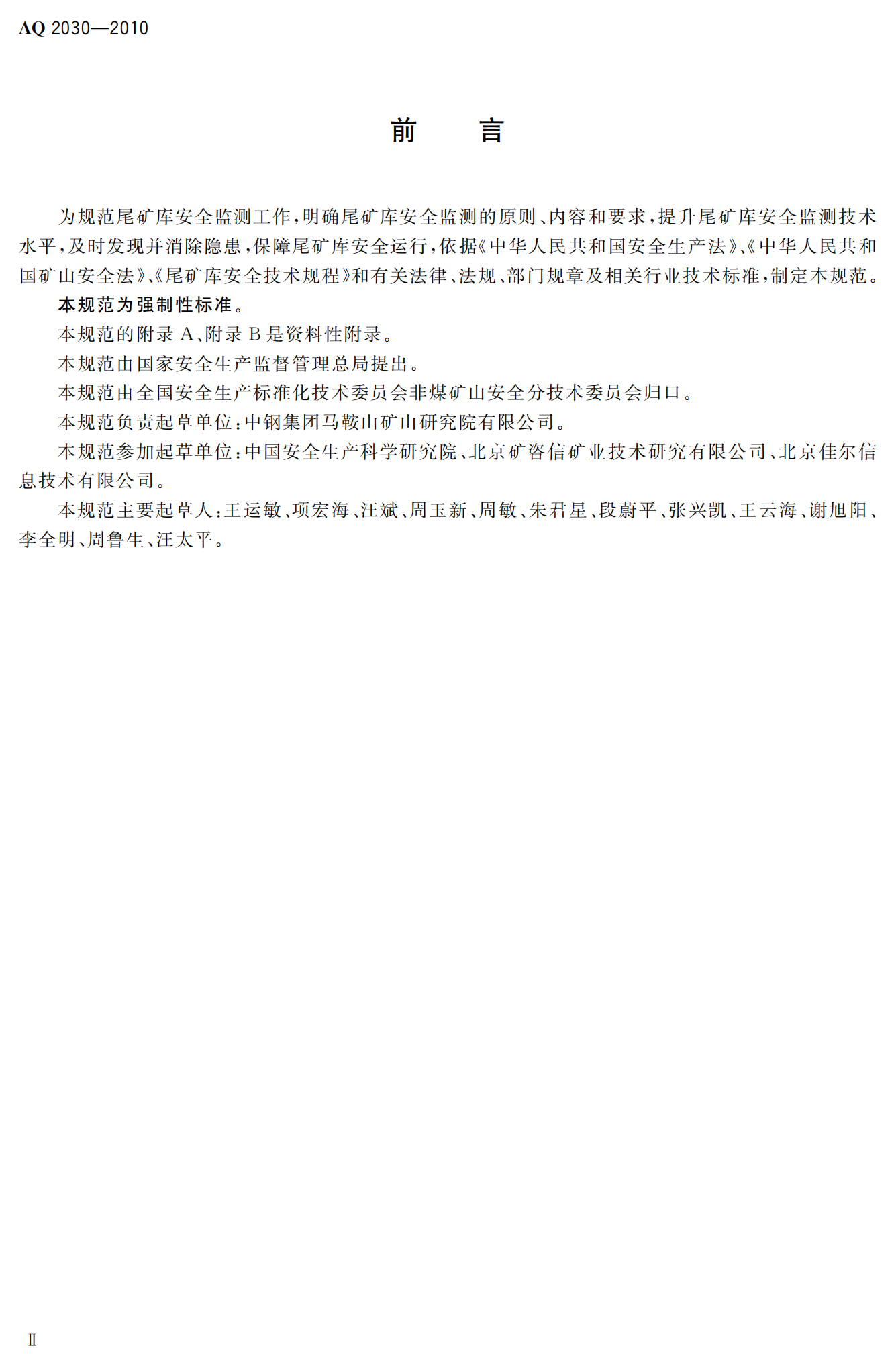 《尾矿库安全监测技术规范》(AQ2030-2010)