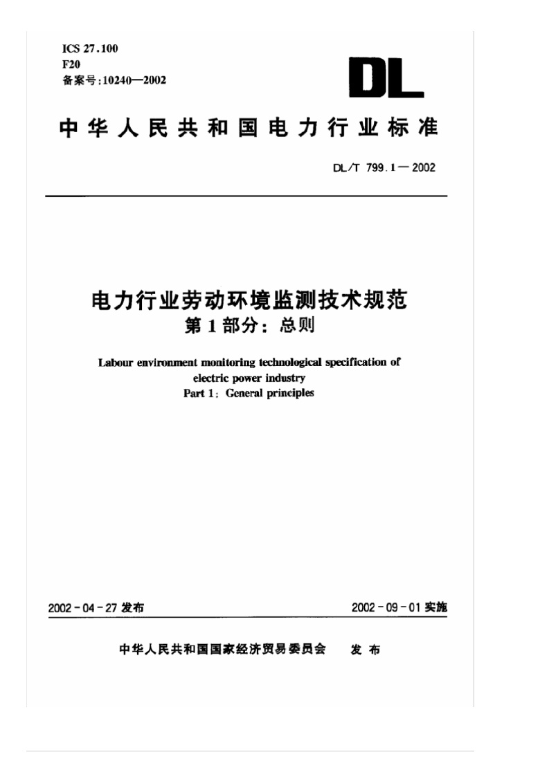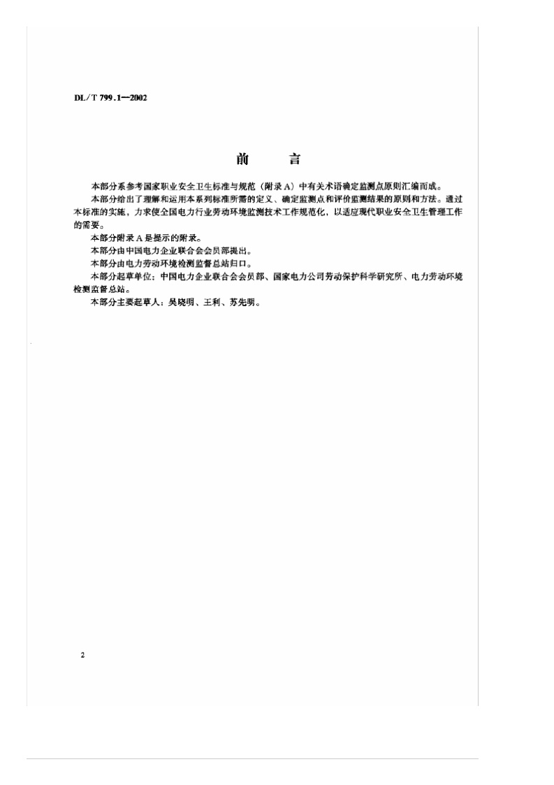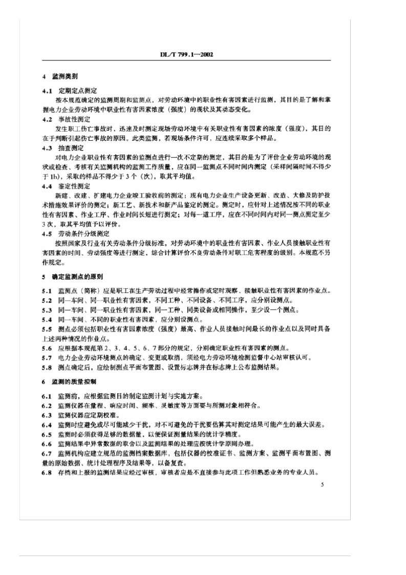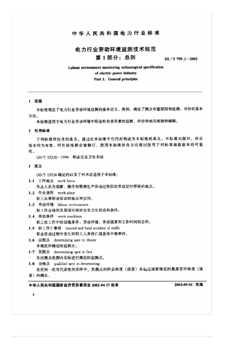 《电力行业劳动环境监测技术规范 第1部分:总则》(DL/T799.1-2002)