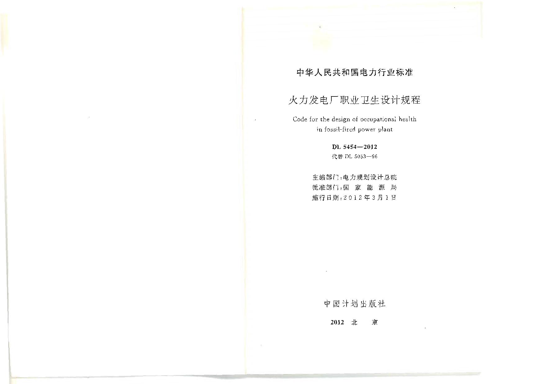 《火力发电厂职业卫生设计规程》(DL5454-2012)