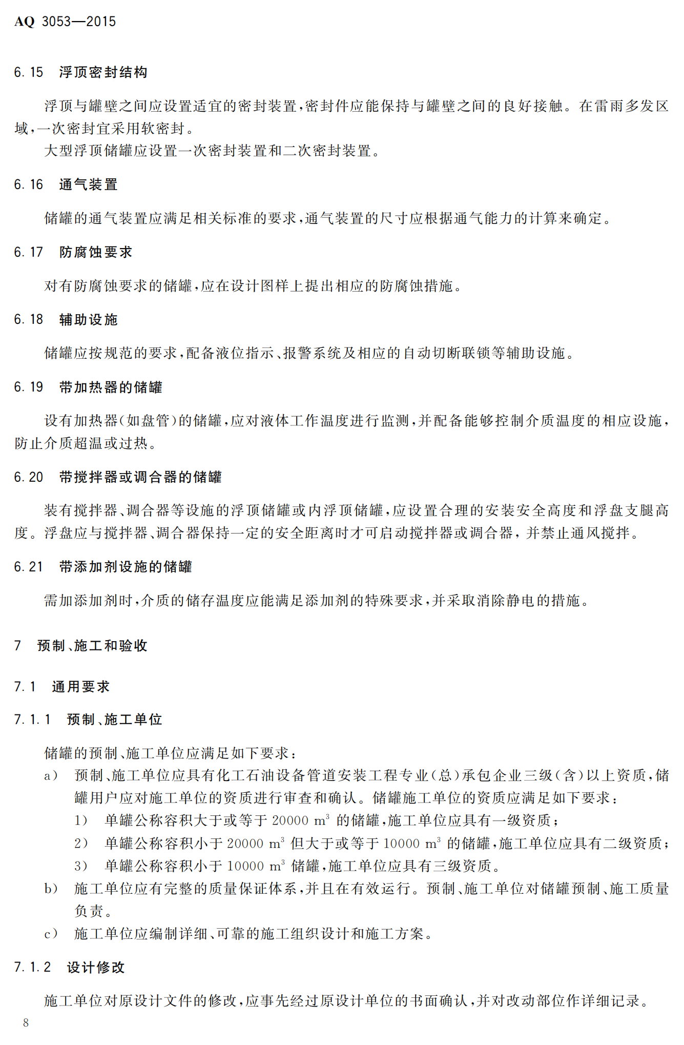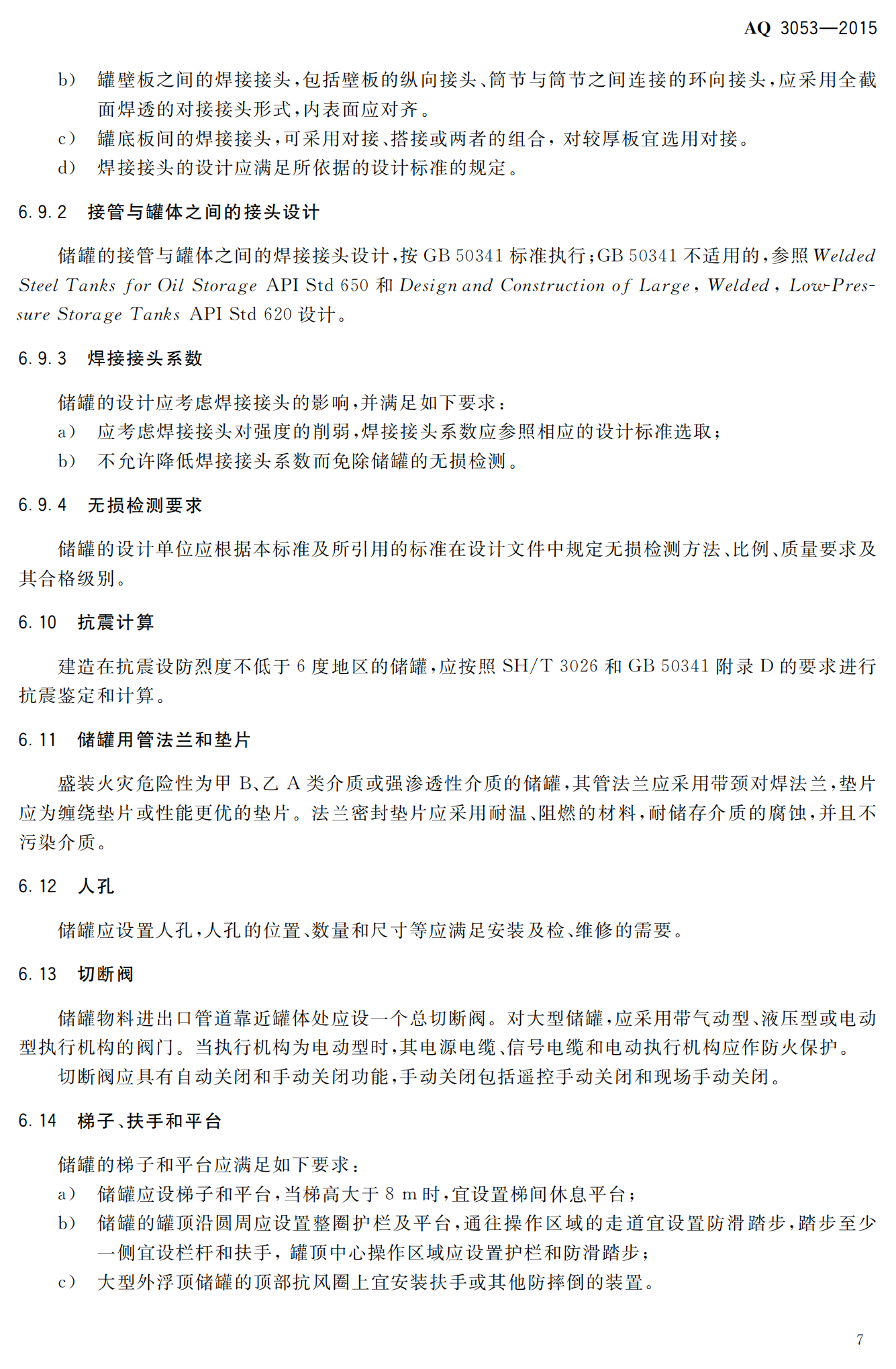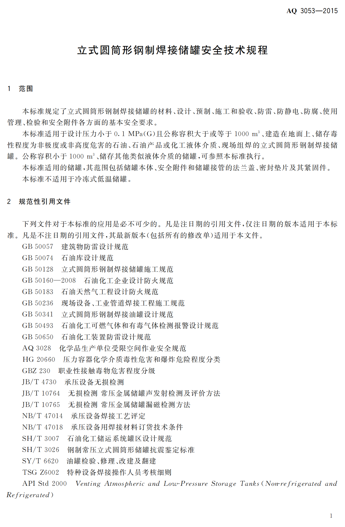 《立式圆筒形钢制焊接储罐安全技术规程》(AQ3053-2015)