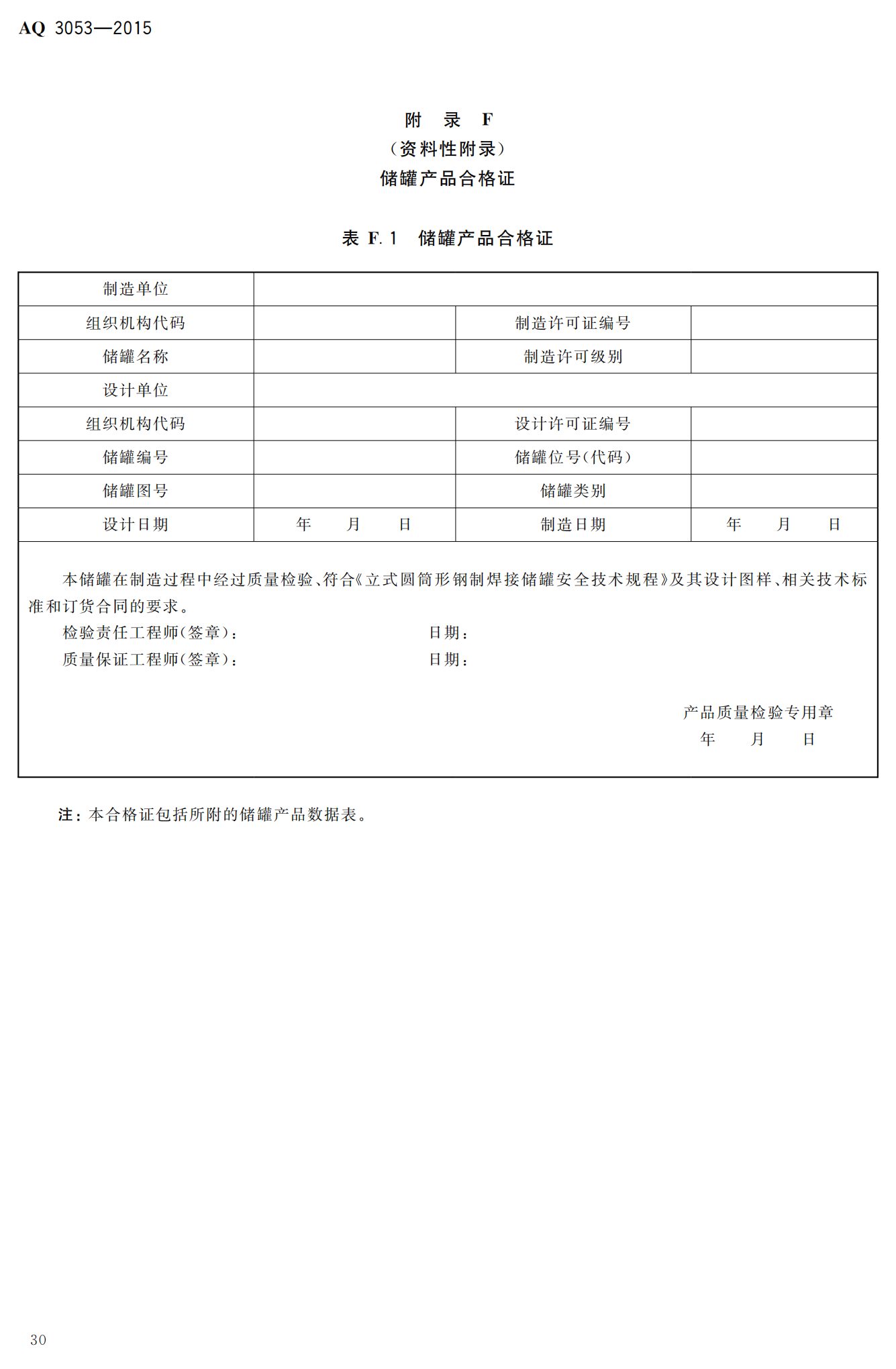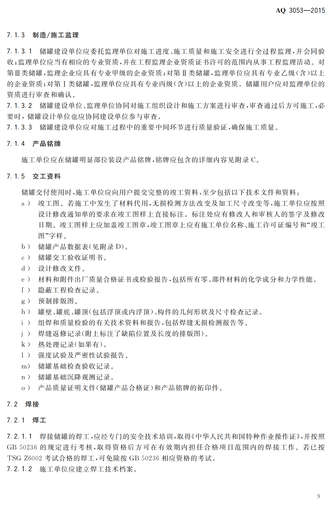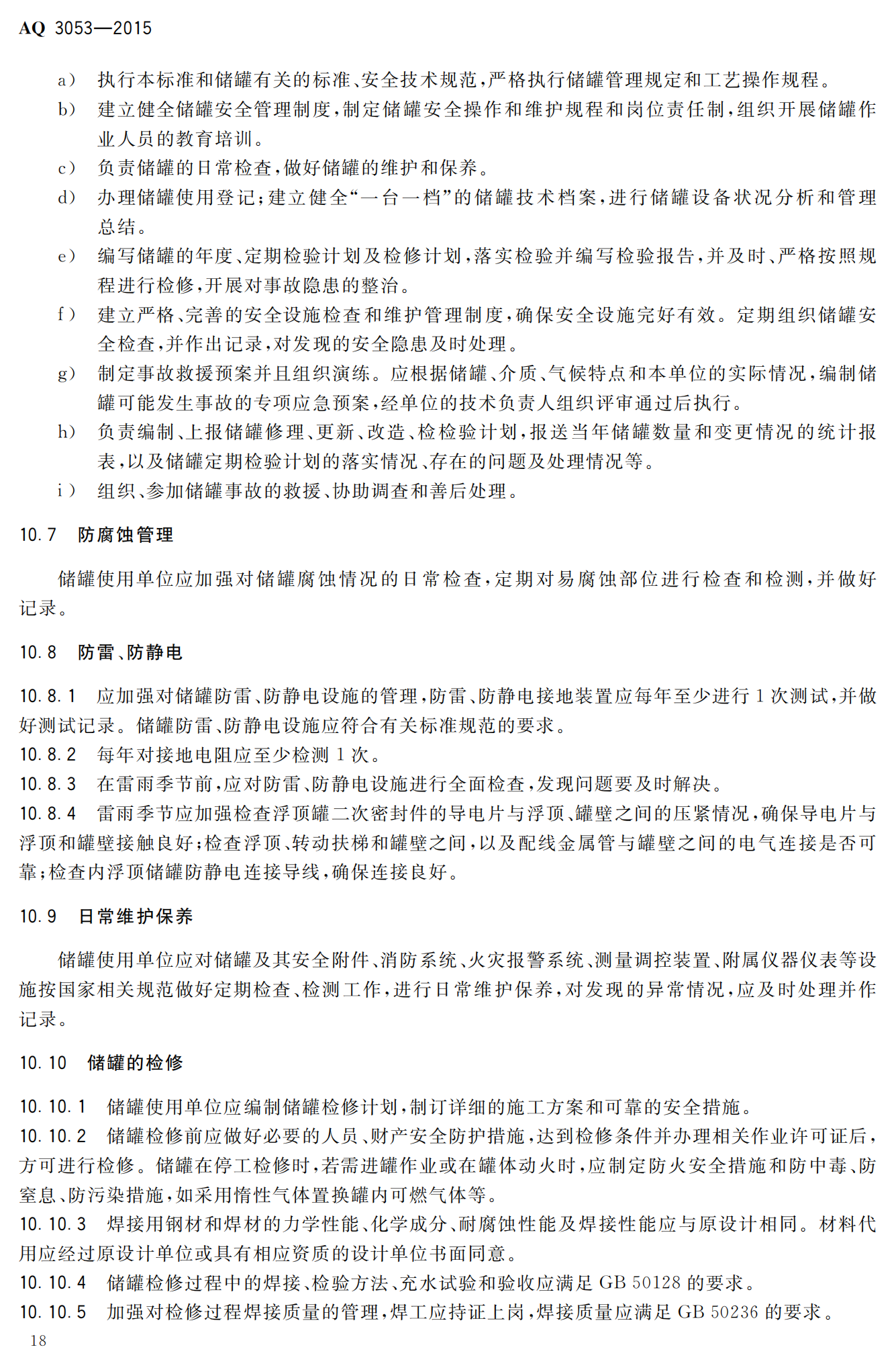《立式圆筒形钢制焊接储罐安全技术规程》(AQ3053-2015)