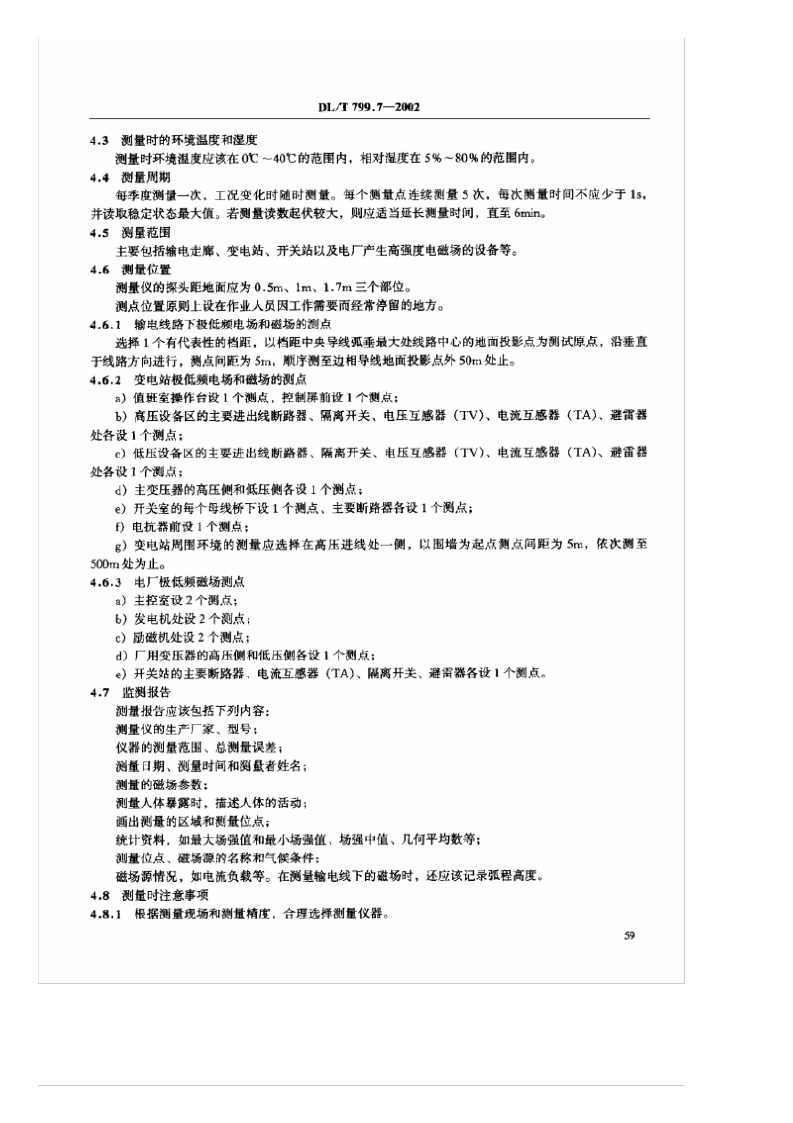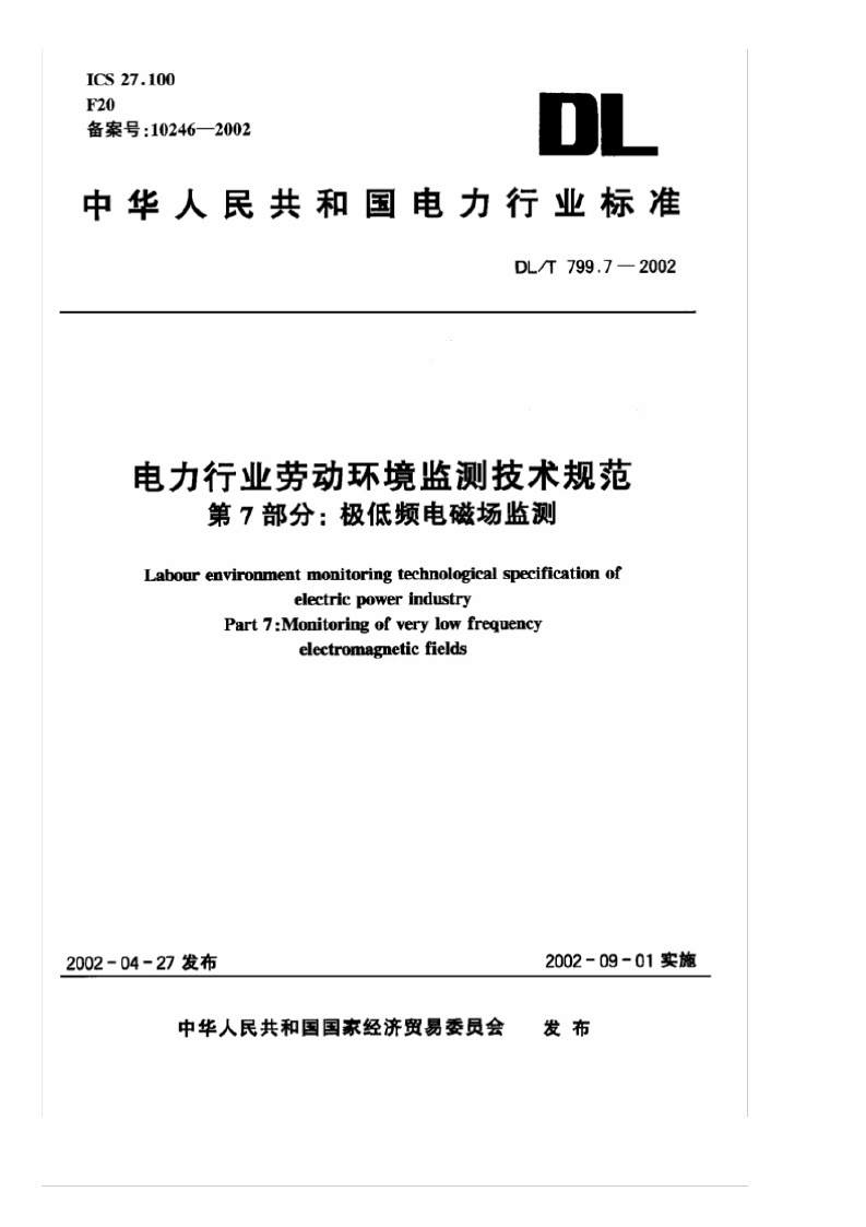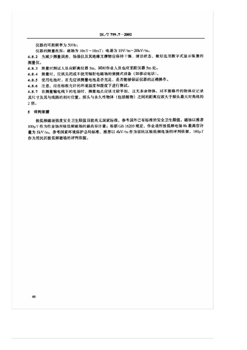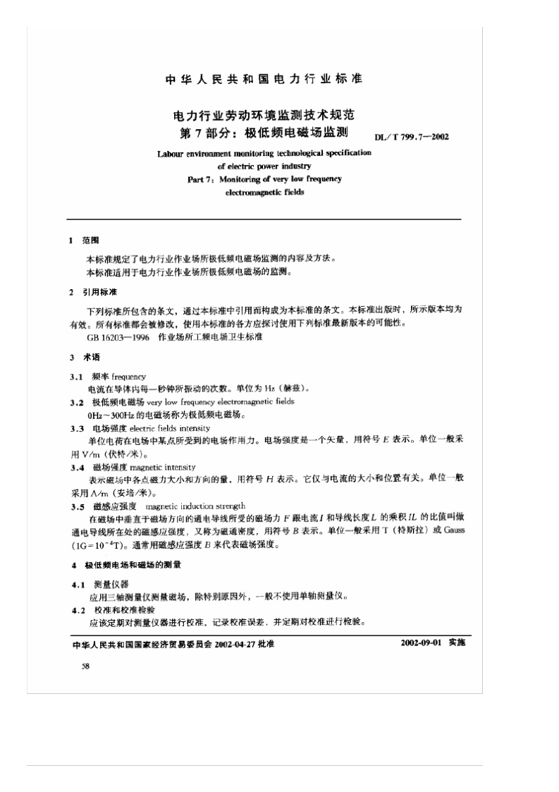 《电力行业劳动环境监测技术规范 第7部分:极低频电磁场监测》(DL/T799.7-2002)