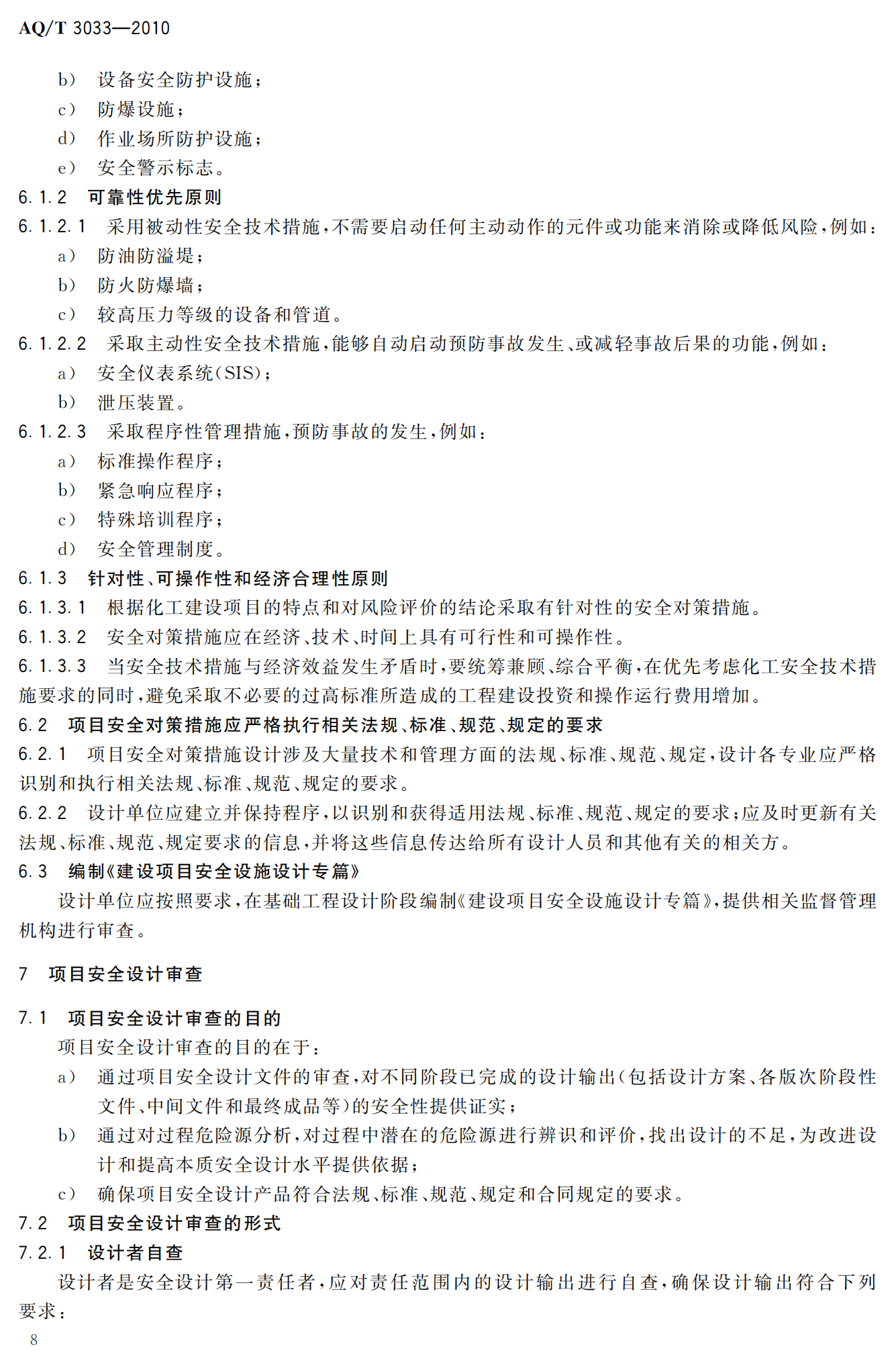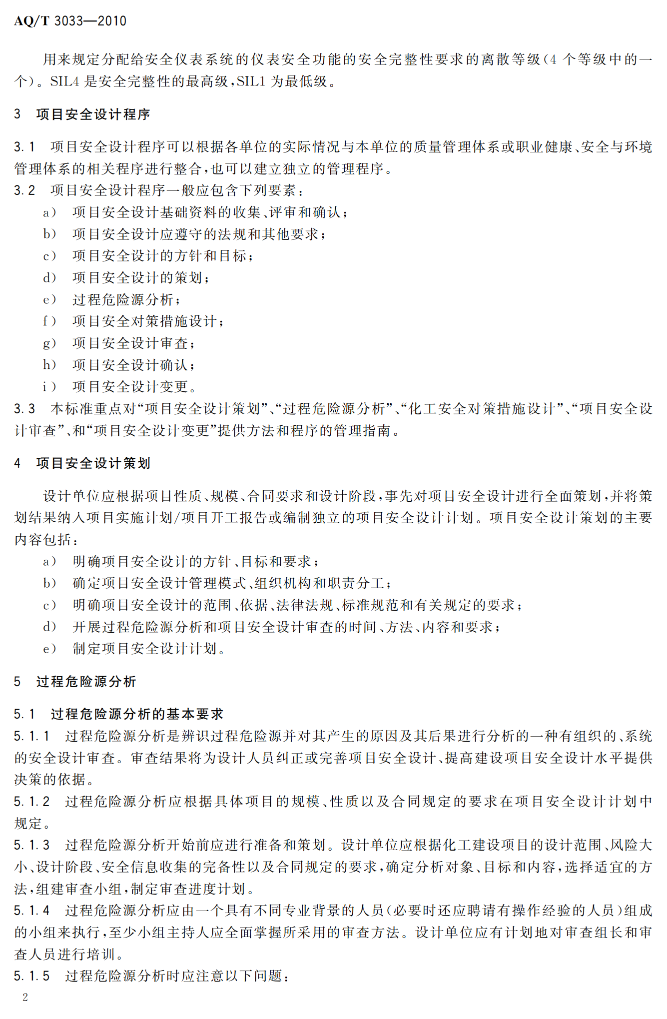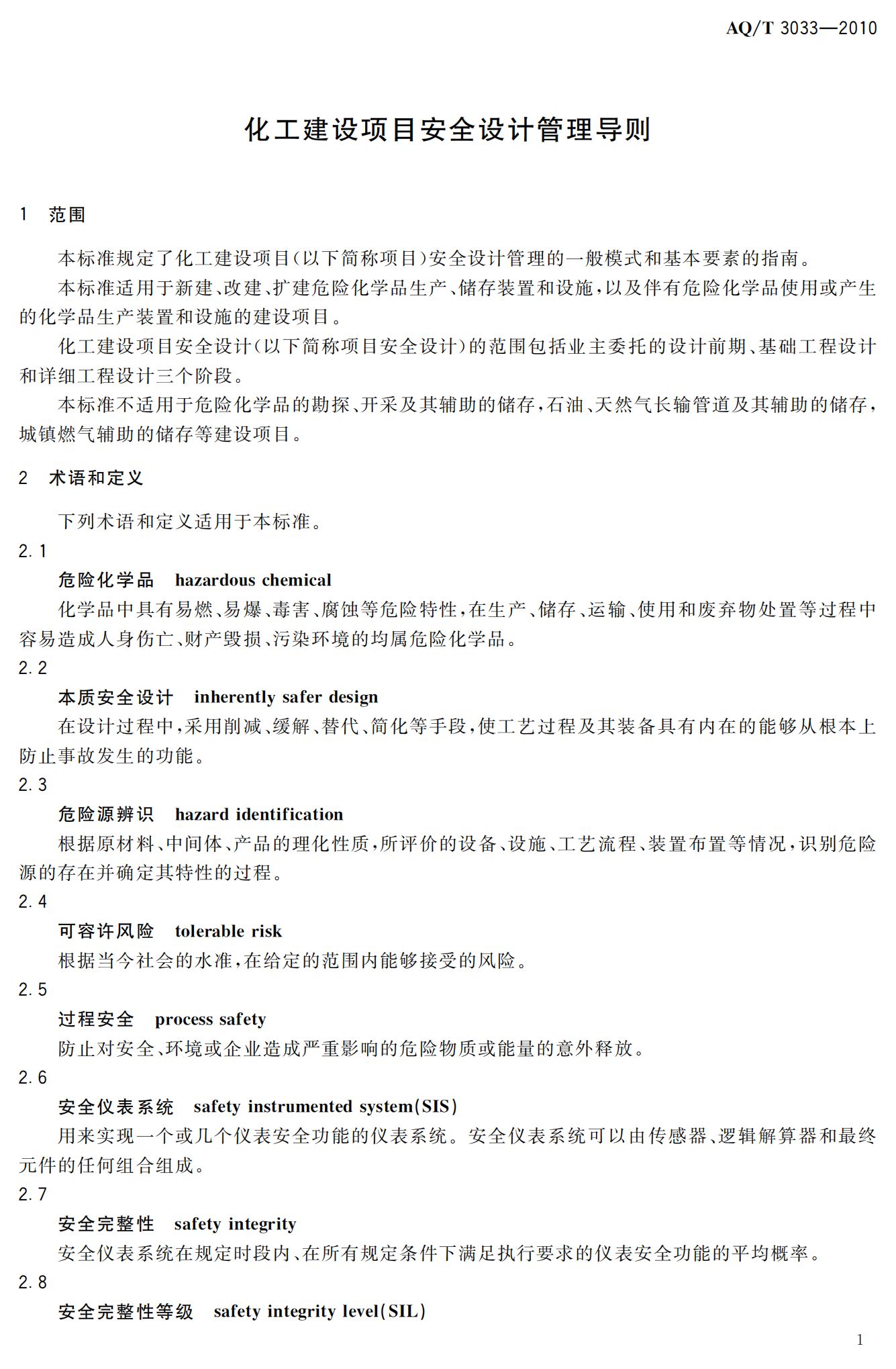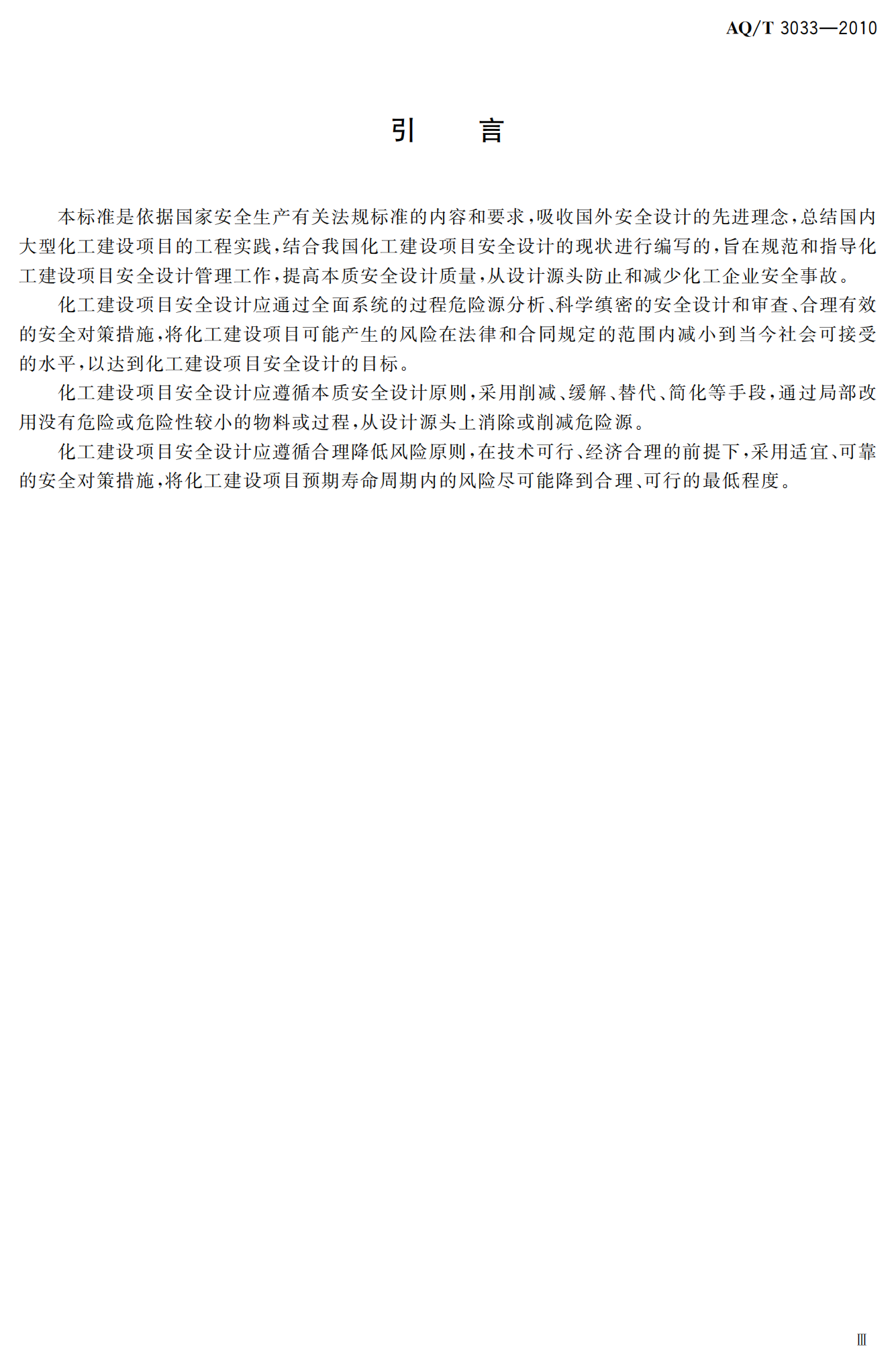《化工建设项目安全设计管理导则》(AQ-T3033-2010)