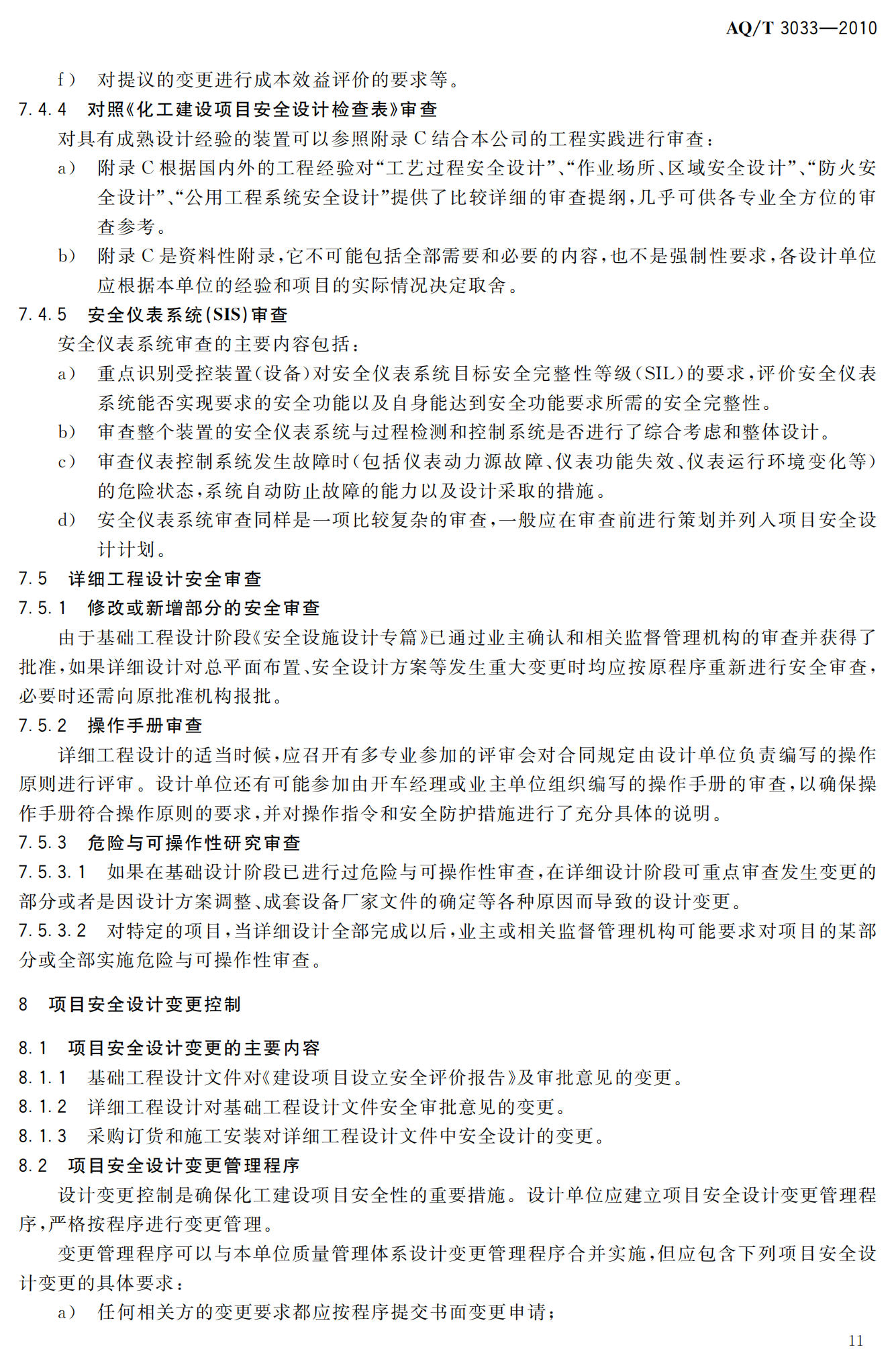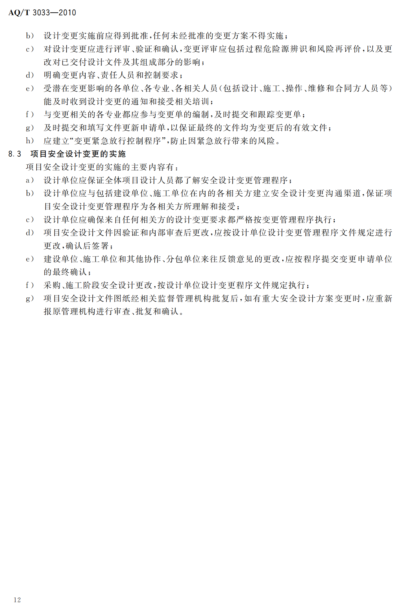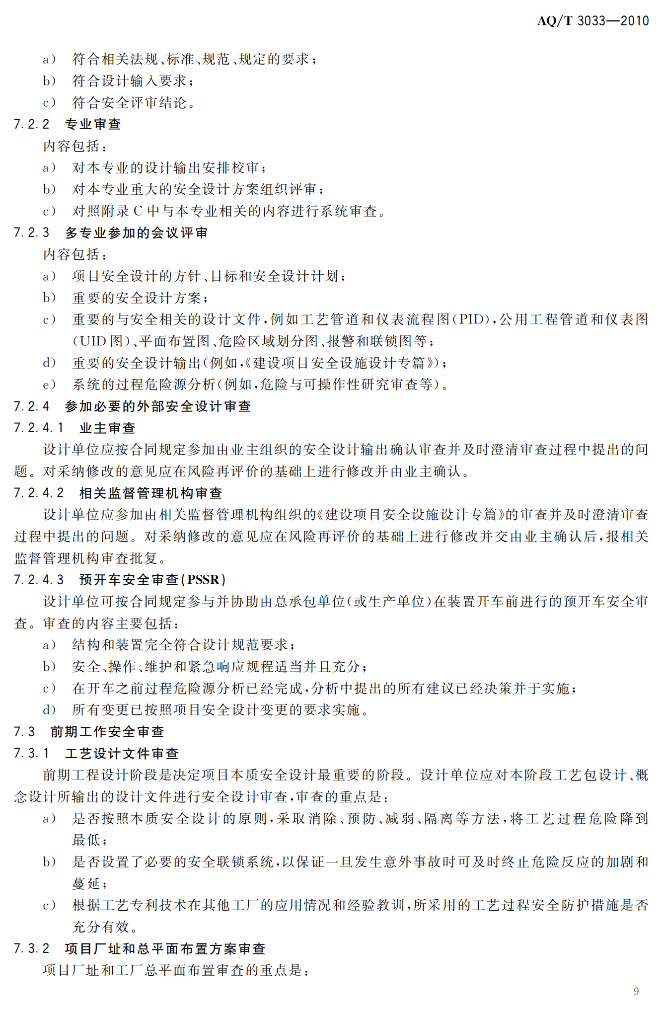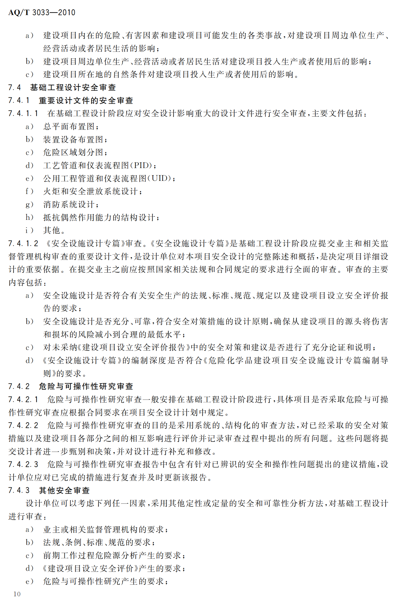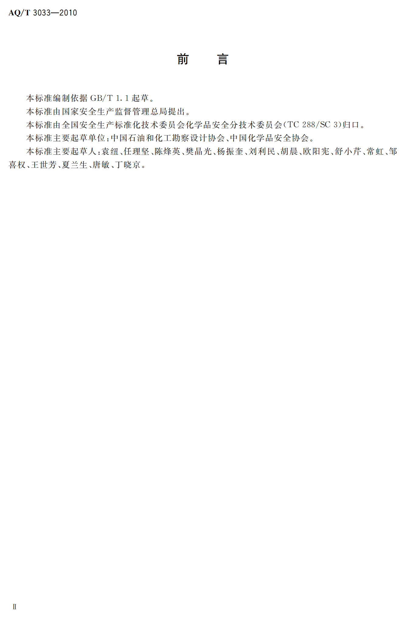 《化工建设项目安全设计管理导则》(AQ-T3033-2010)
