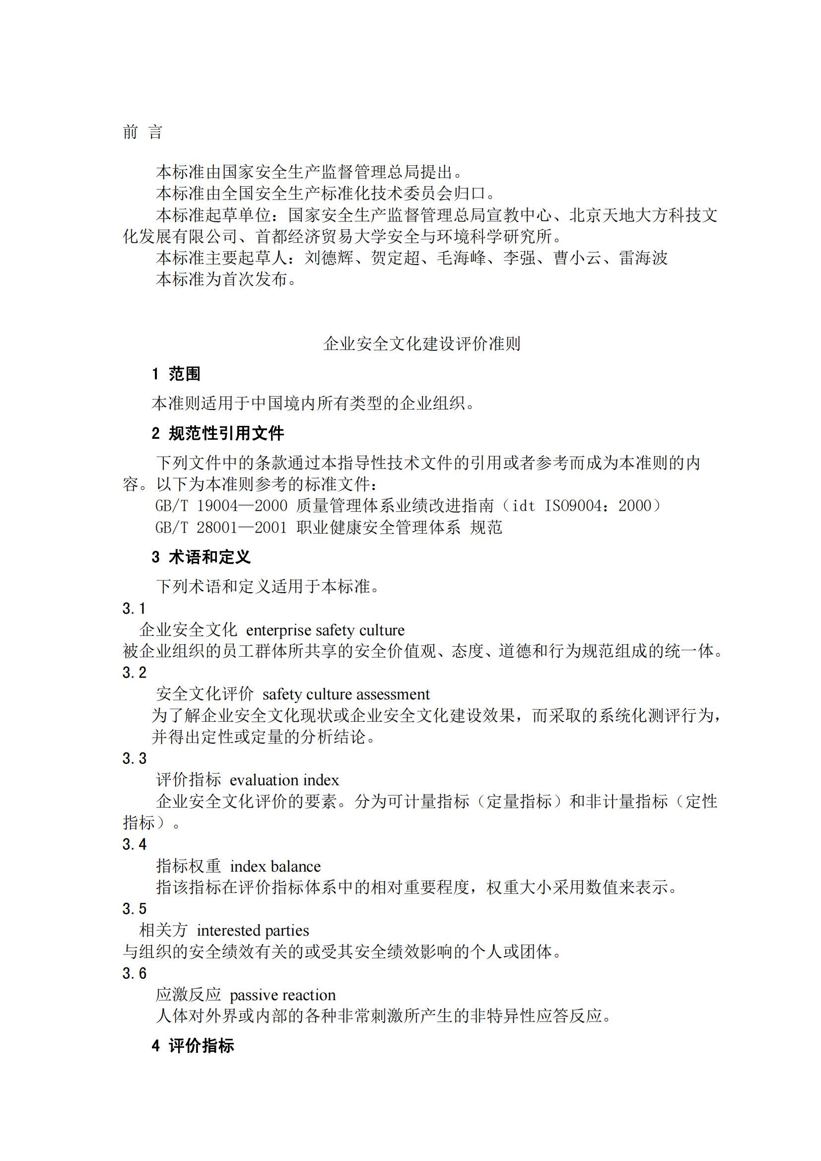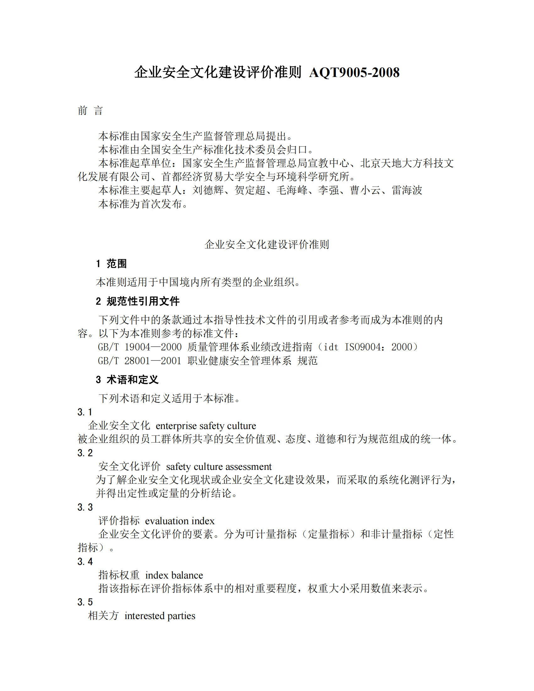 《企业安全文化建设评价准则》(AQT9005-2008)