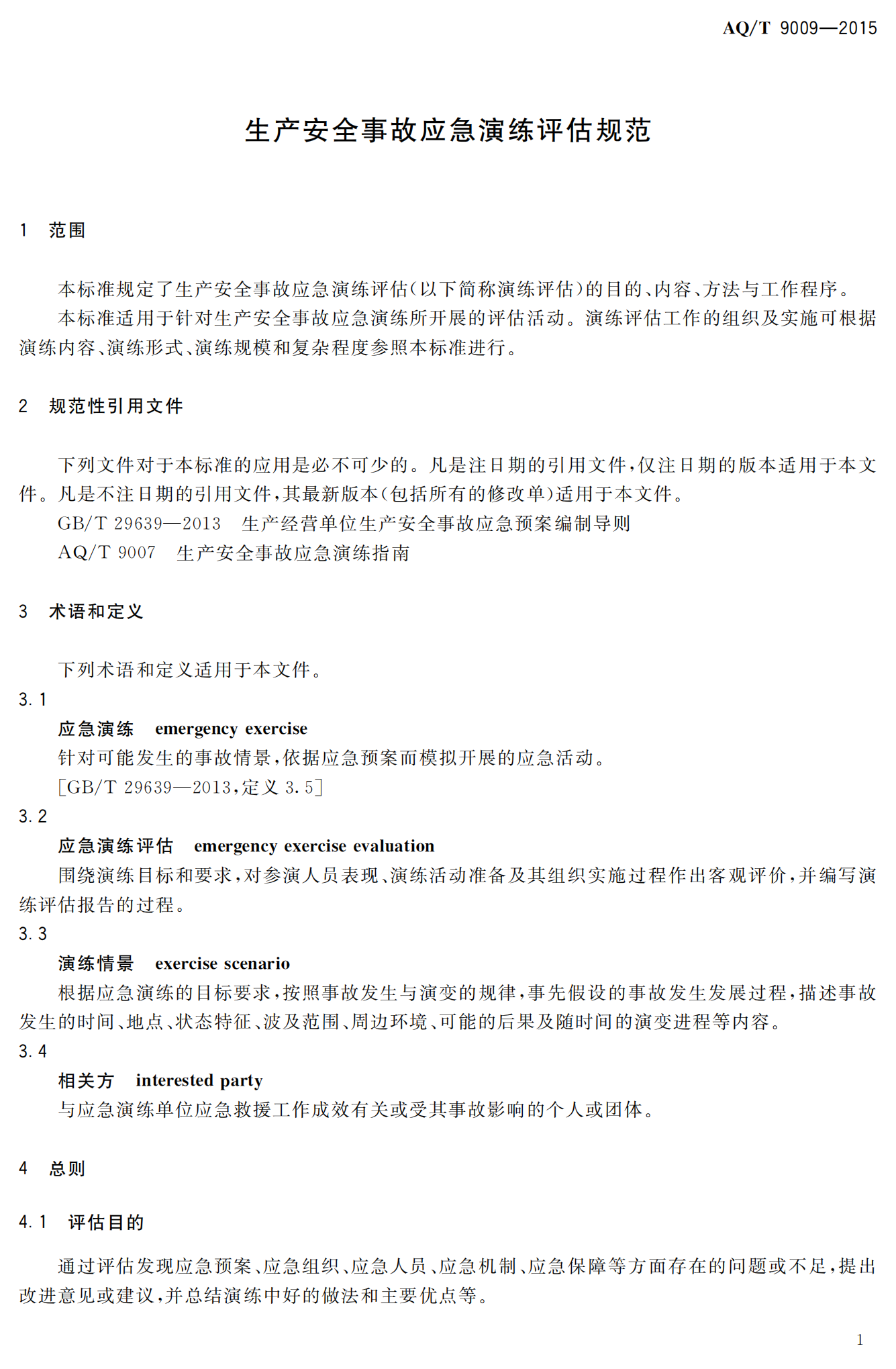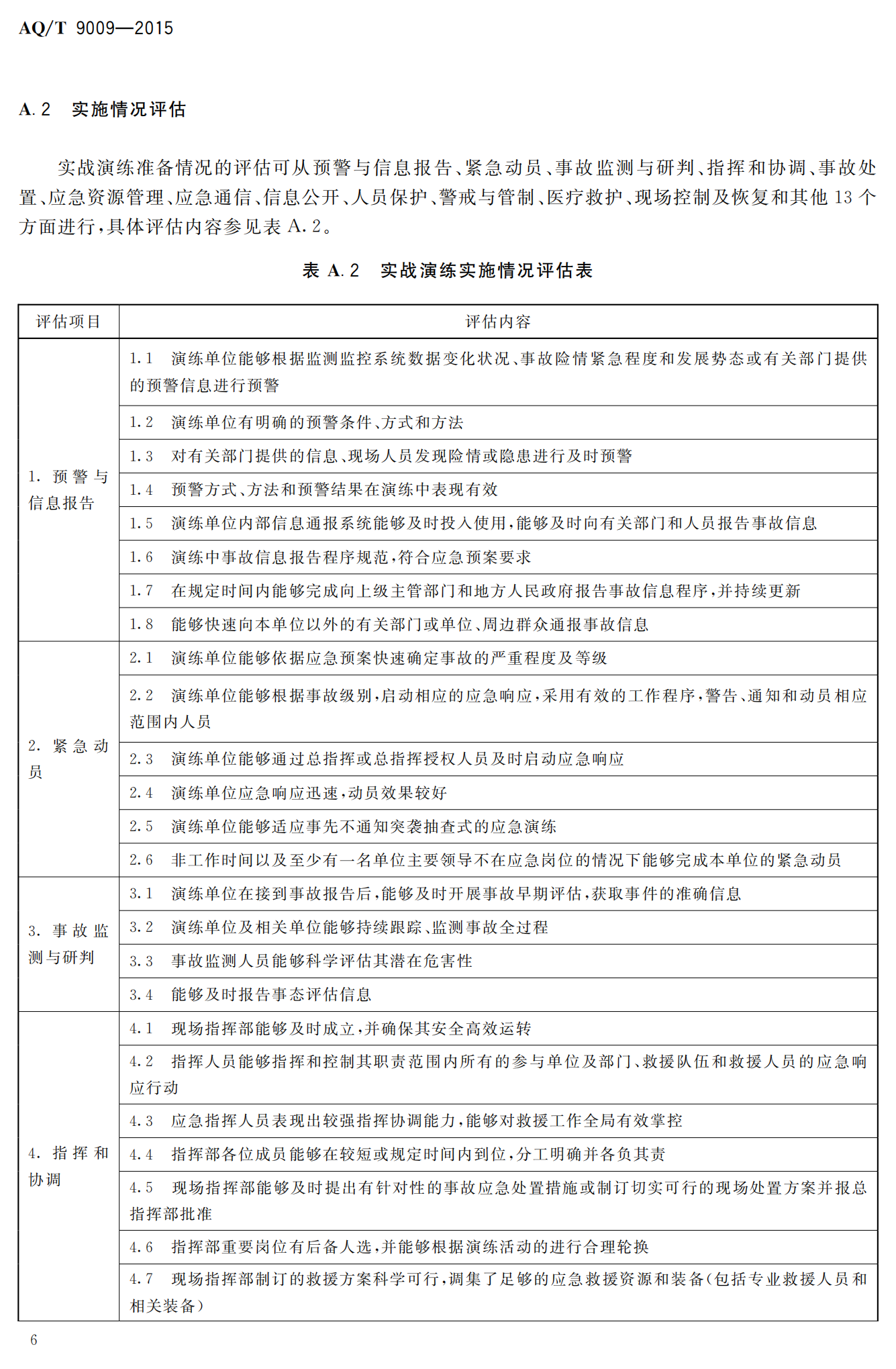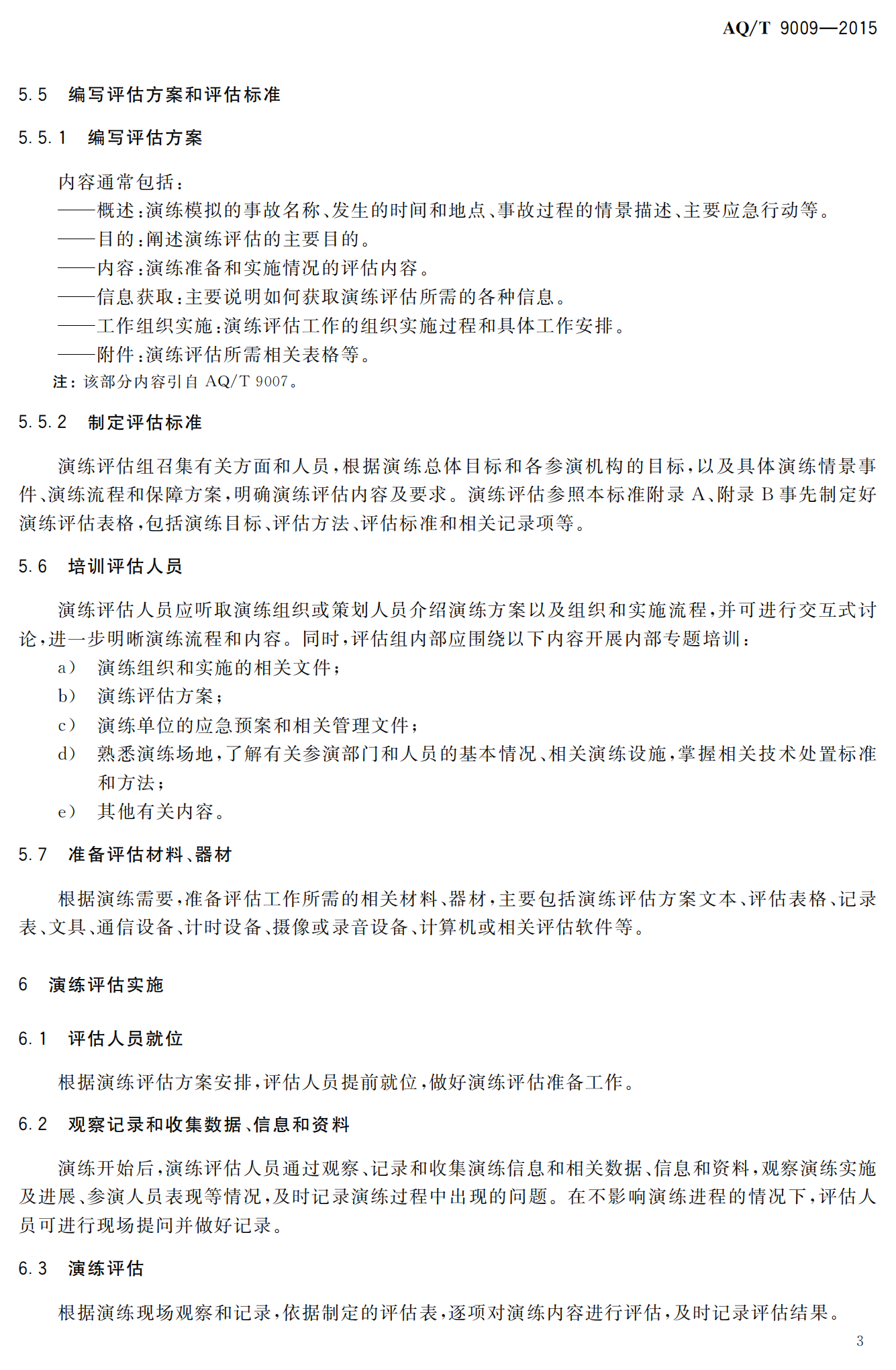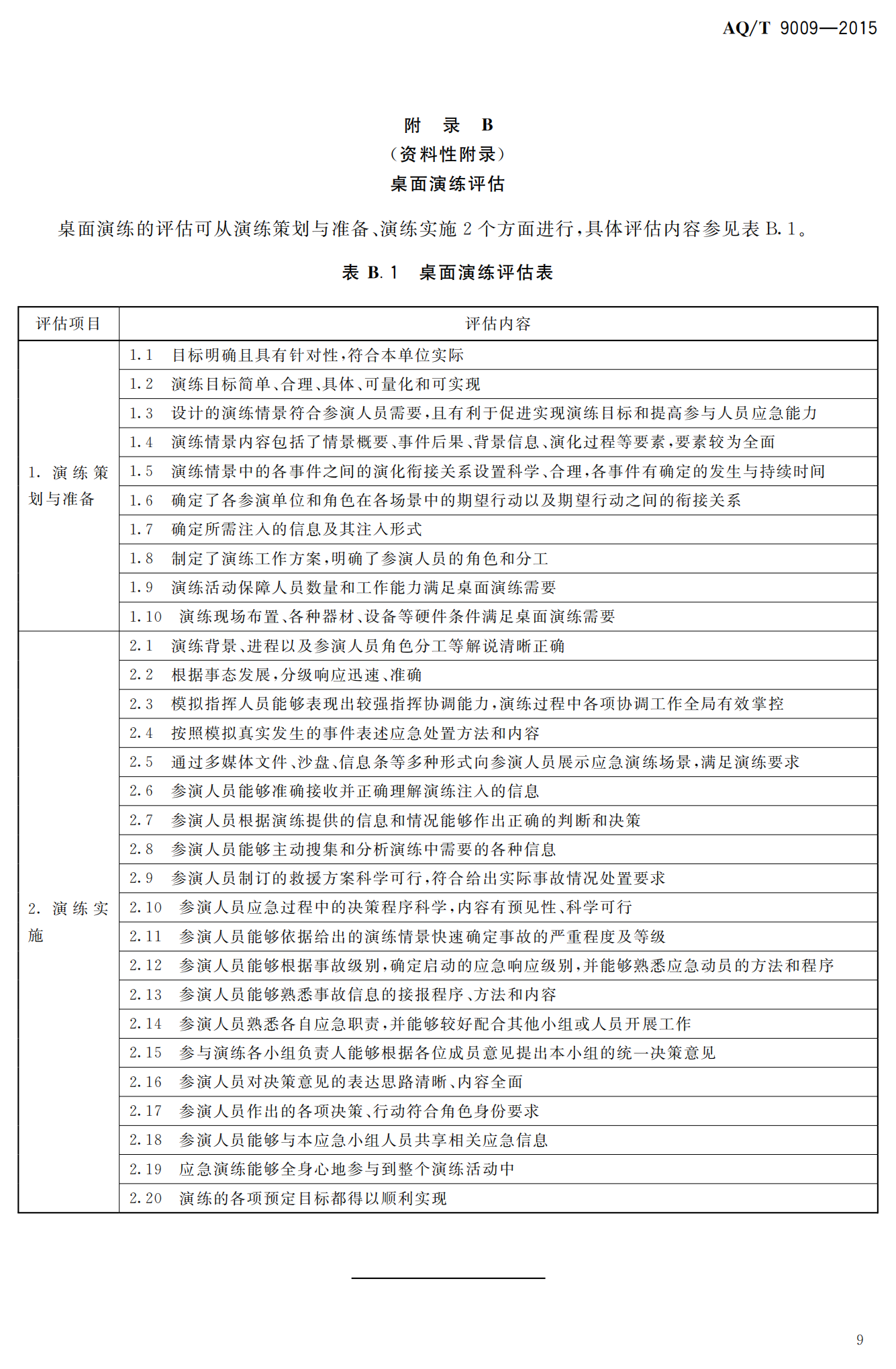 《生产安全事故应急演练评估规范》(AQT9009-2015)