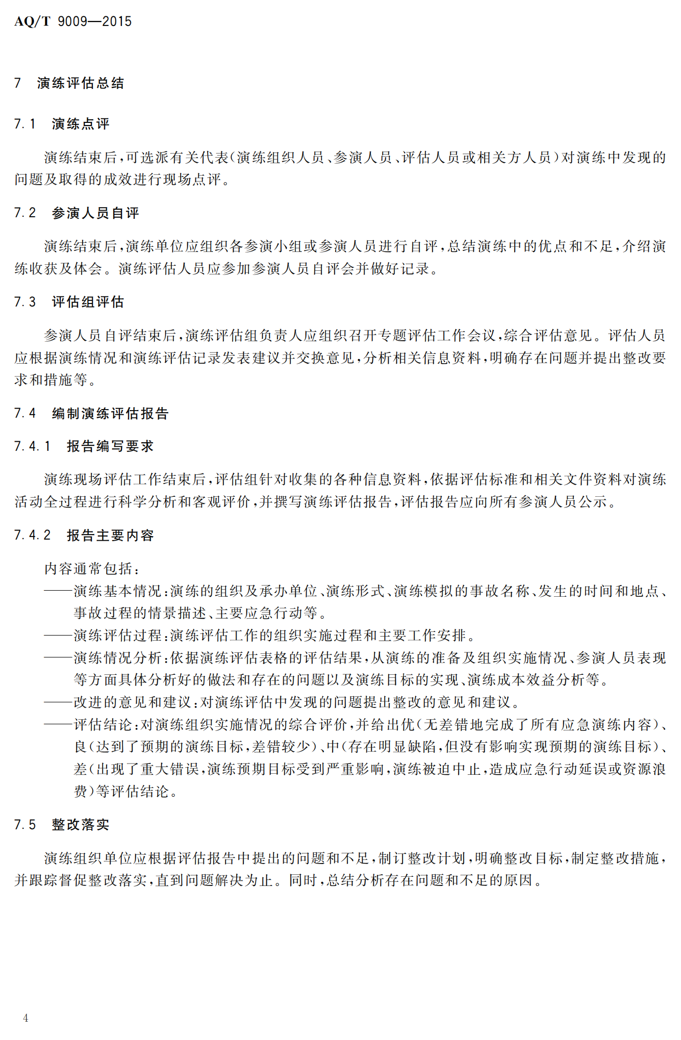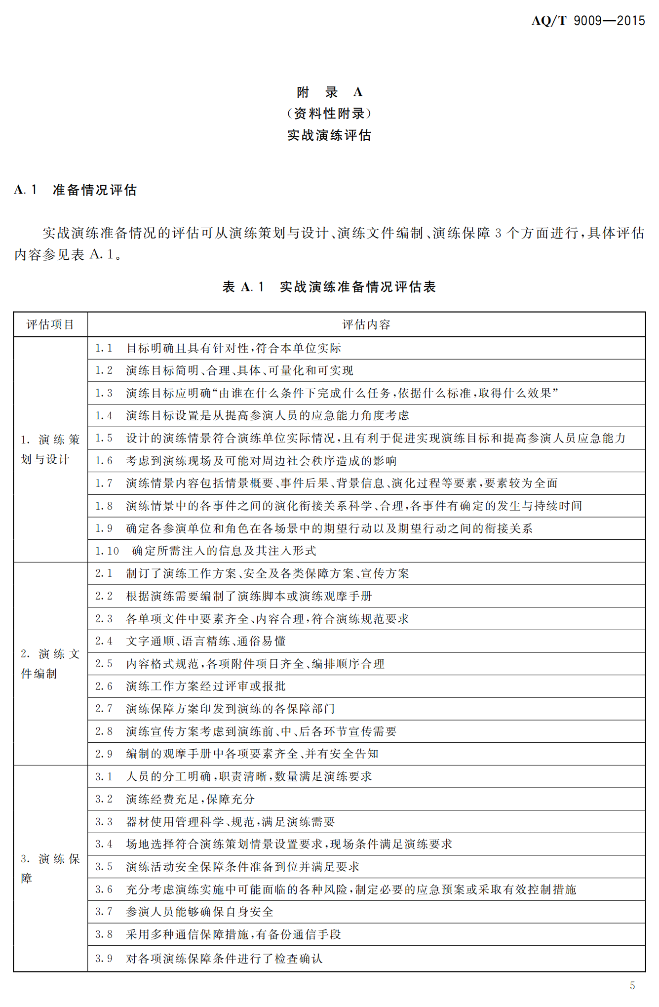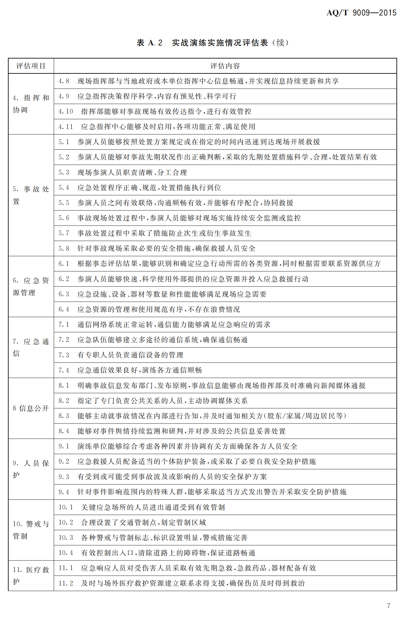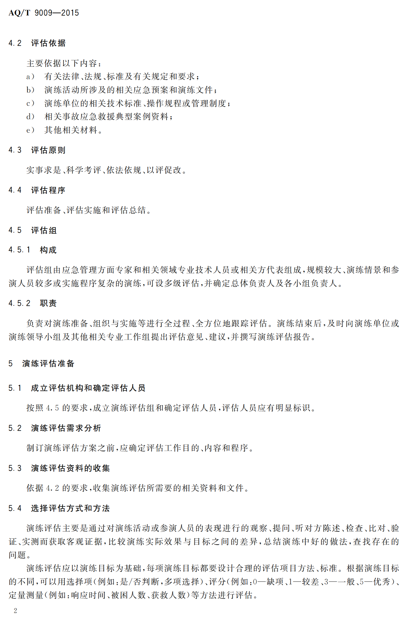 《生产安全事故应急演练评估规范》(AQT9009-2015)