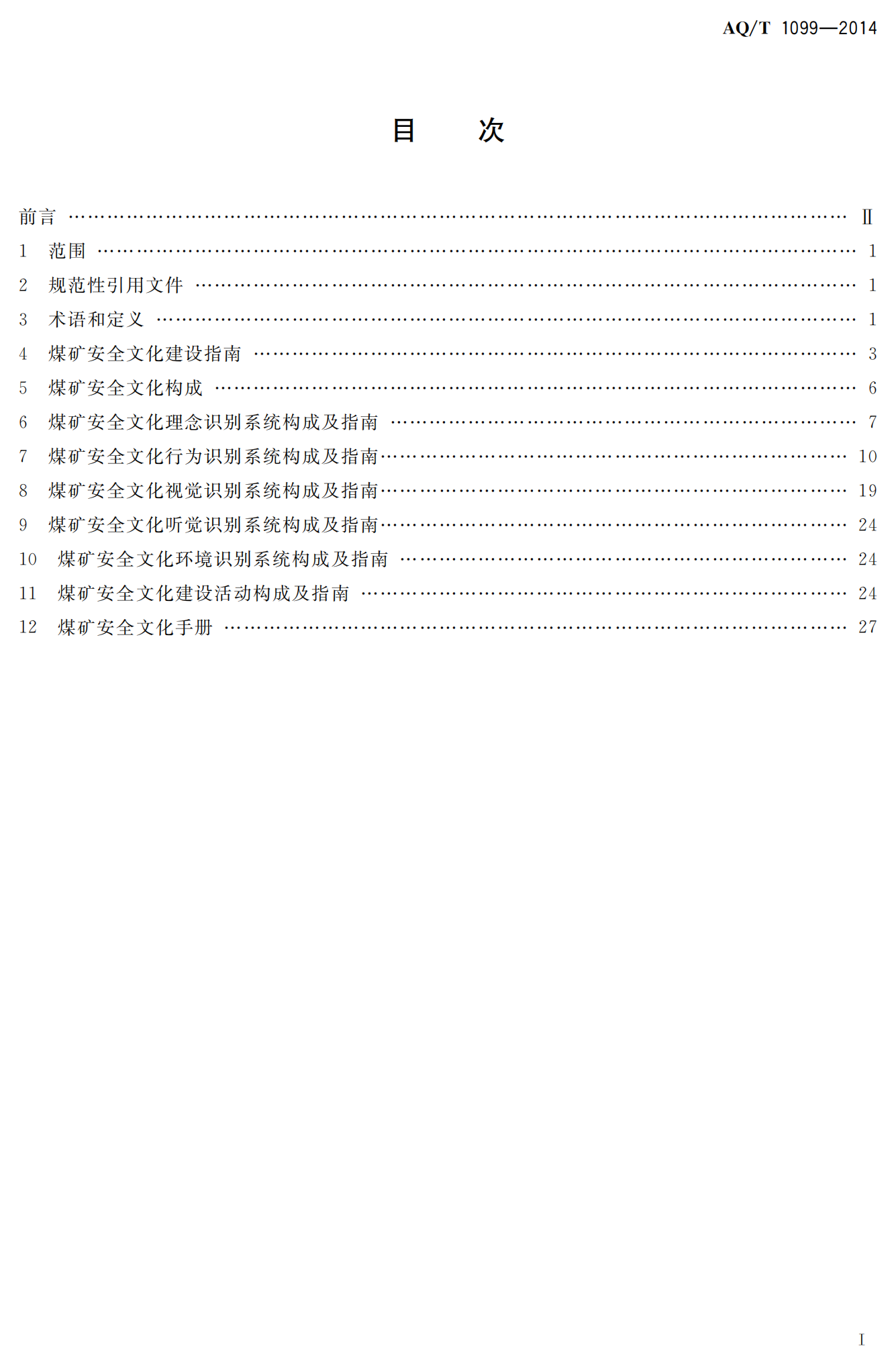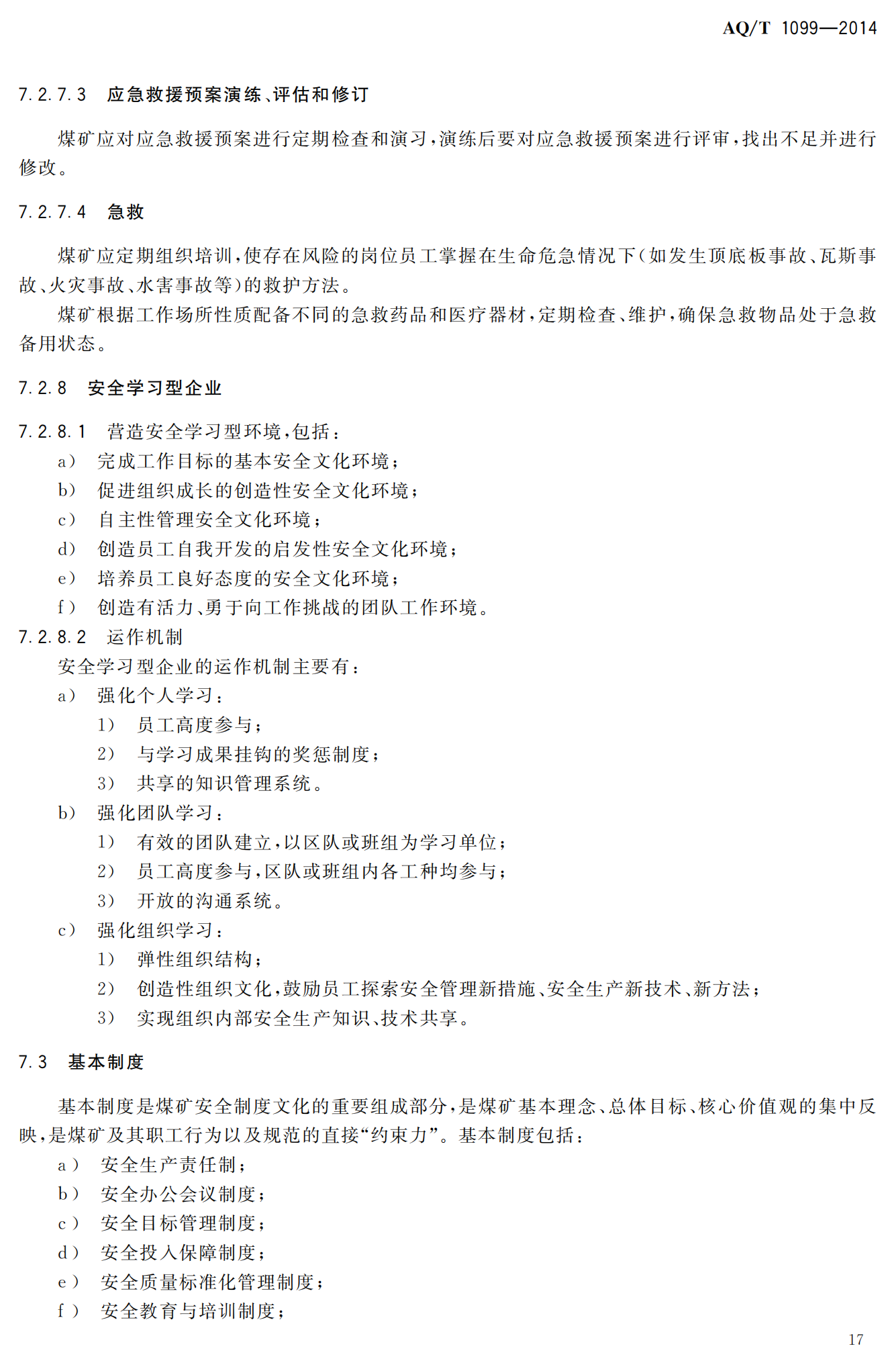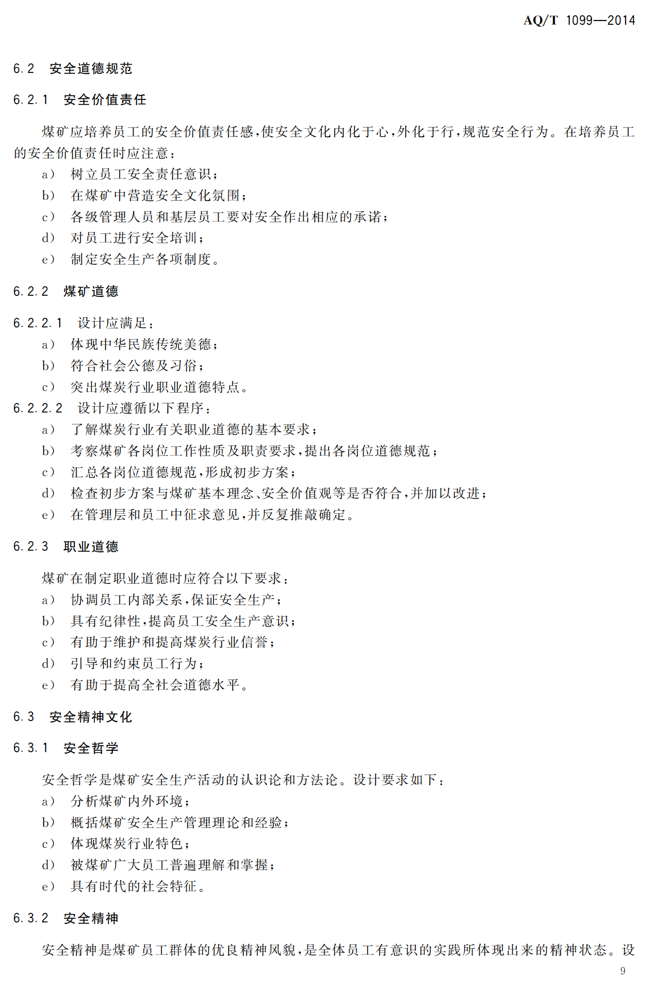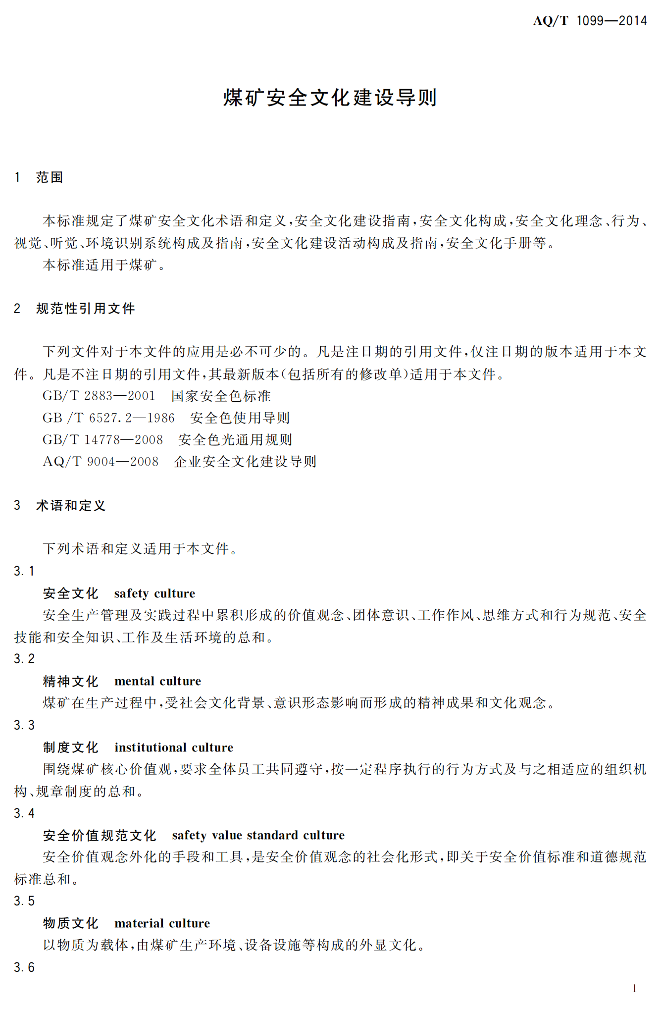 《煤矿安全文化建设导则》(AQT1099-2014)
