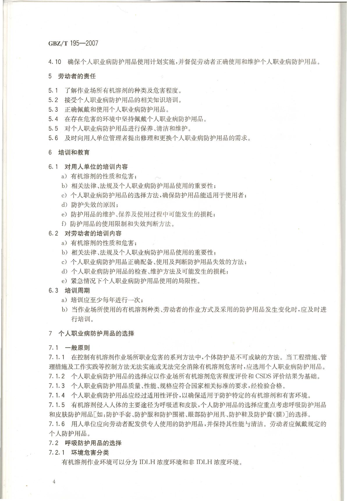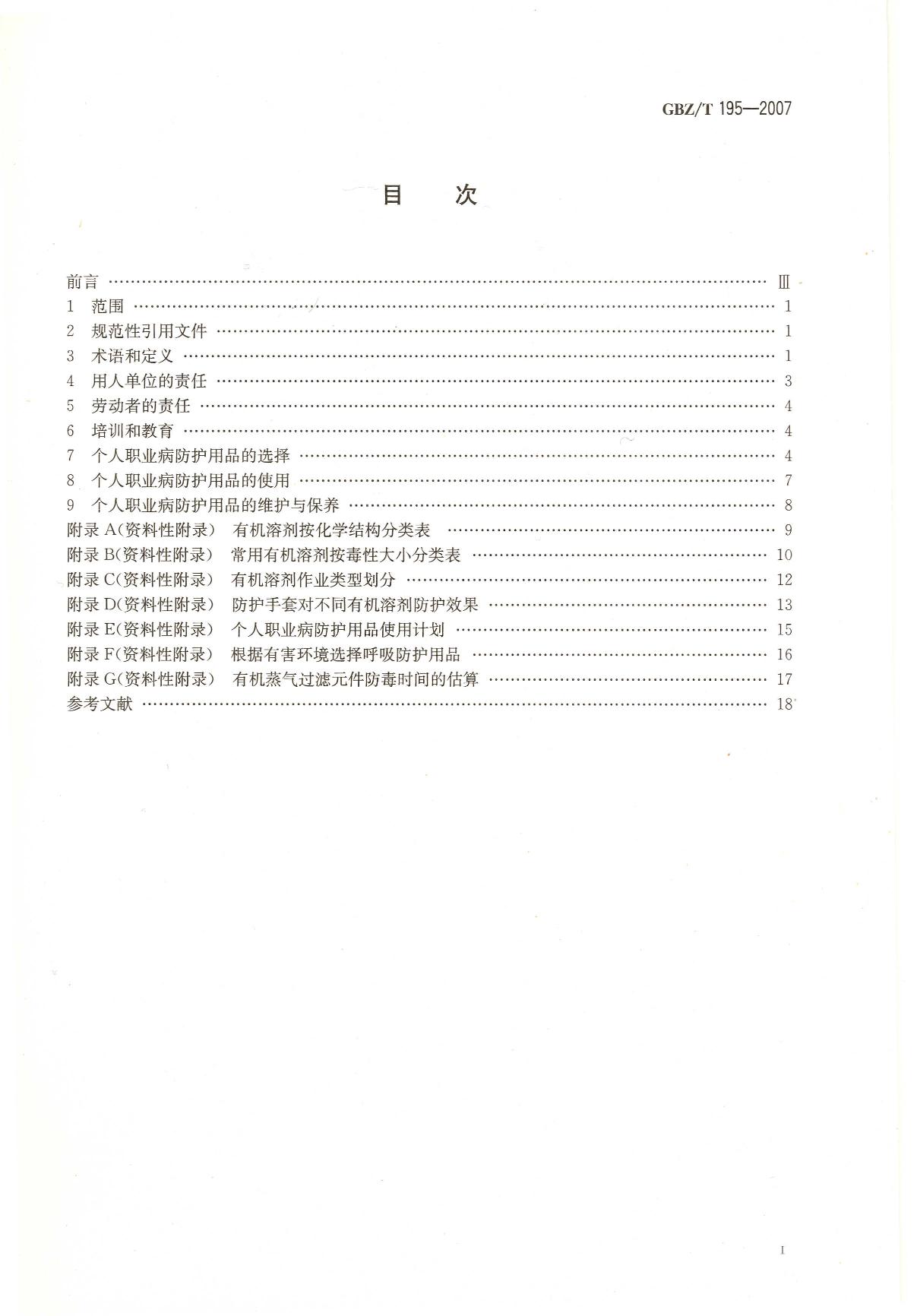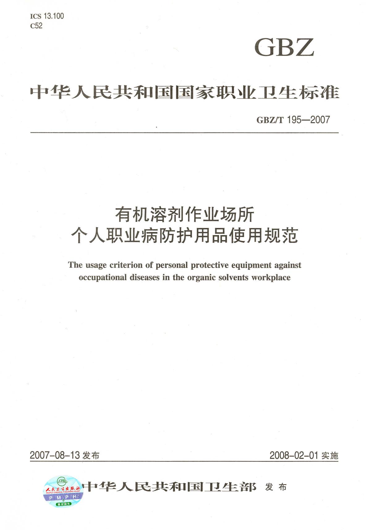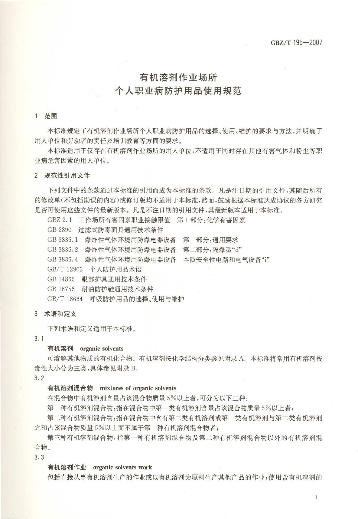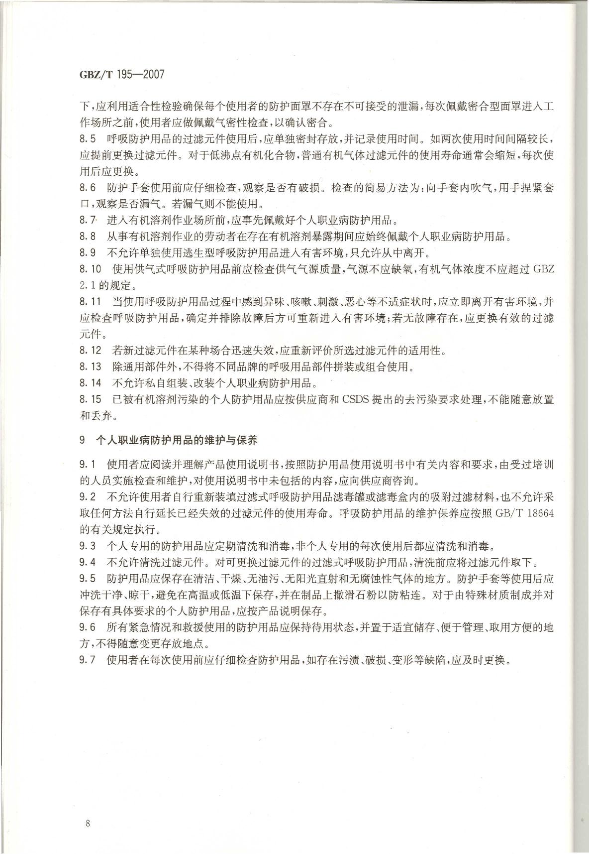 《有机溶剂作业场所个人职业病防护用品使用规范》(GBZ/T195-2007)