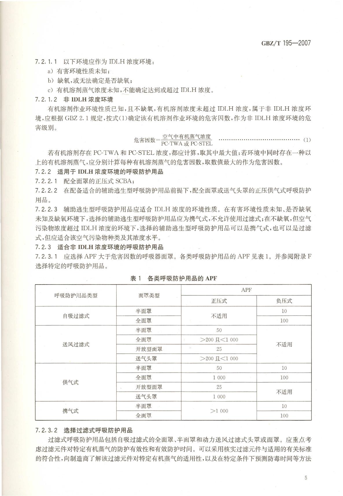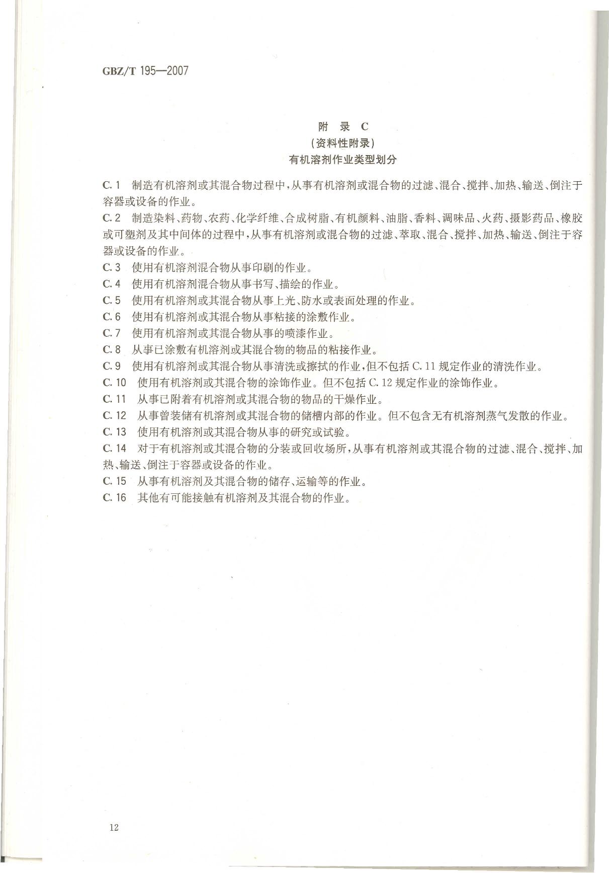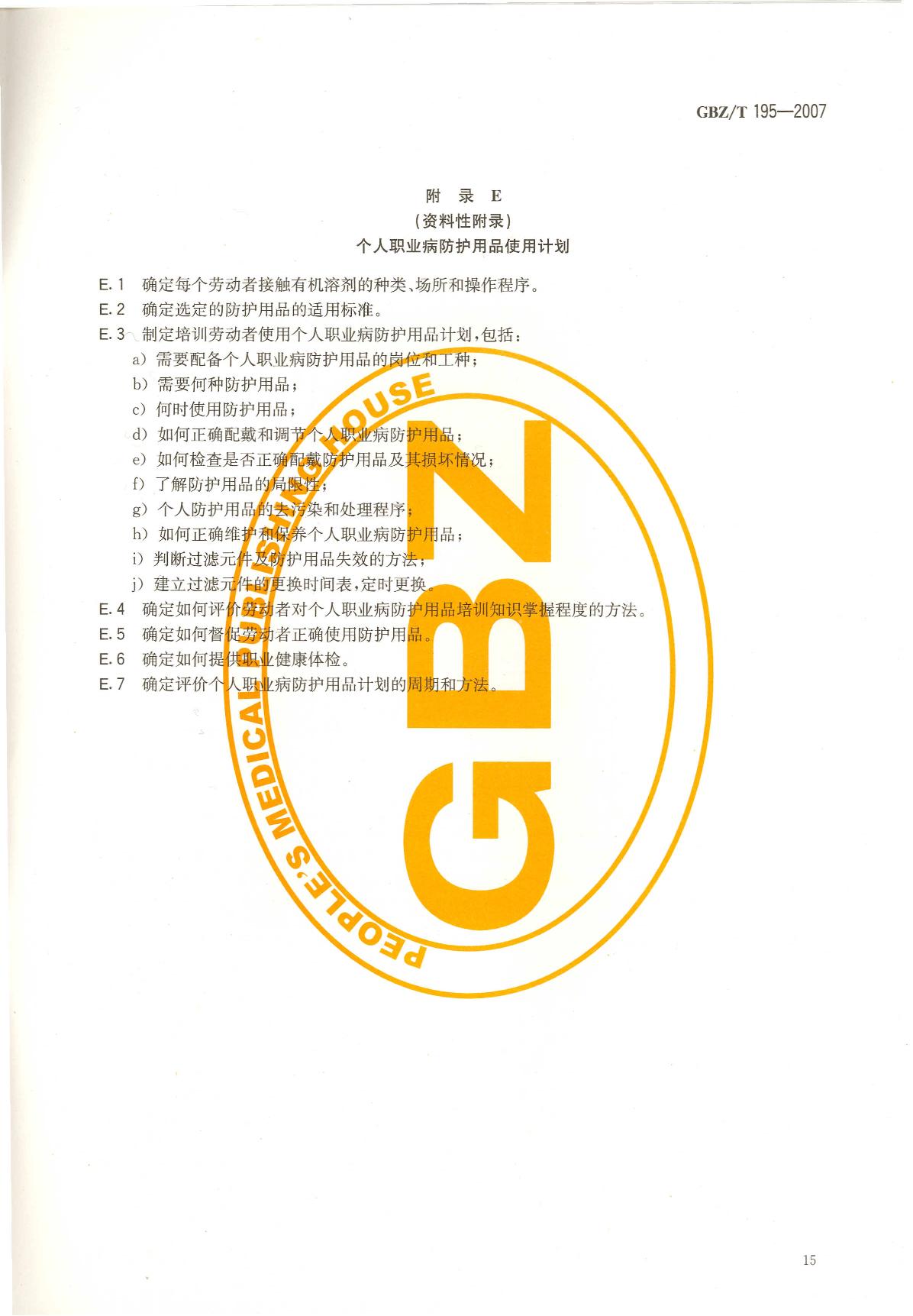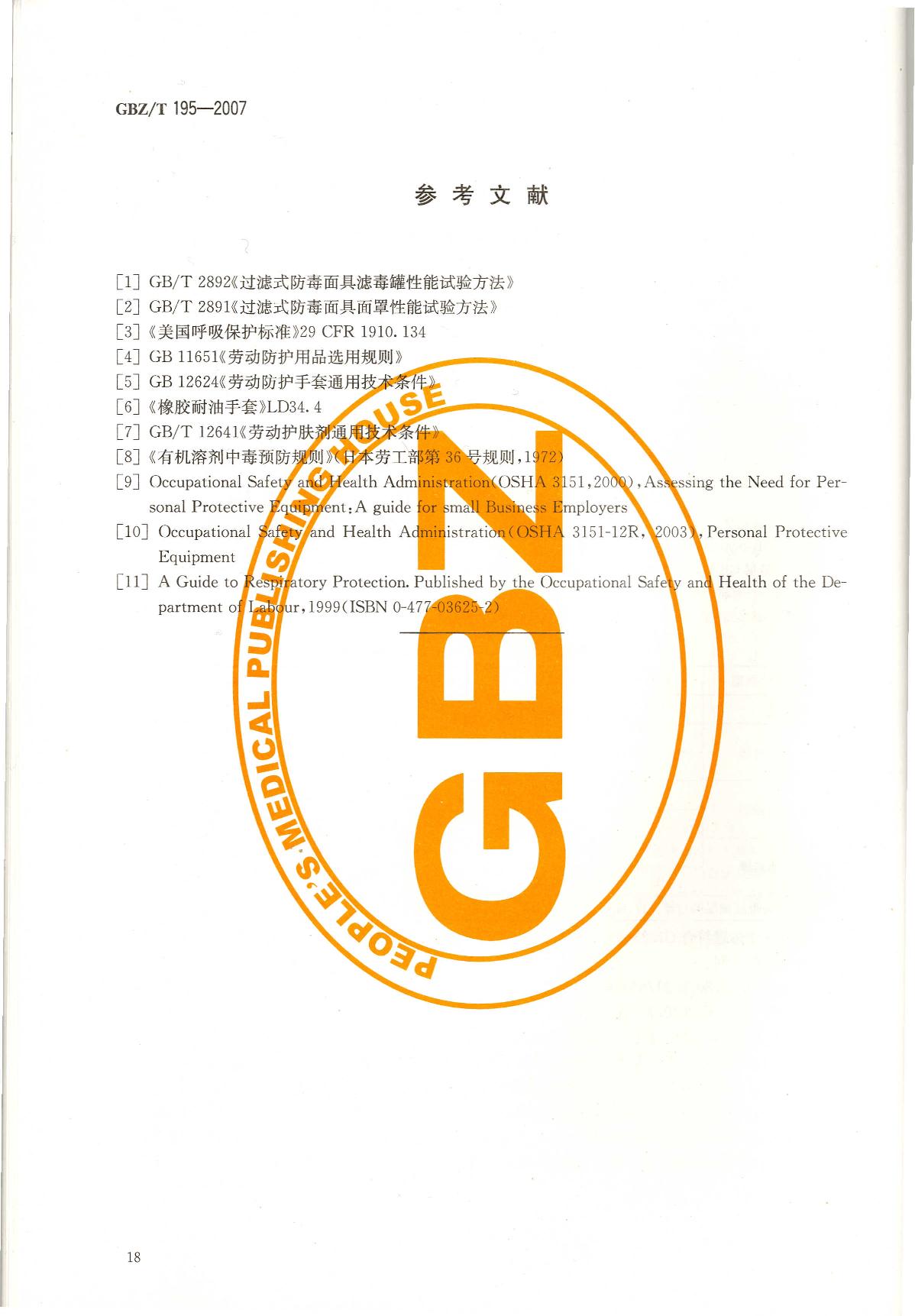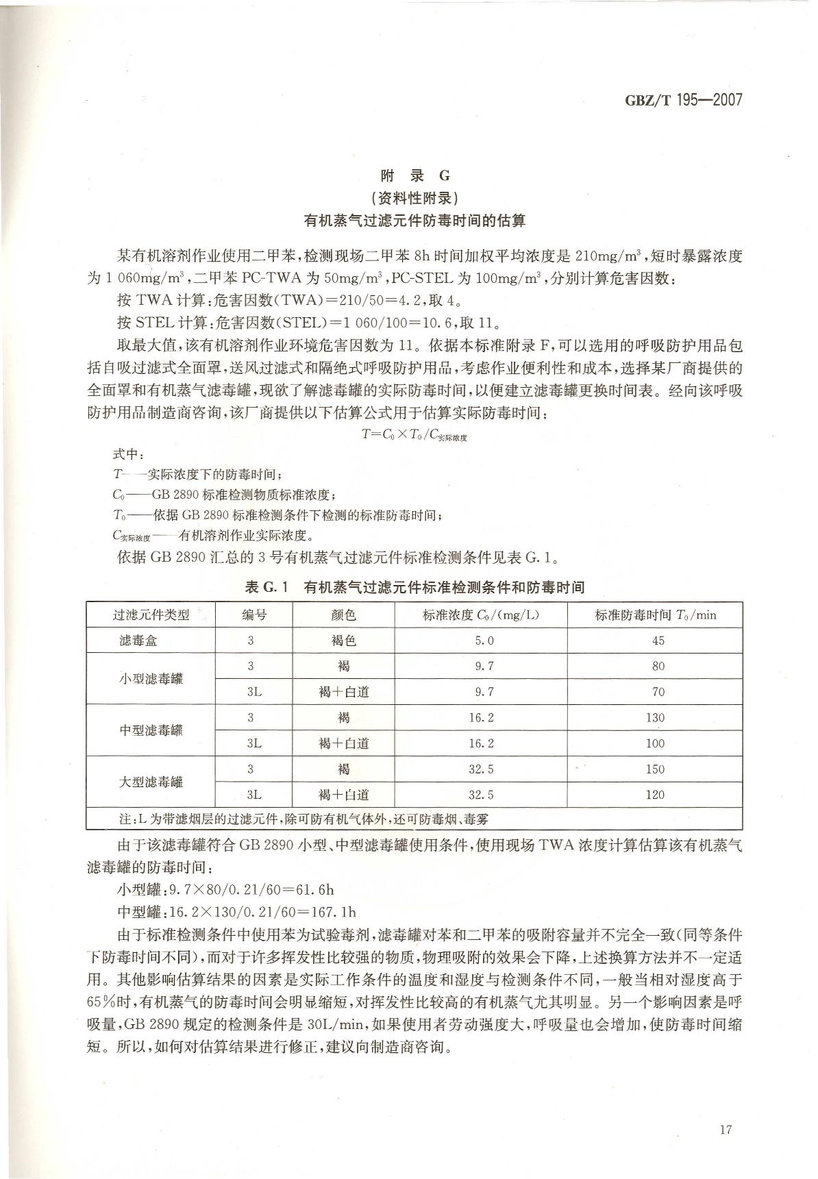 《有机溶剂作业场所个人职业病防护用品使用规范》(GBZ/T195-2007)
