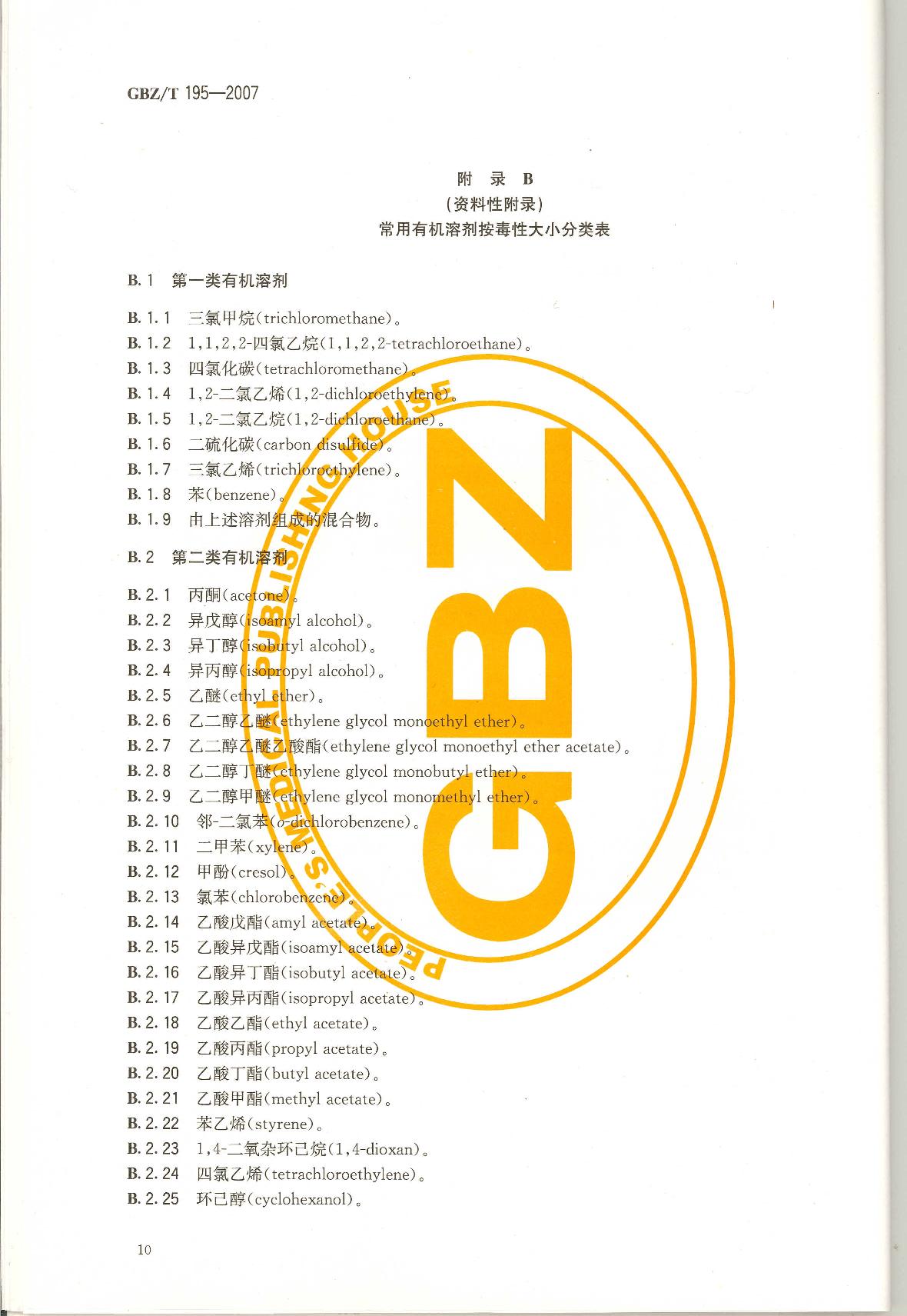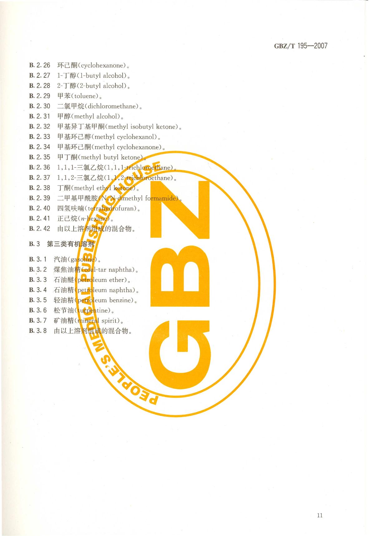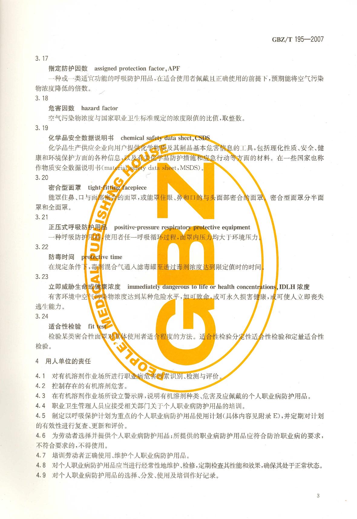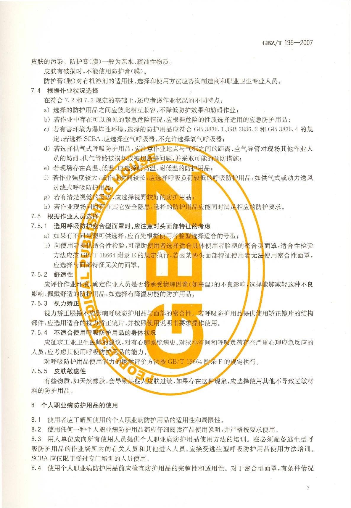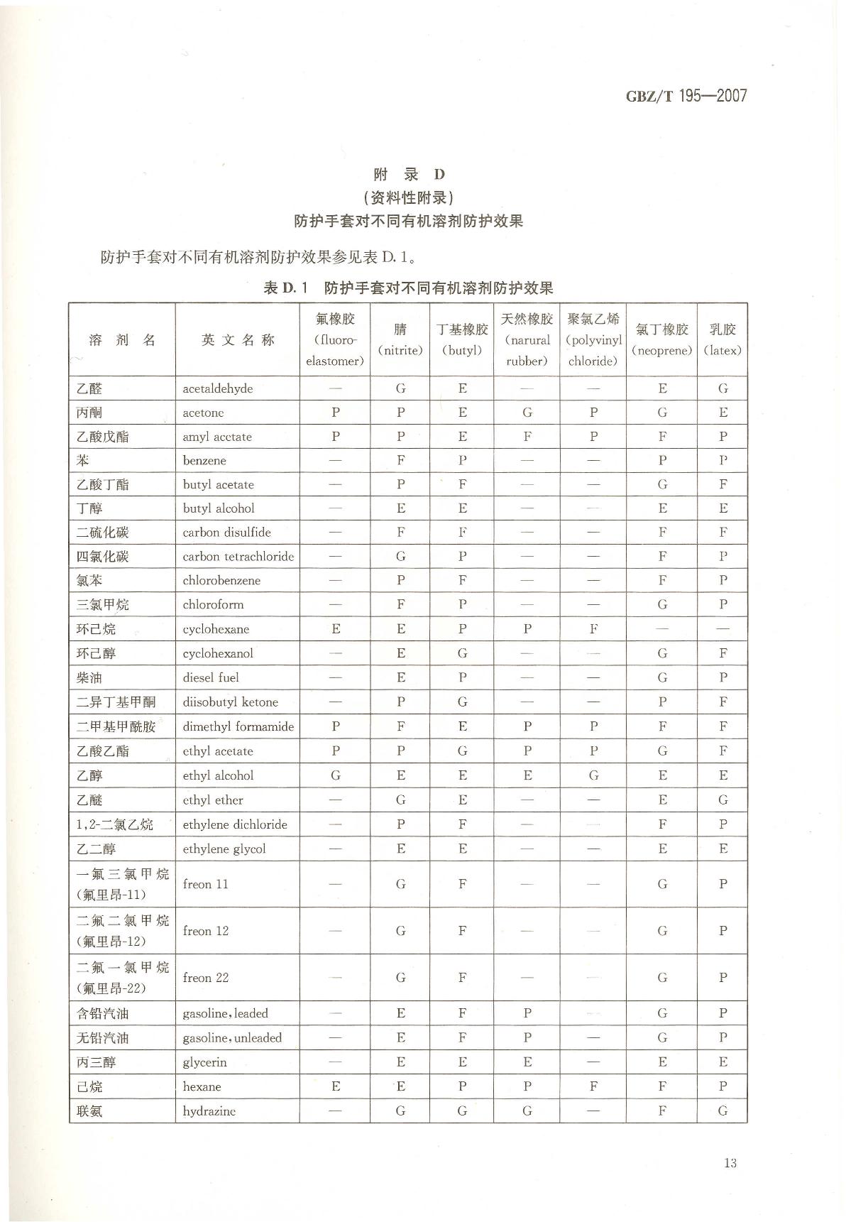《有机溶剂作业场所个人职业病防护用品使用规范》(GBZ/T195-2007)