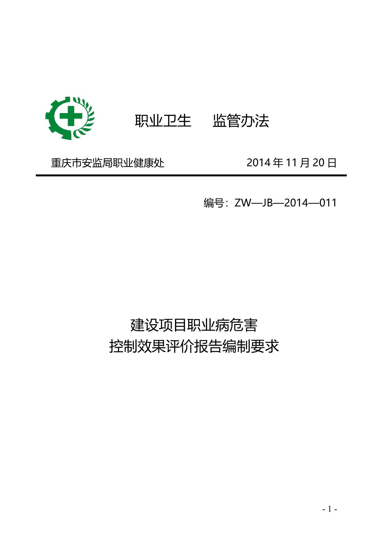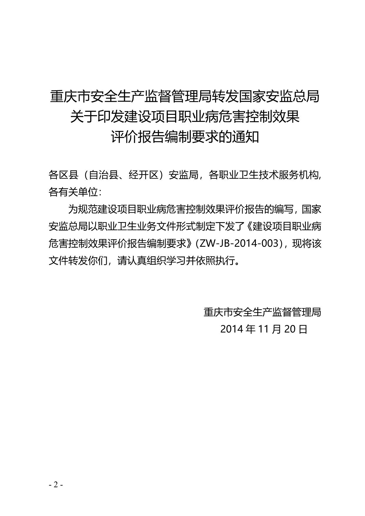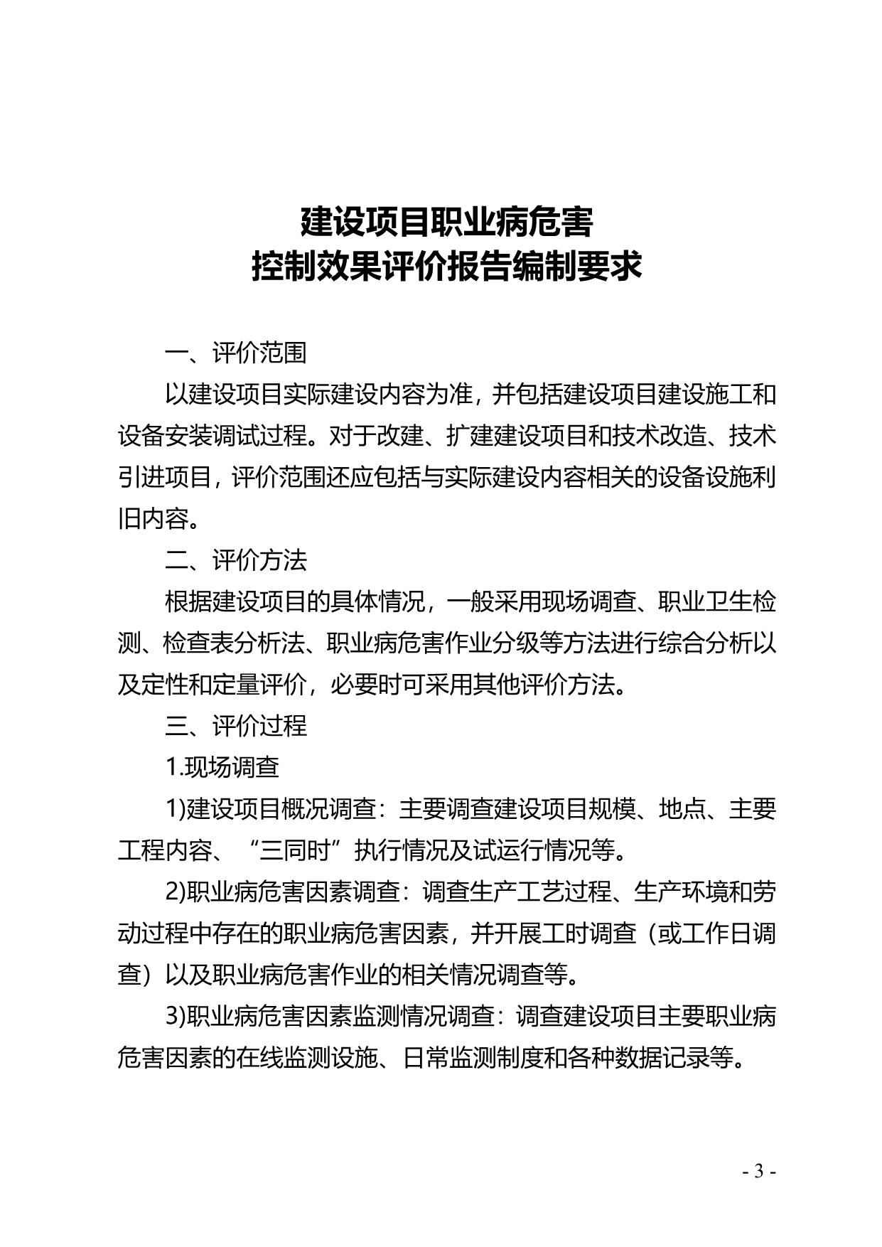 《建设项目职业病危害控制效果评价报告编制要求》(A200-2014.11.20)