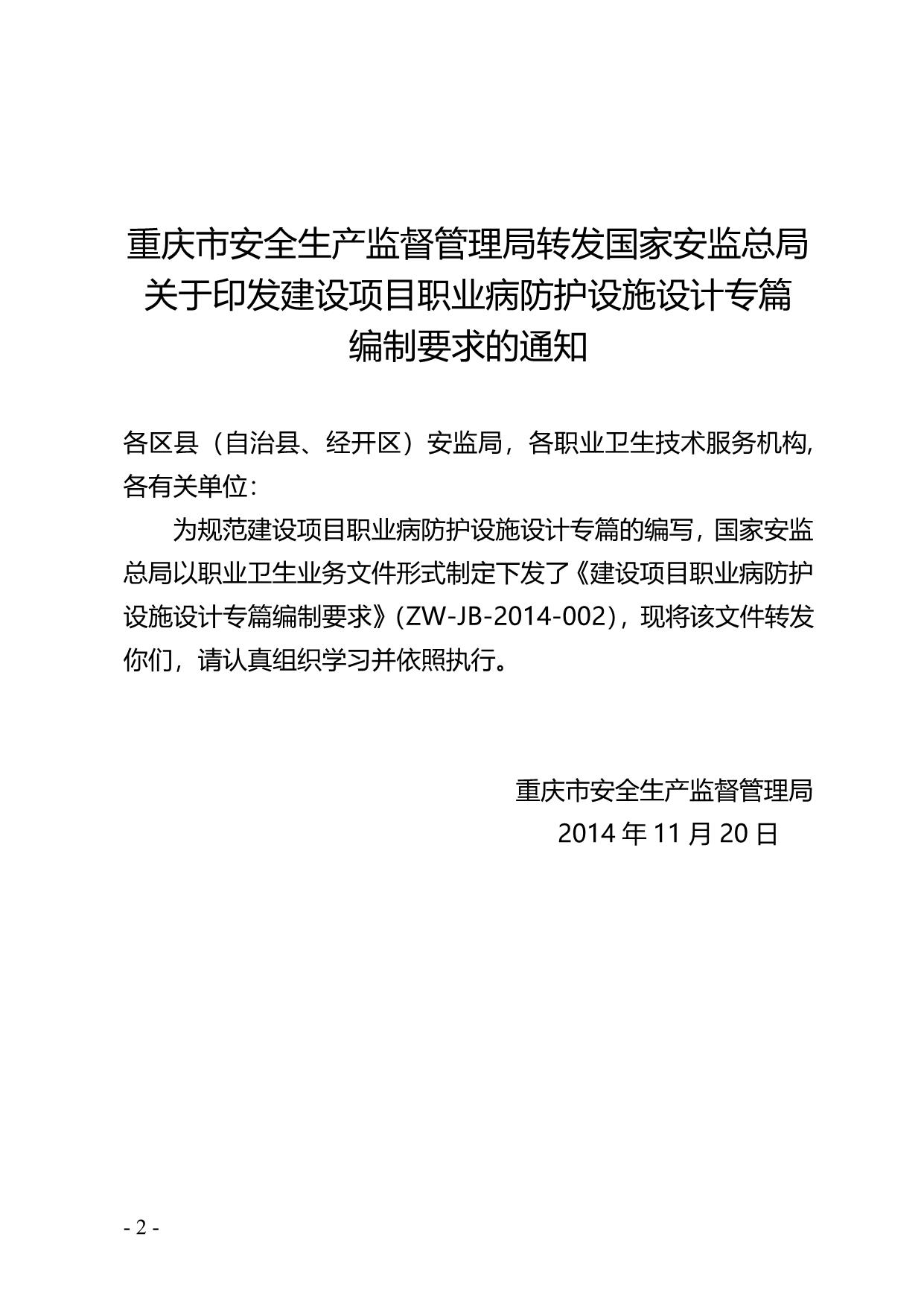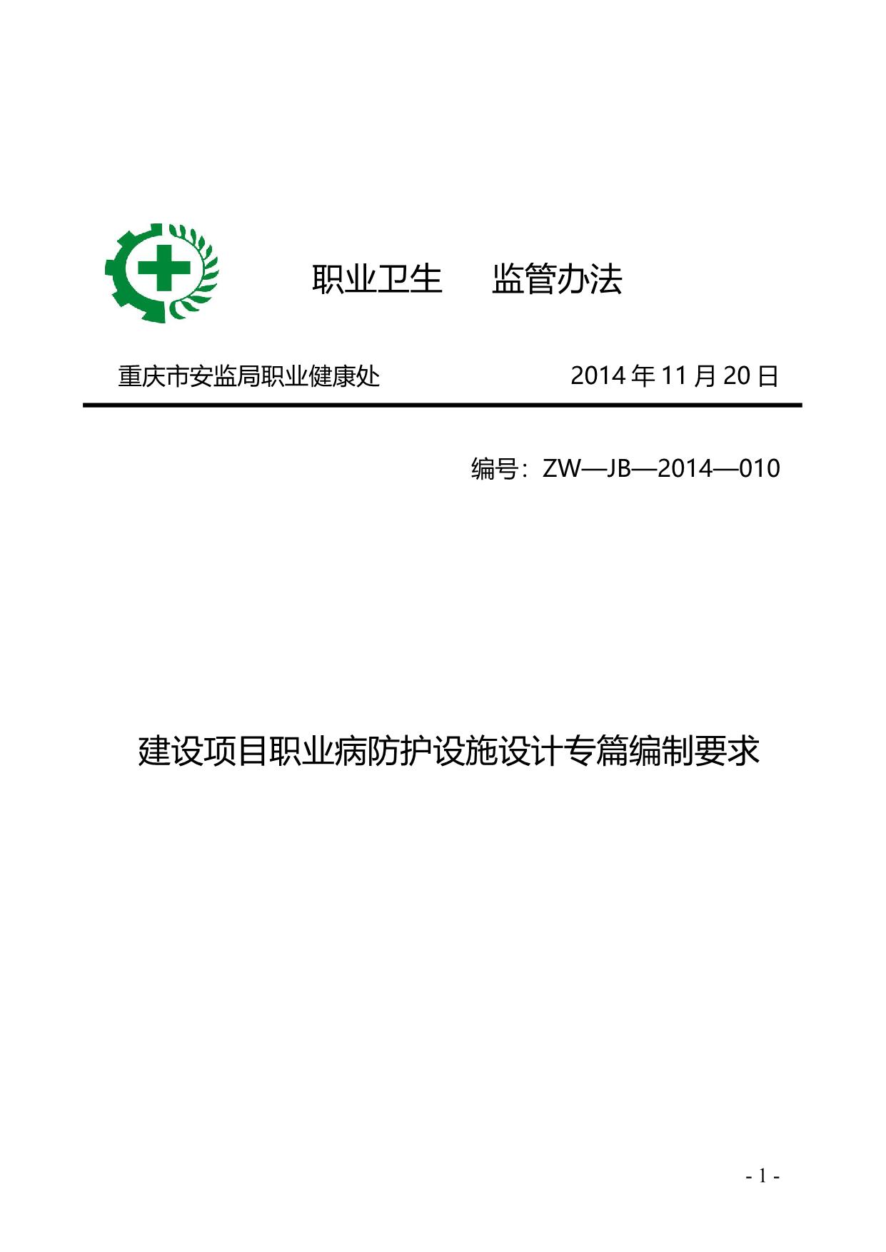 《建设项目职业病防护设施设计专篇编制要求》(A201-2014.11.20)