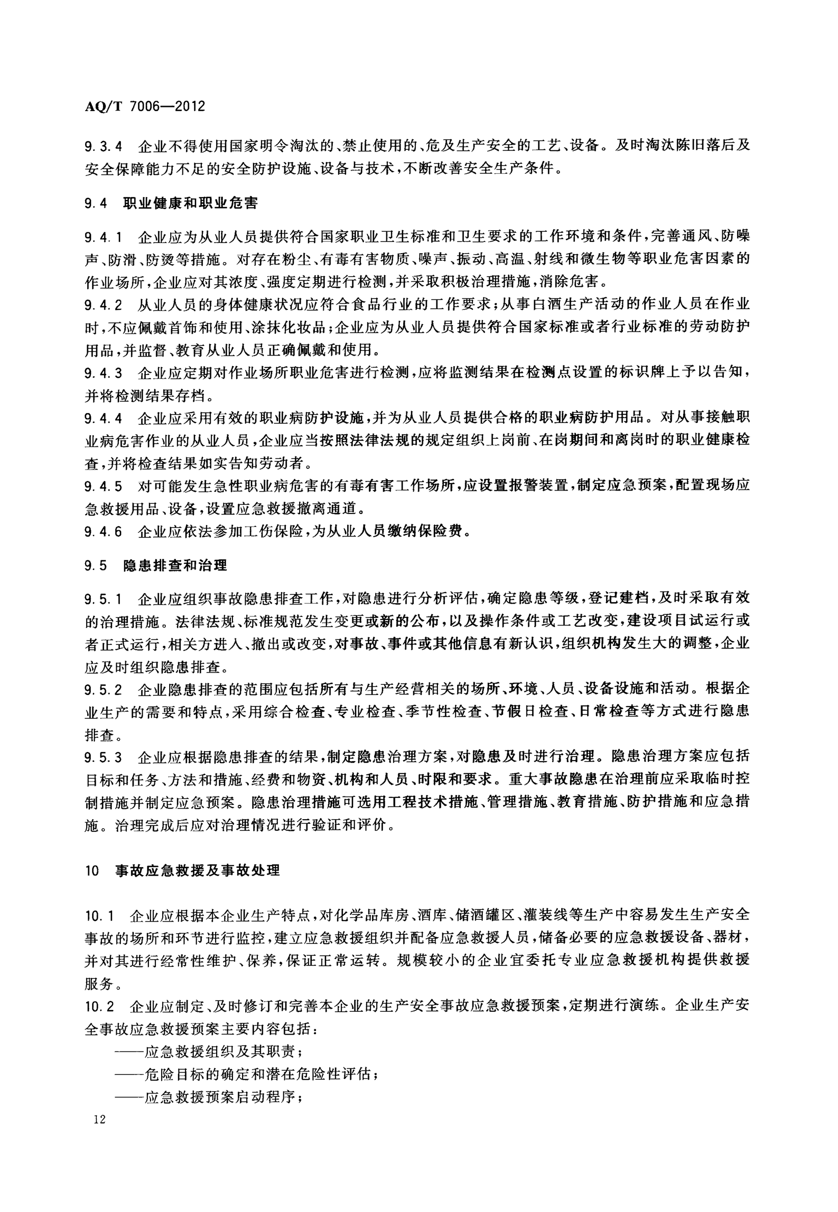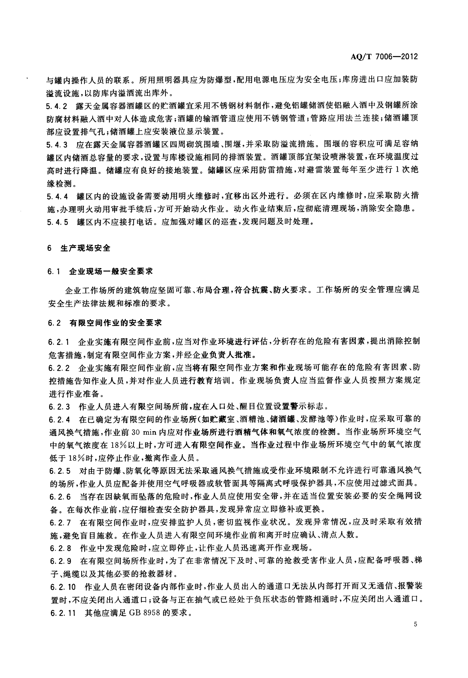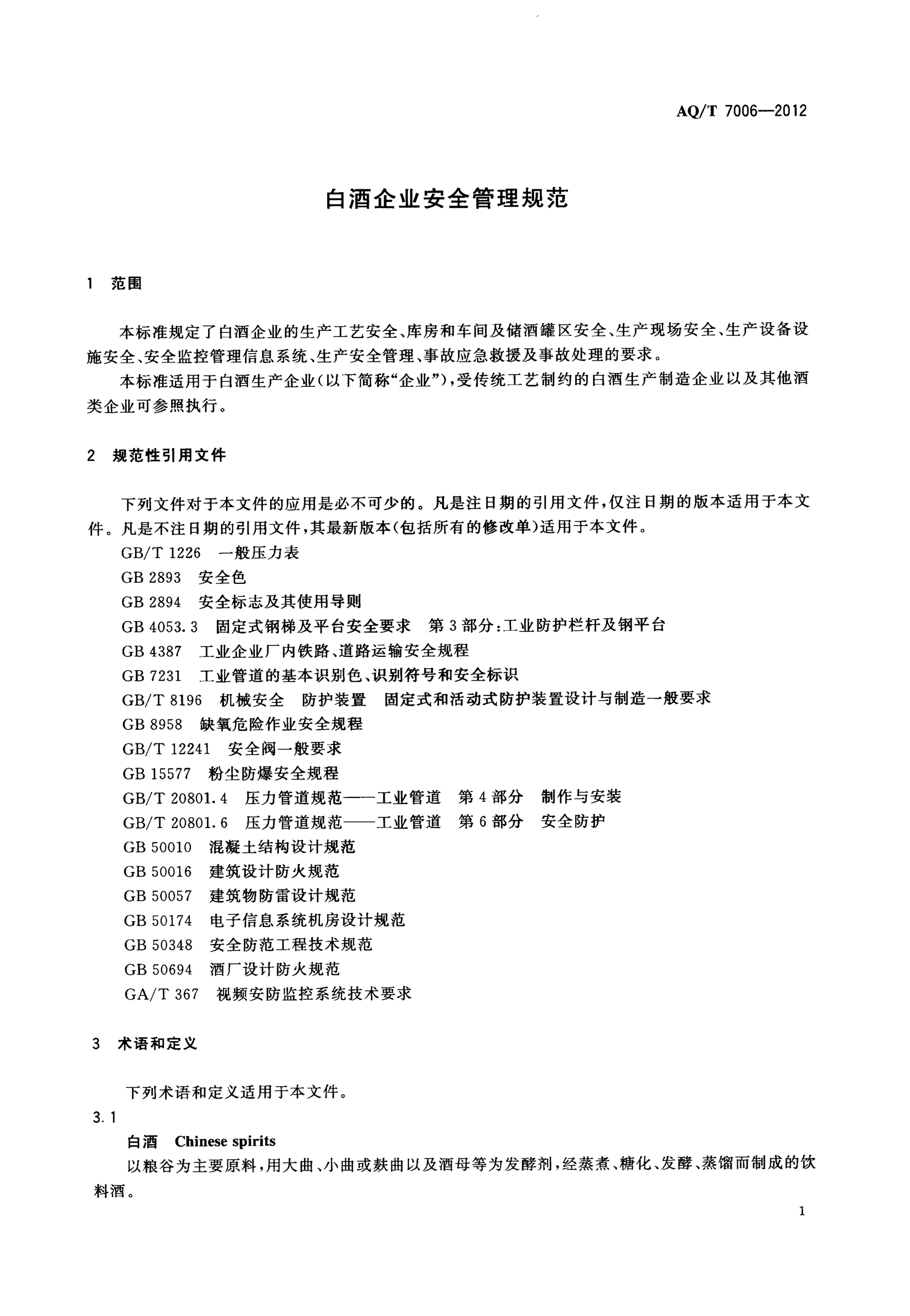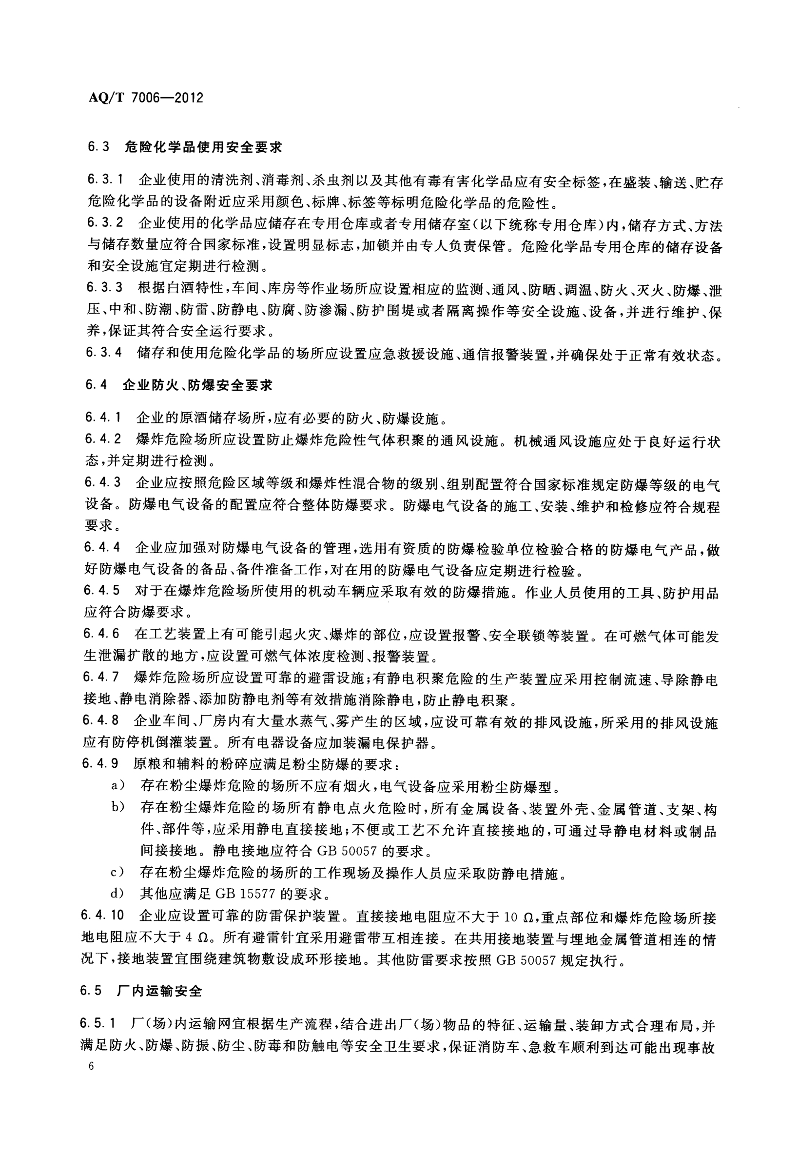《白酒企业安全管理规范》(AQ_T7006-2012)