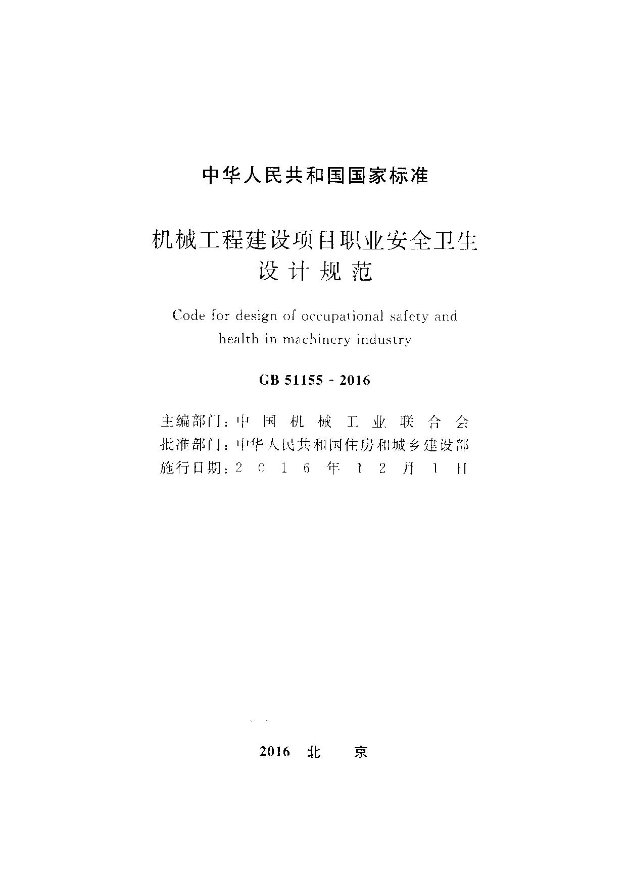 《机械工程建设项目职业安全卫生设计规范》(GB51155-2016)