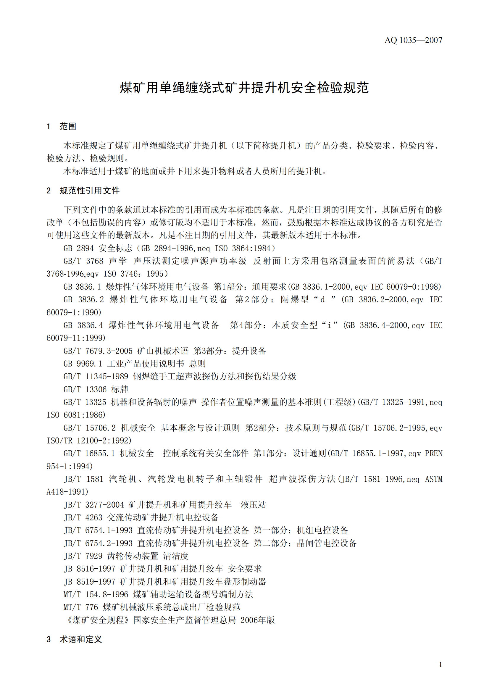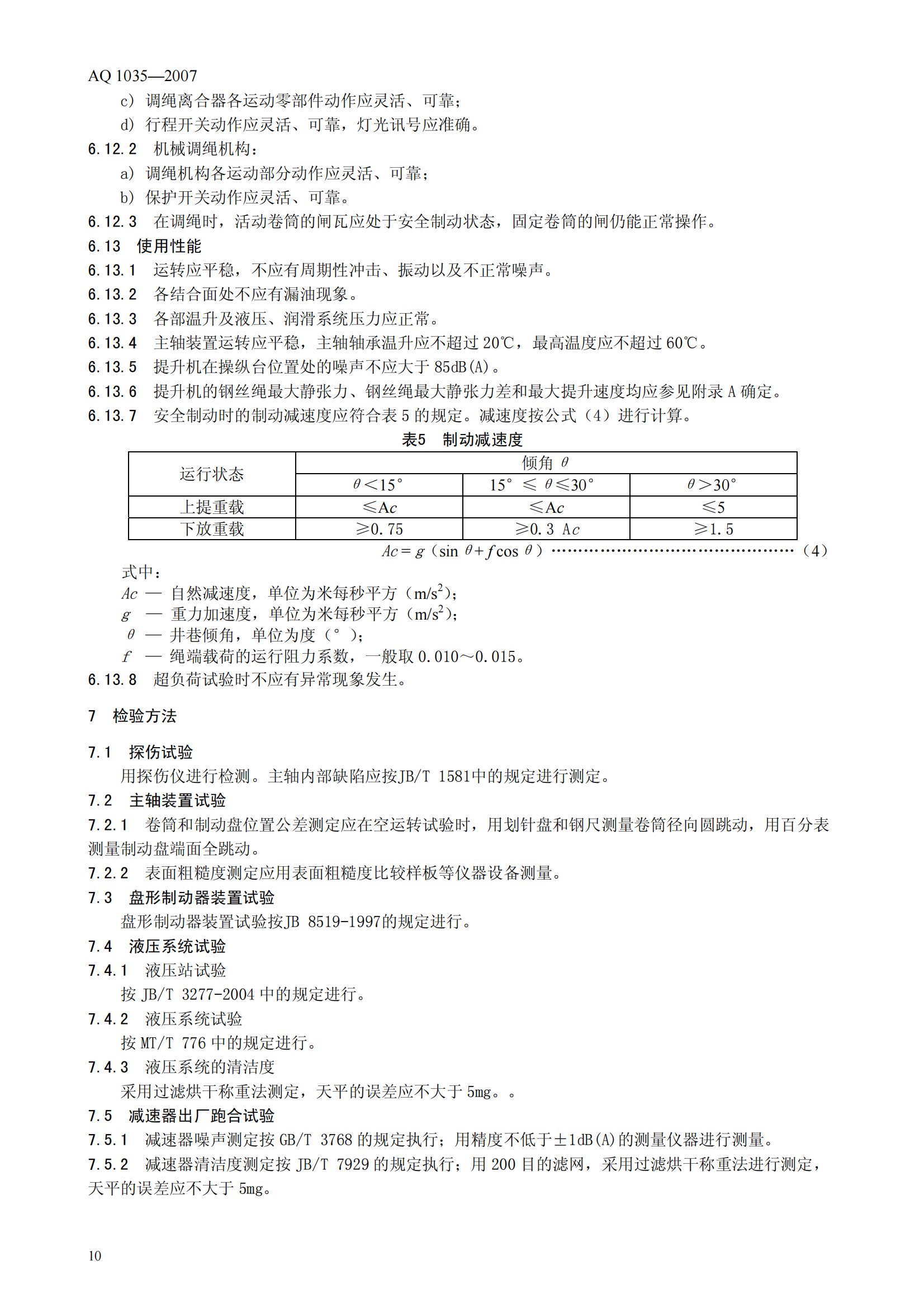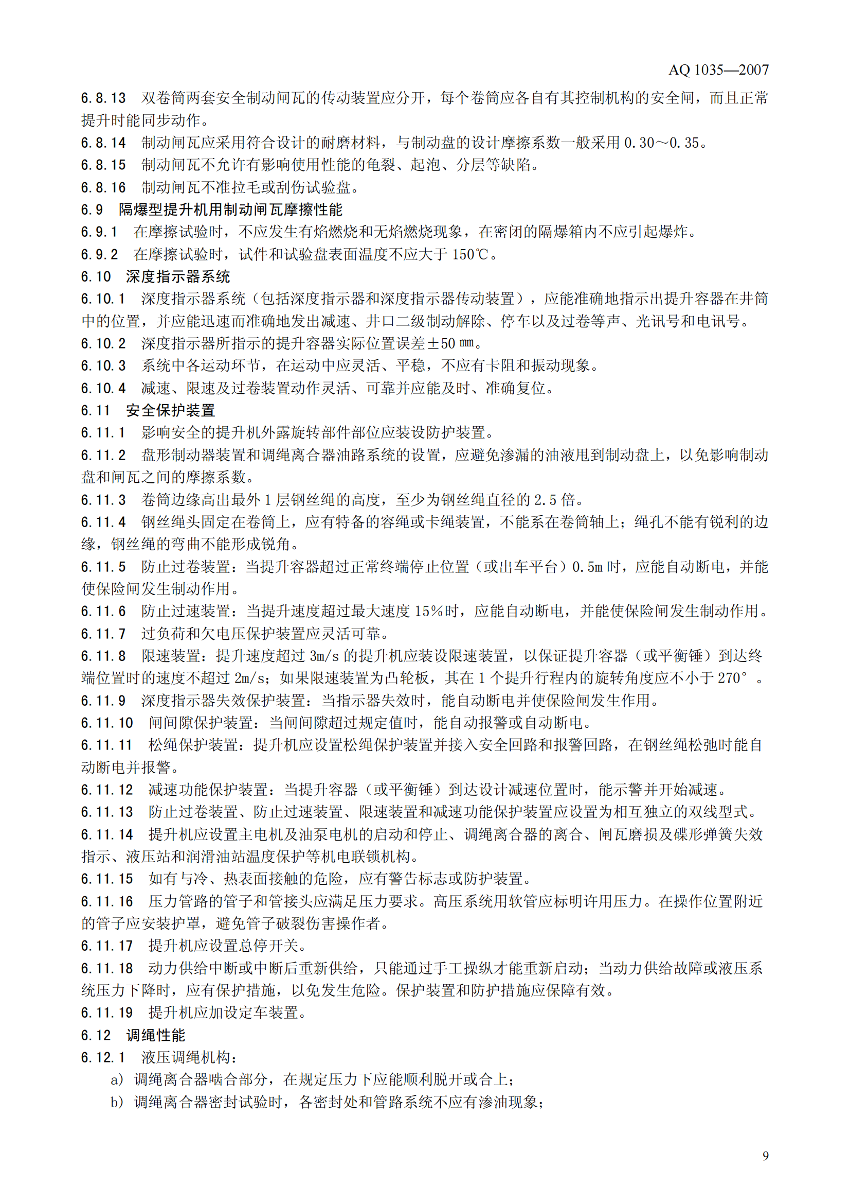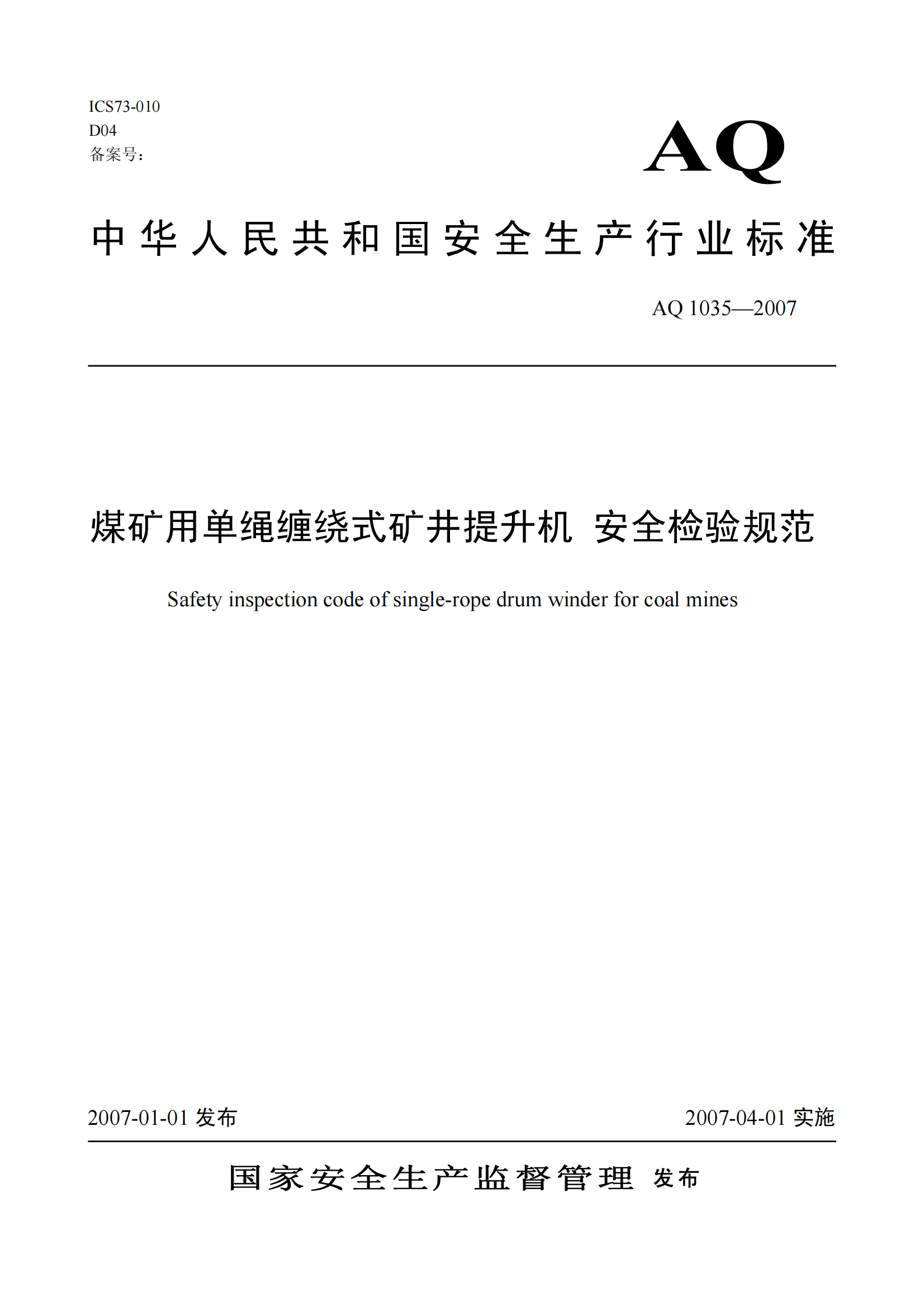 《煤矿用单绳缠绕式提升绞车安全检验规范》(AQ1035-2007)