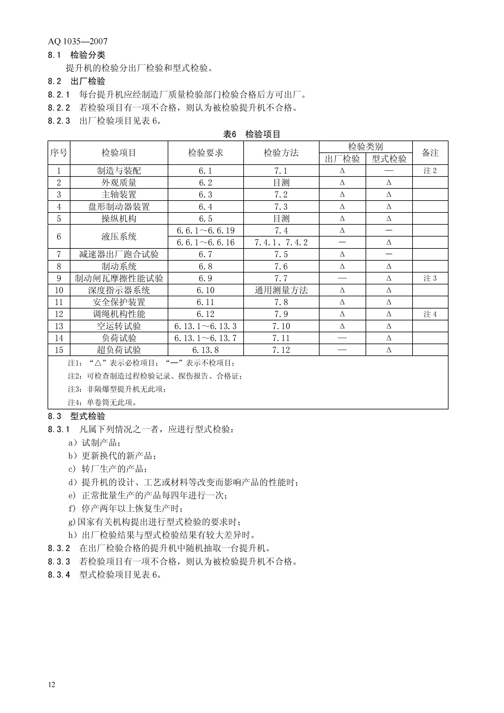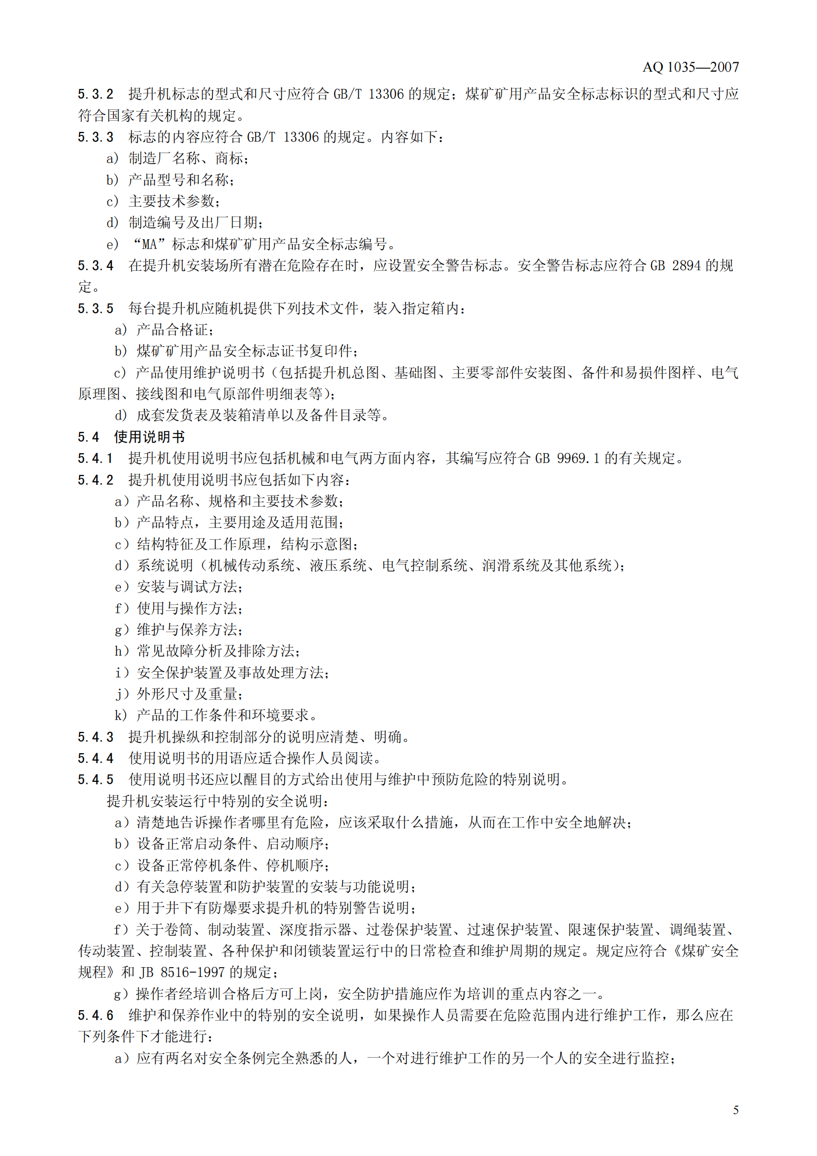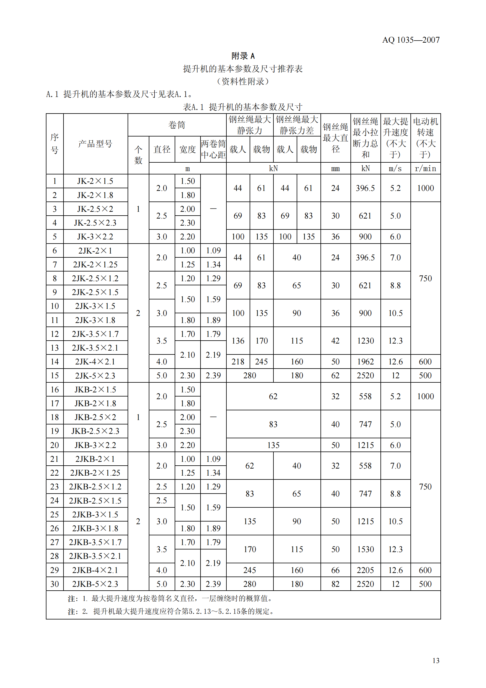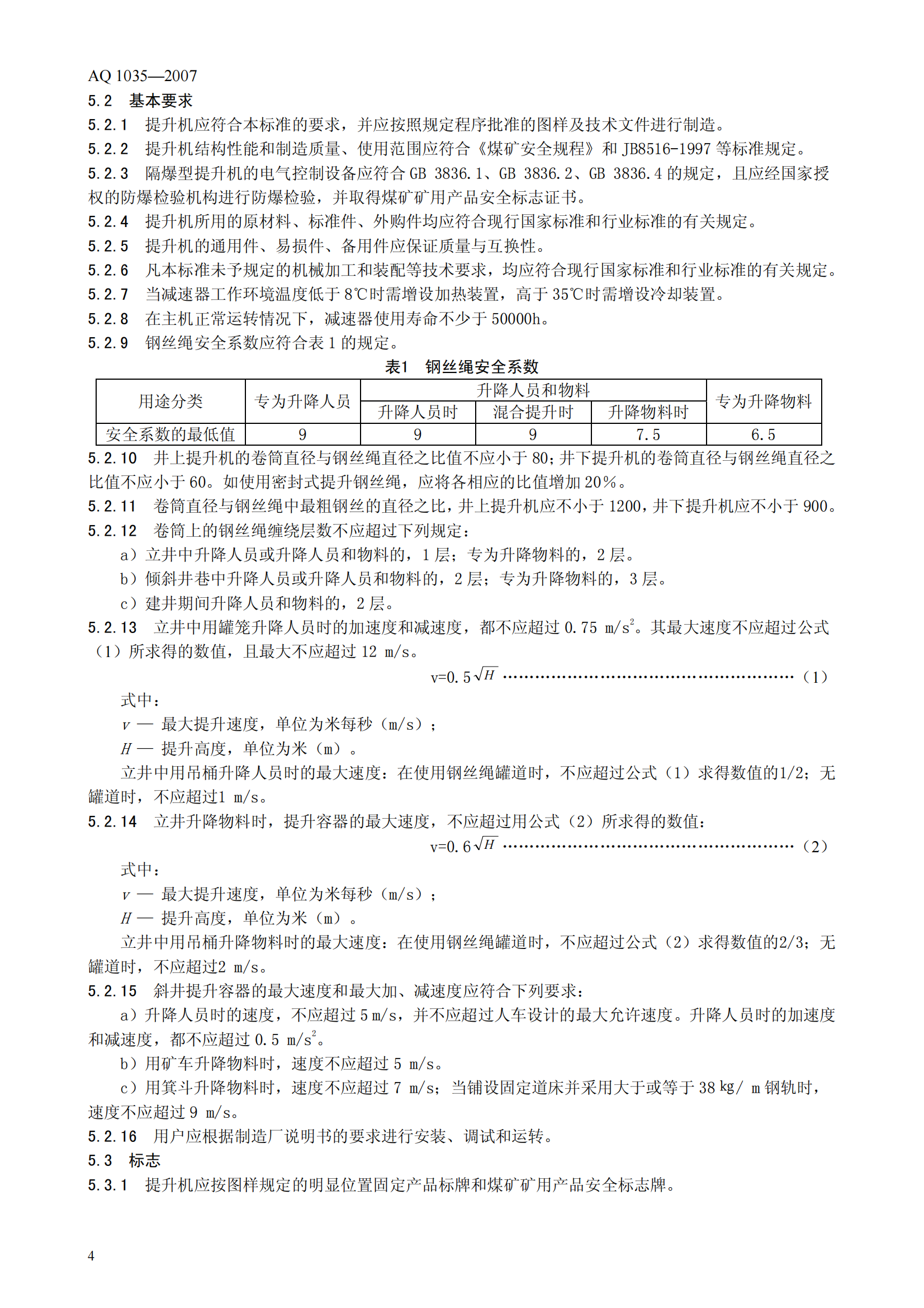 《煤矿用单绳缠绕式提升绞车安全检验规范》(AQ1035-2007)