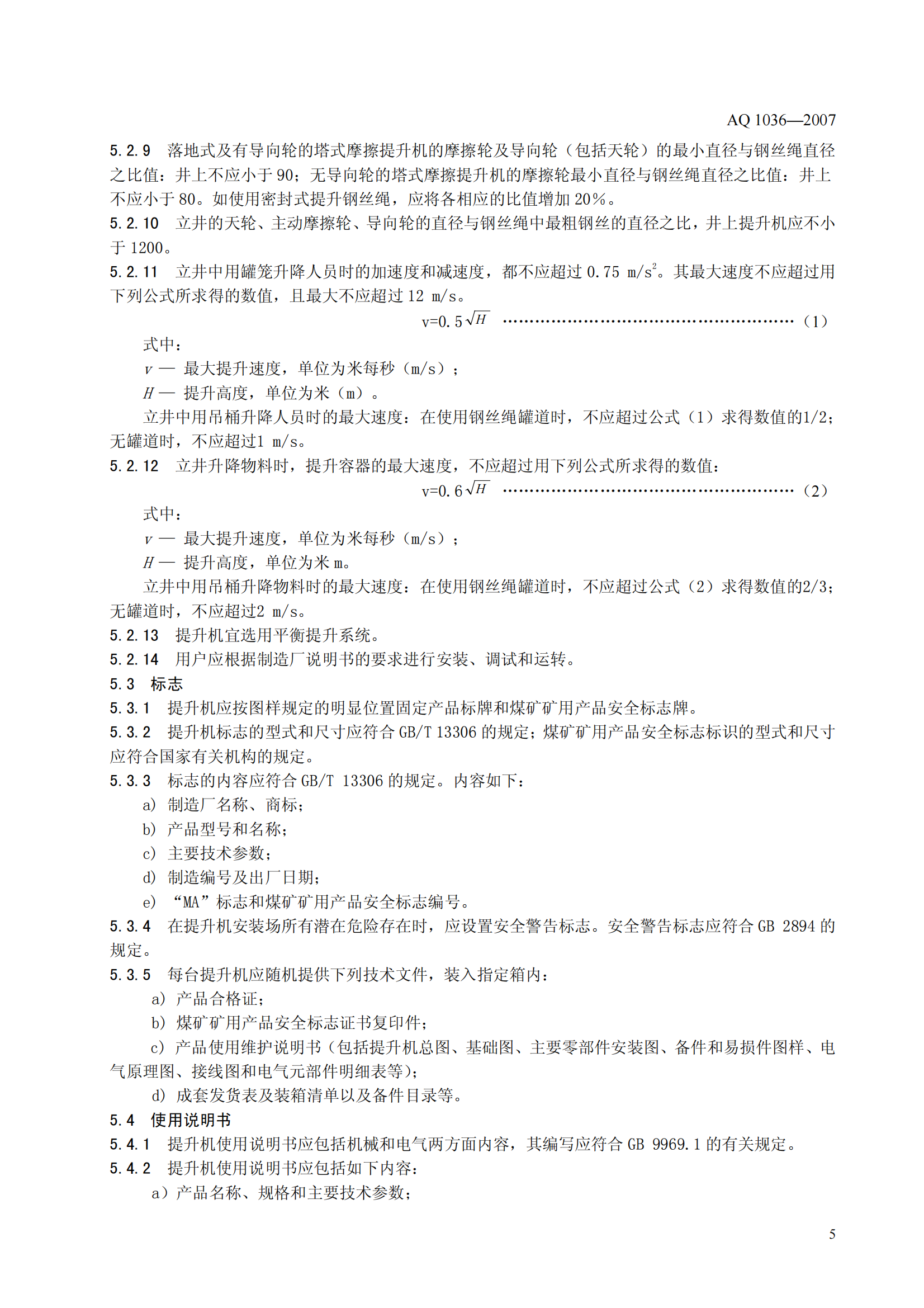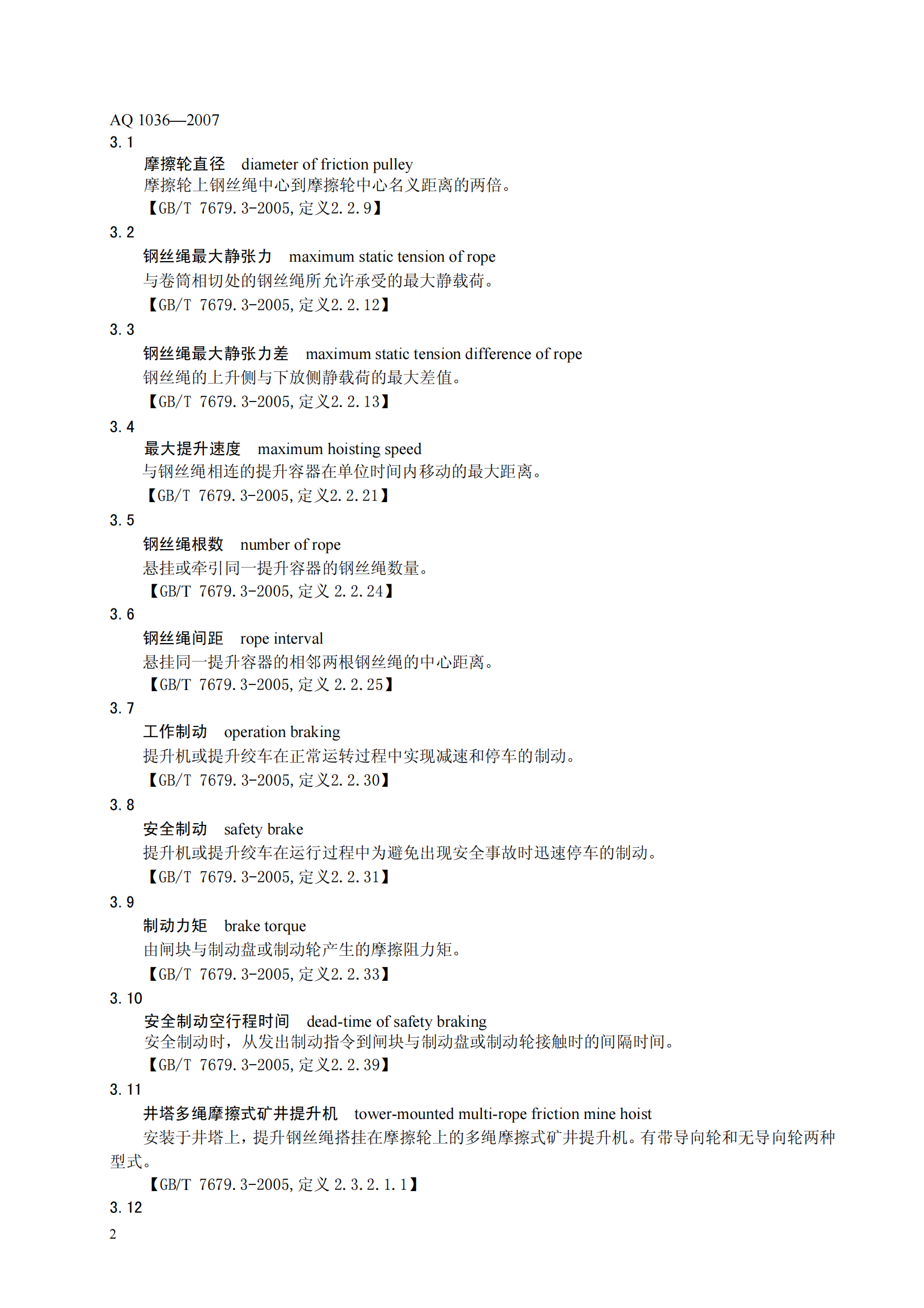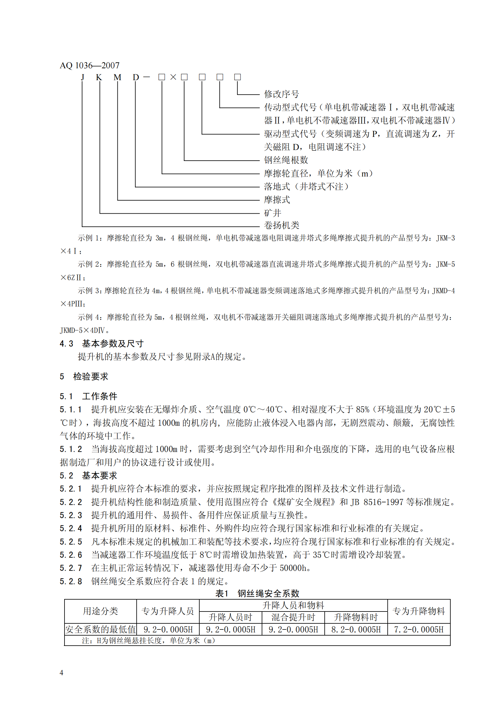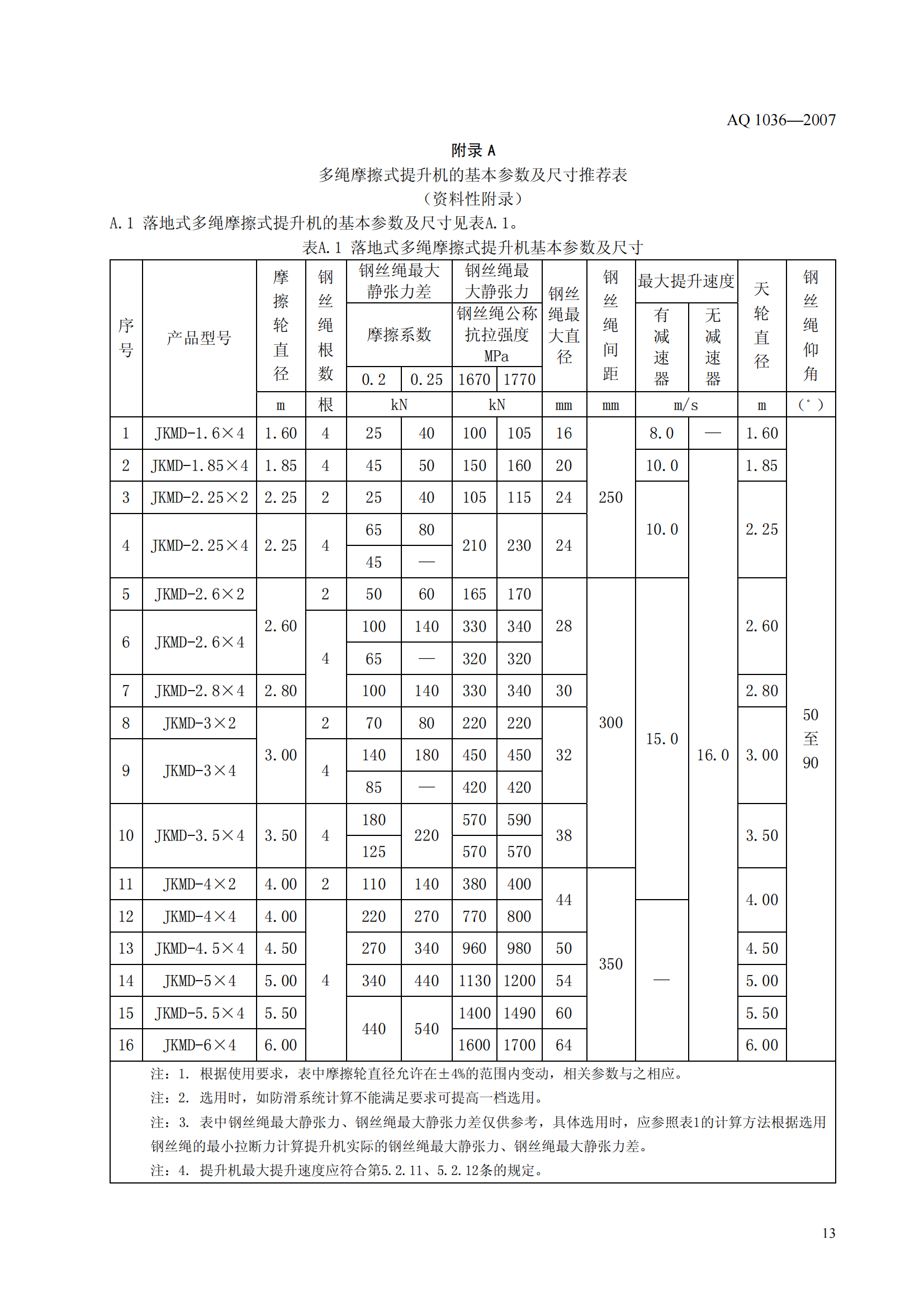 《煤矿用多绳摩擦式提升绞车安全检验规范》(AQ1036-2007)