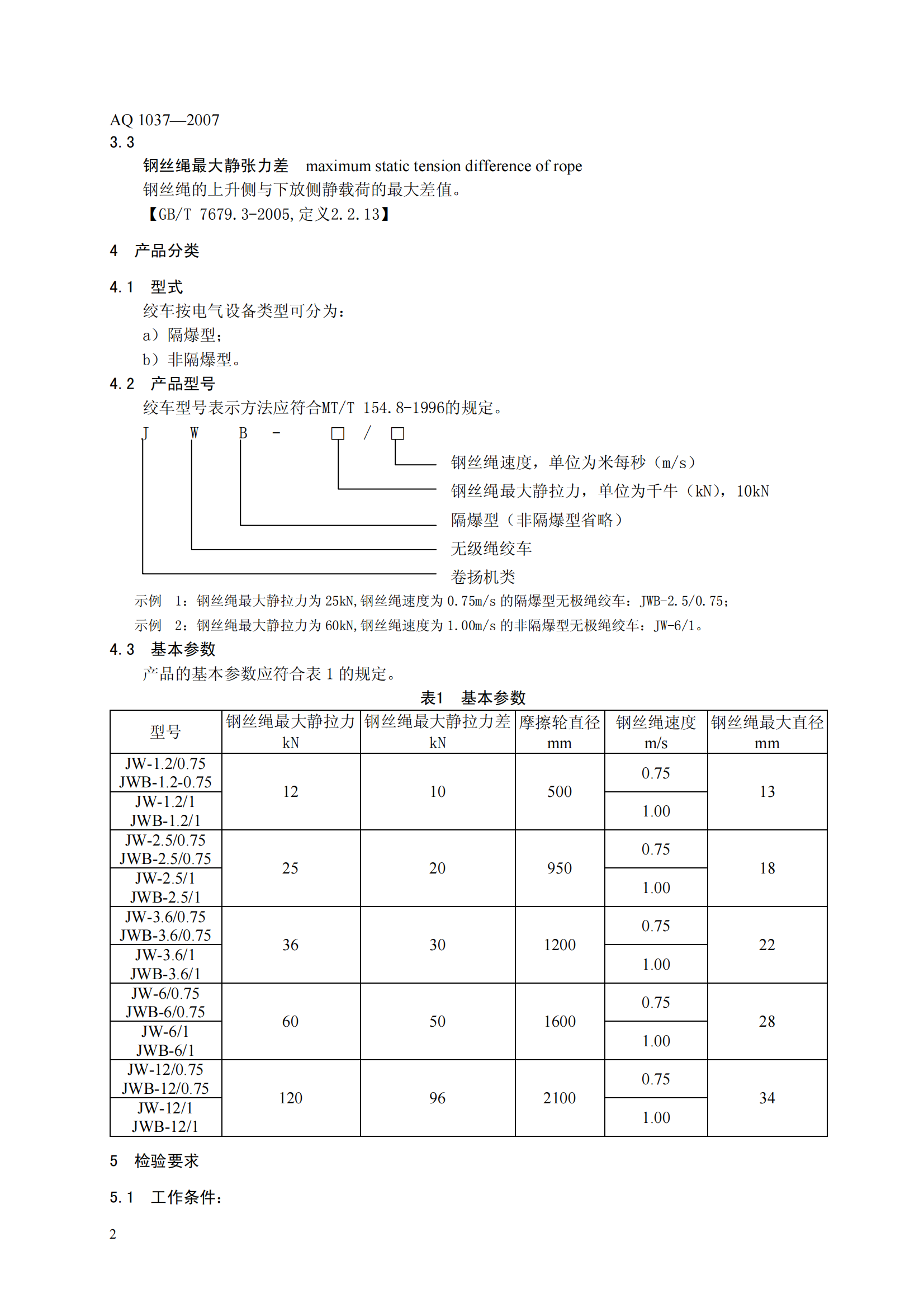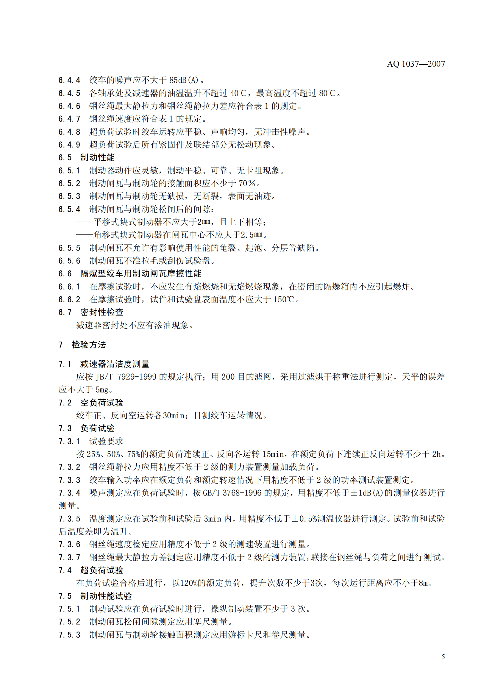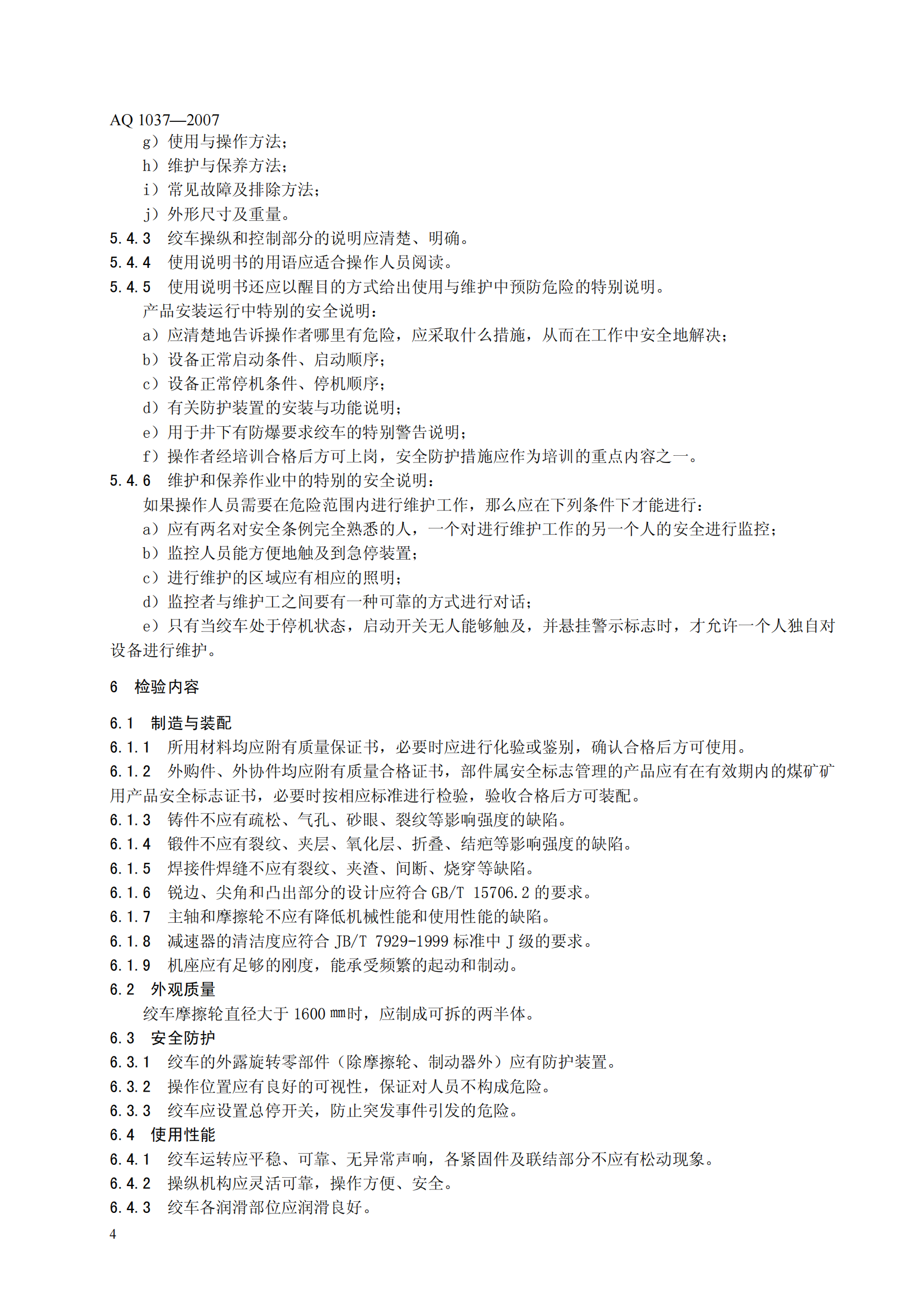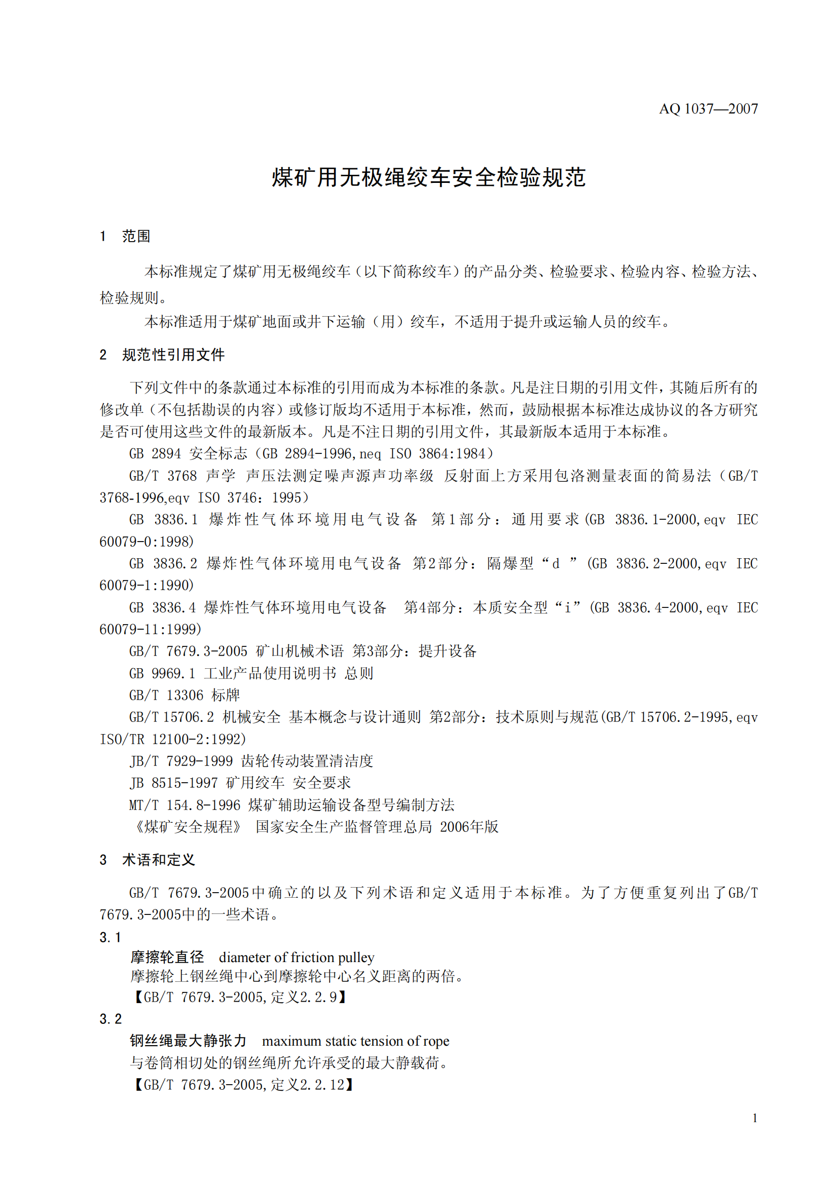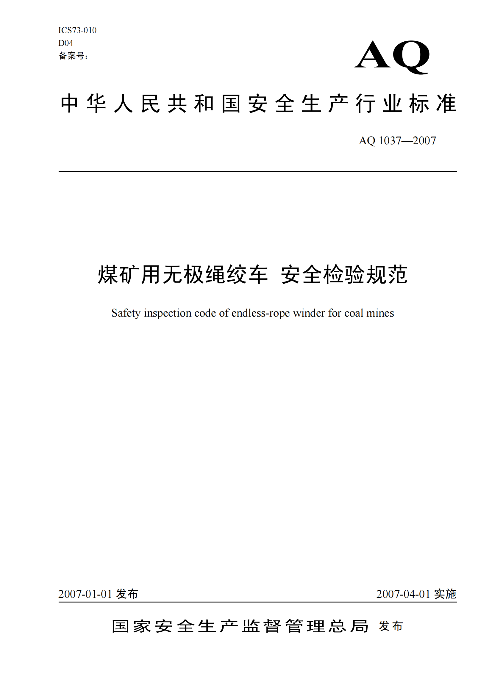 《煤矿用无极绳绞车安全检验规范》(AQ1037-2007)