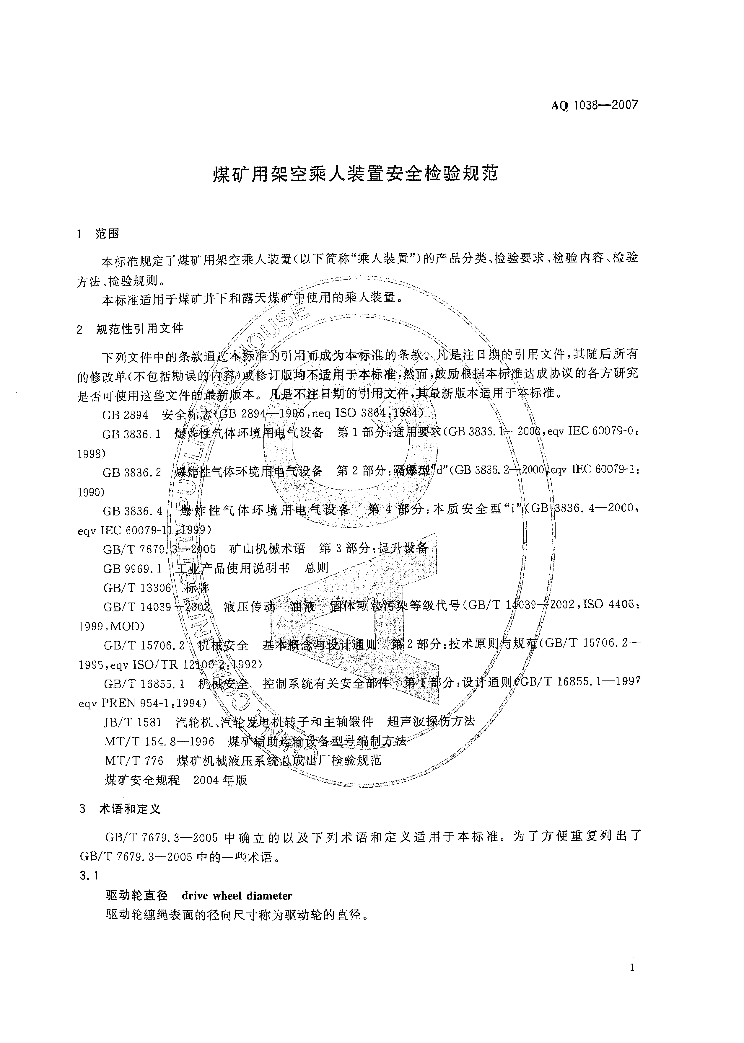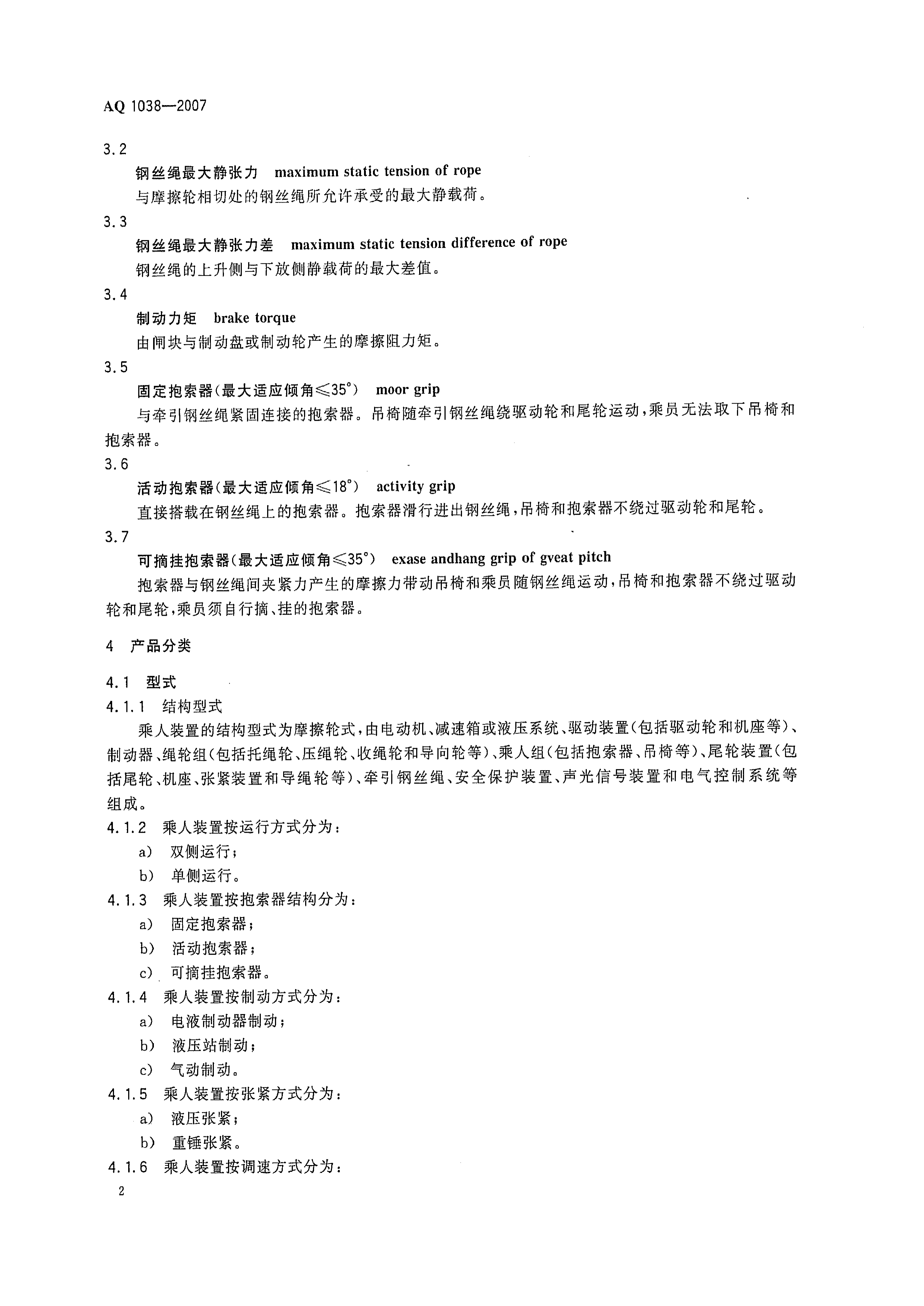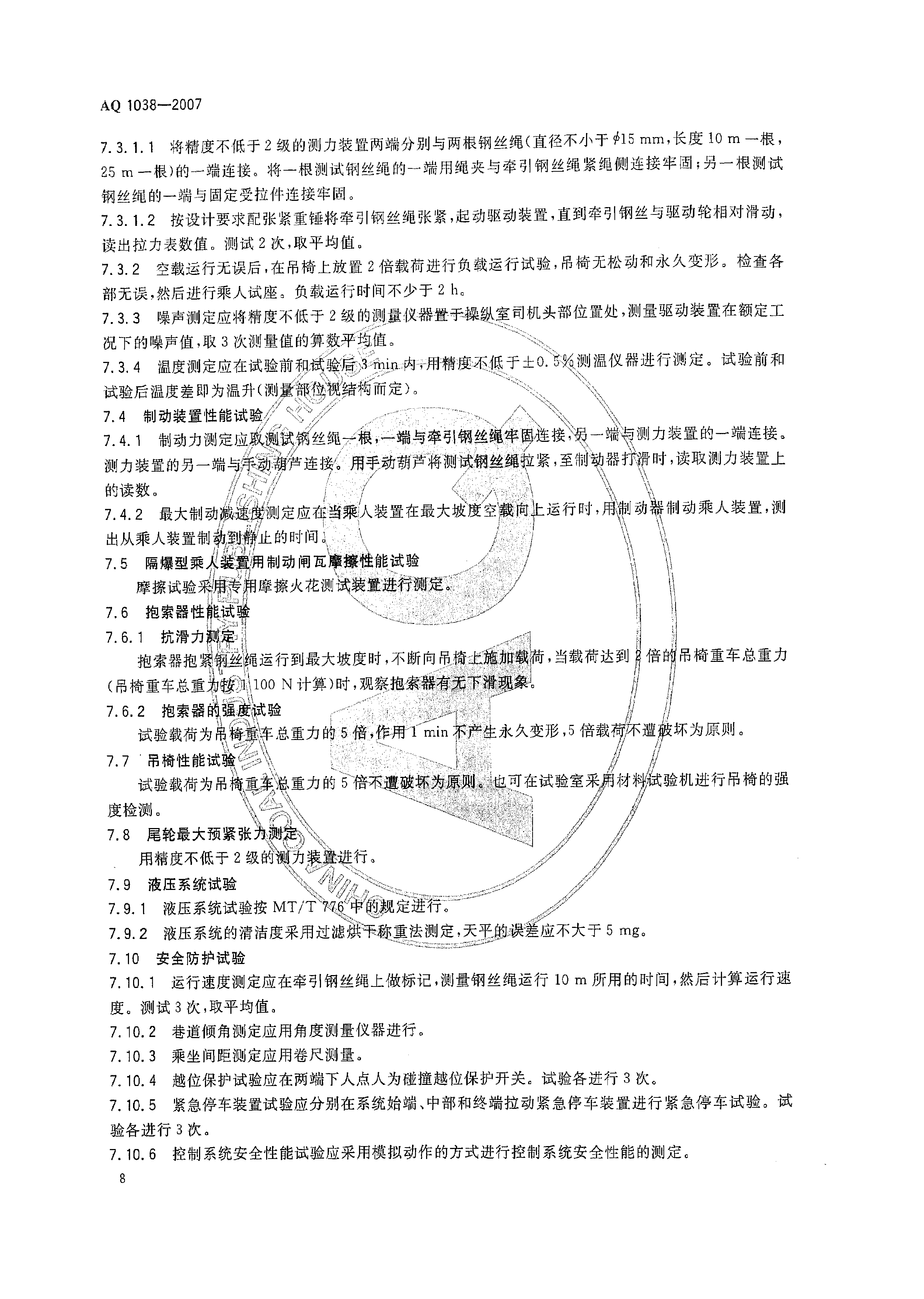 《煤矿用架空乘人装置安全检验规范》(AQ1038-2007)