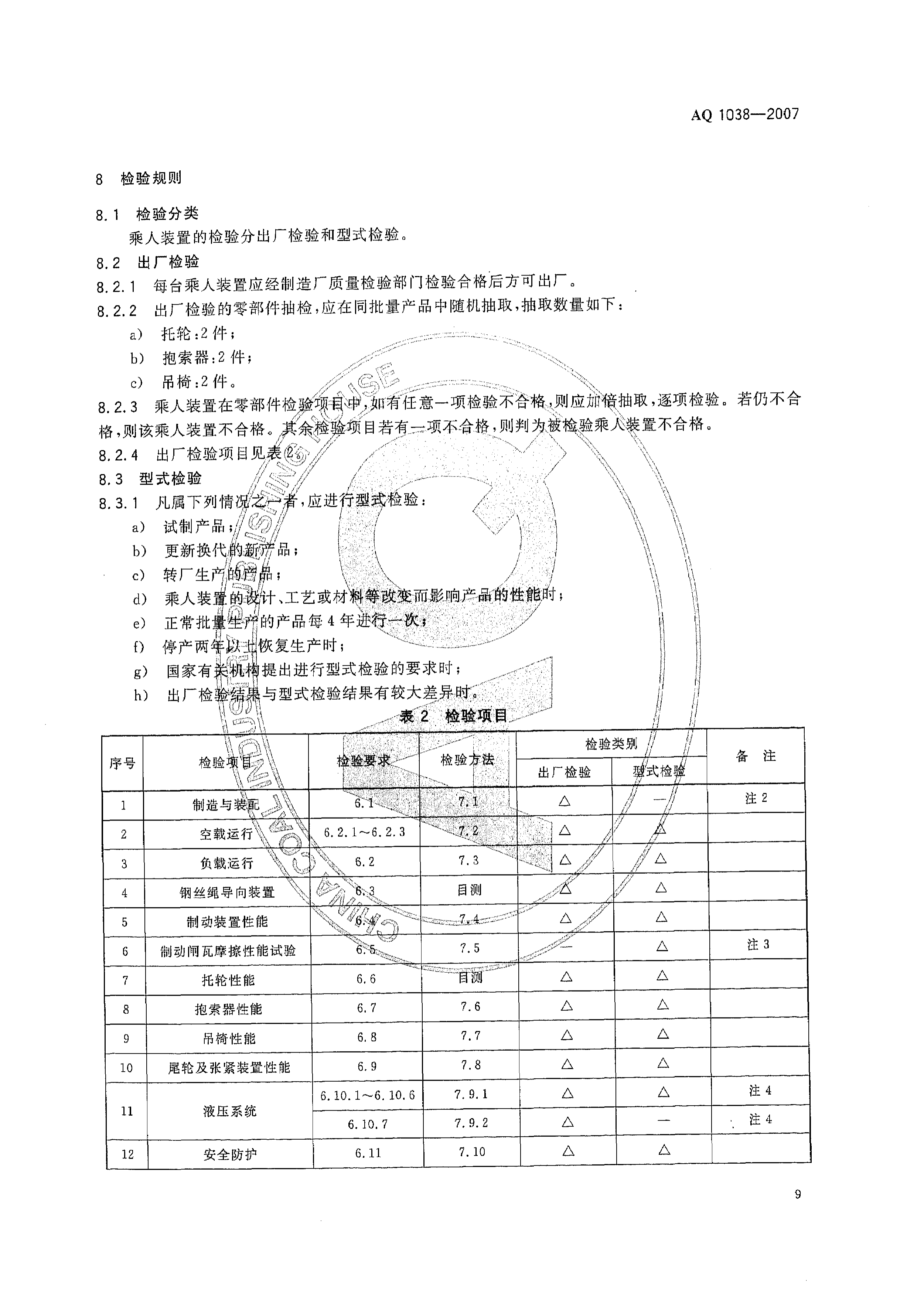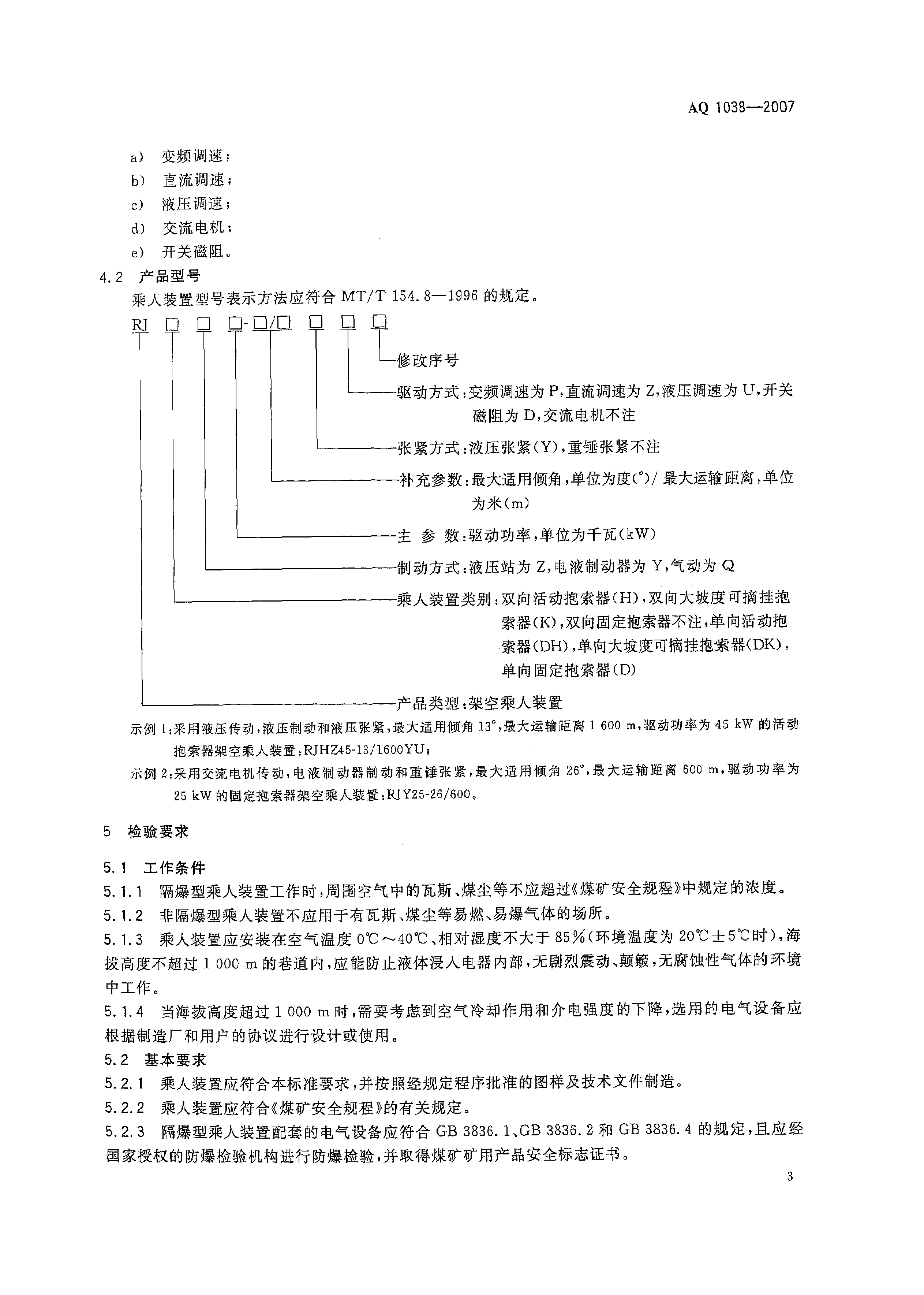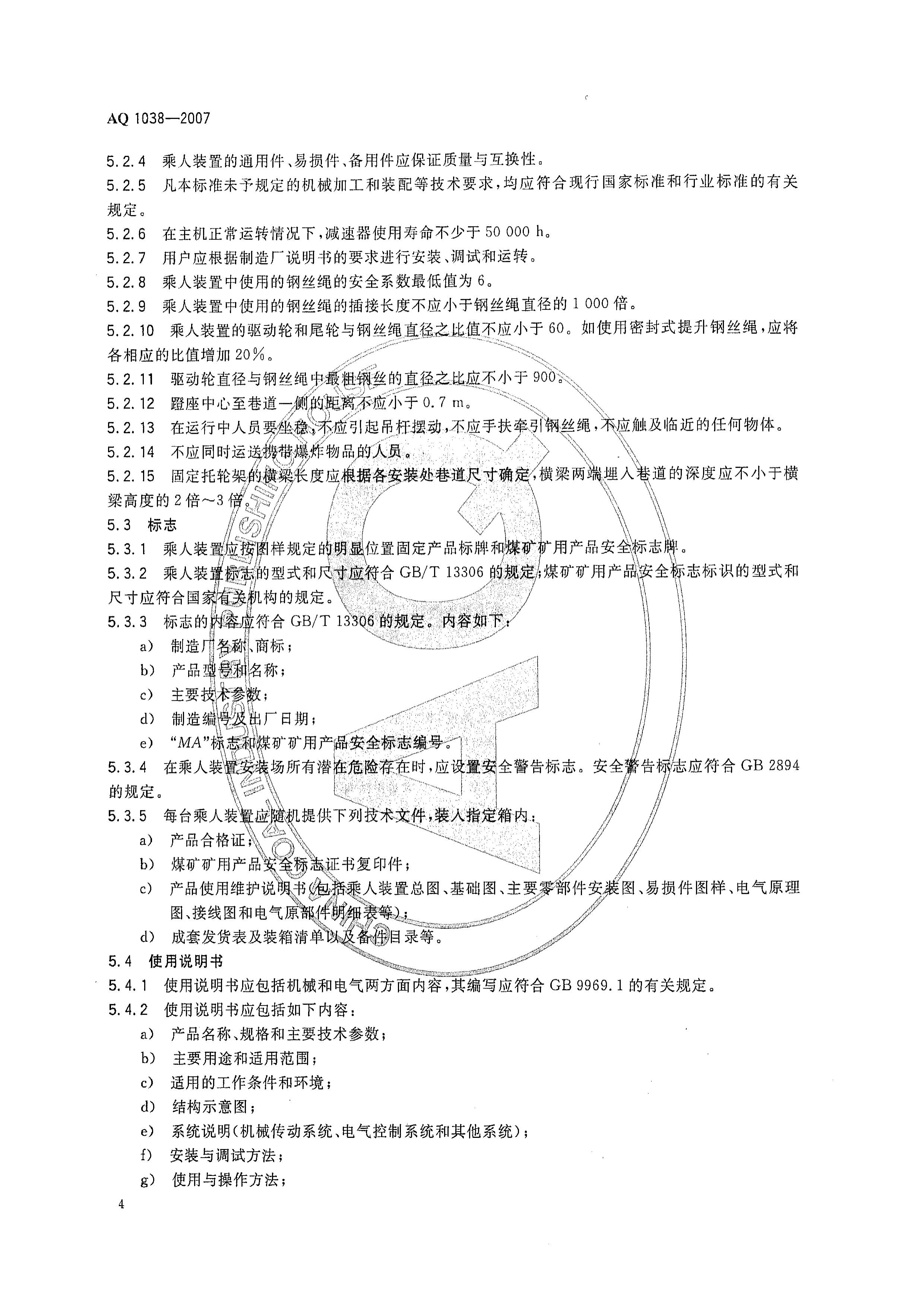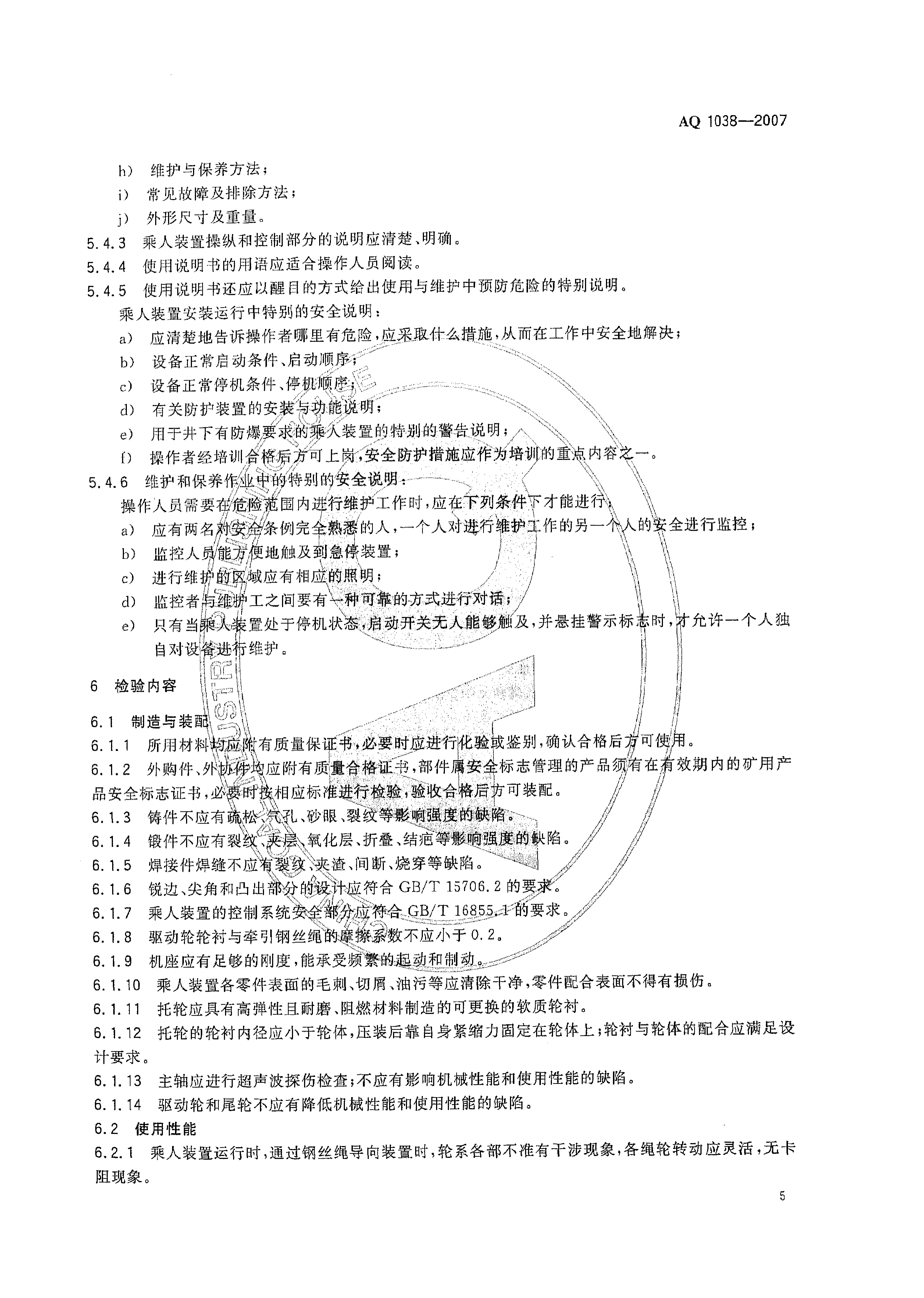 《煤矿用架空乘人装置安全检验规范》(AQ1038-2007)
