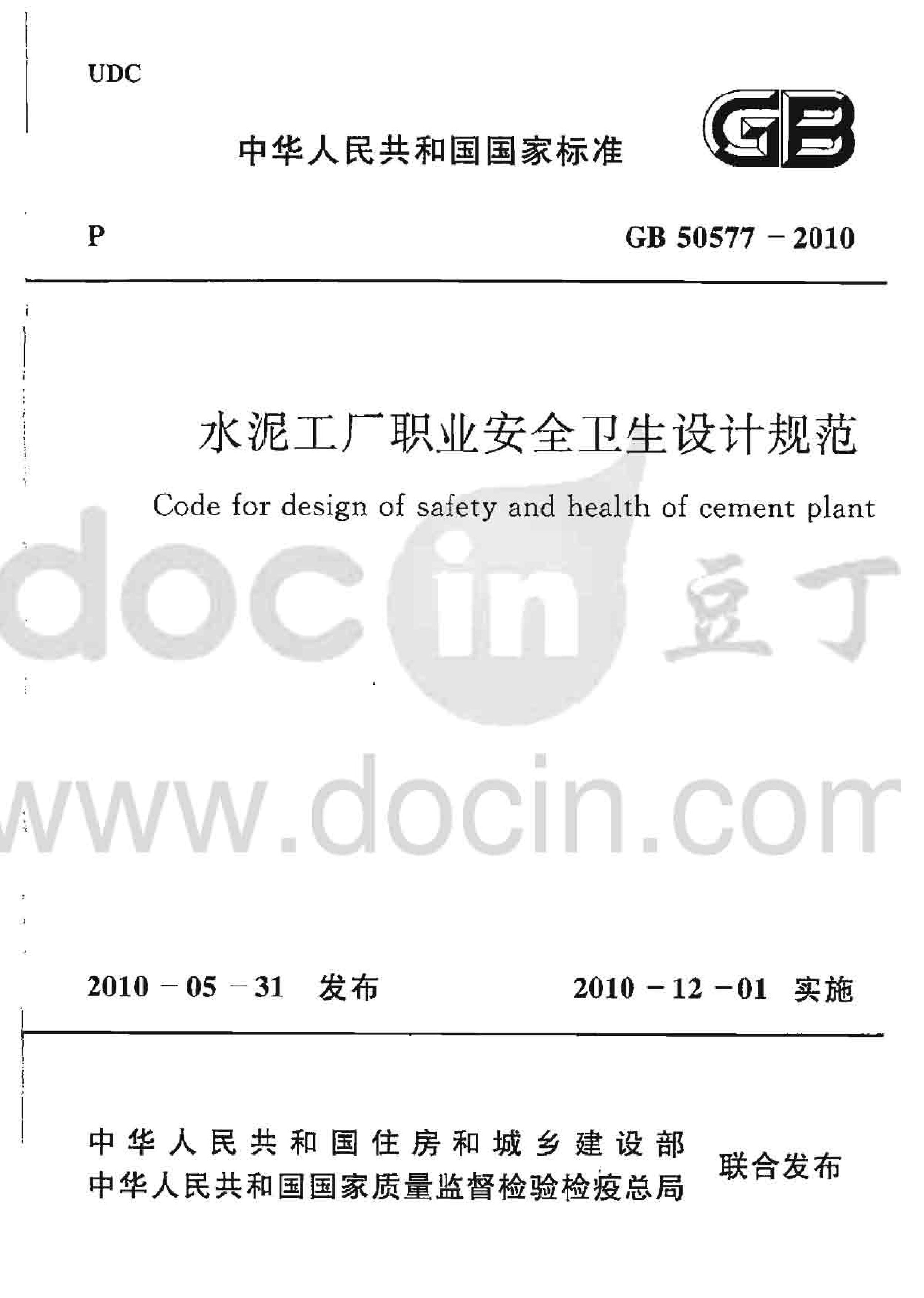 《水泥工厂职业安全卫生设计规范》(GB50577-2010)