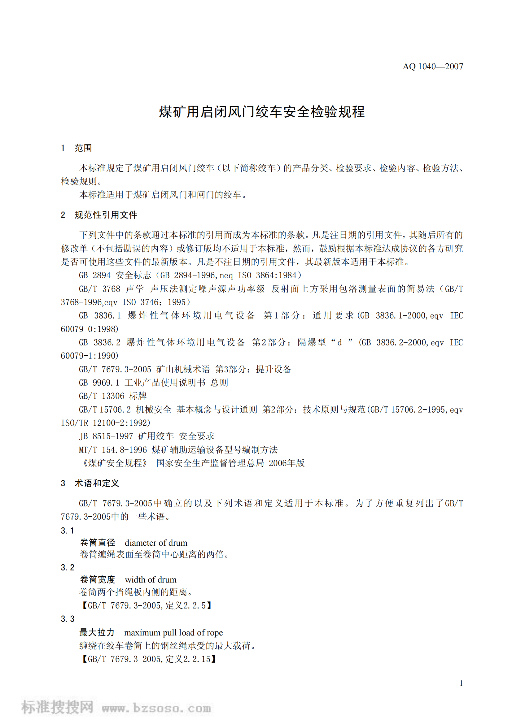 《煤矿用启闭风门绞车安全检验规范》(AQ1040-2007)