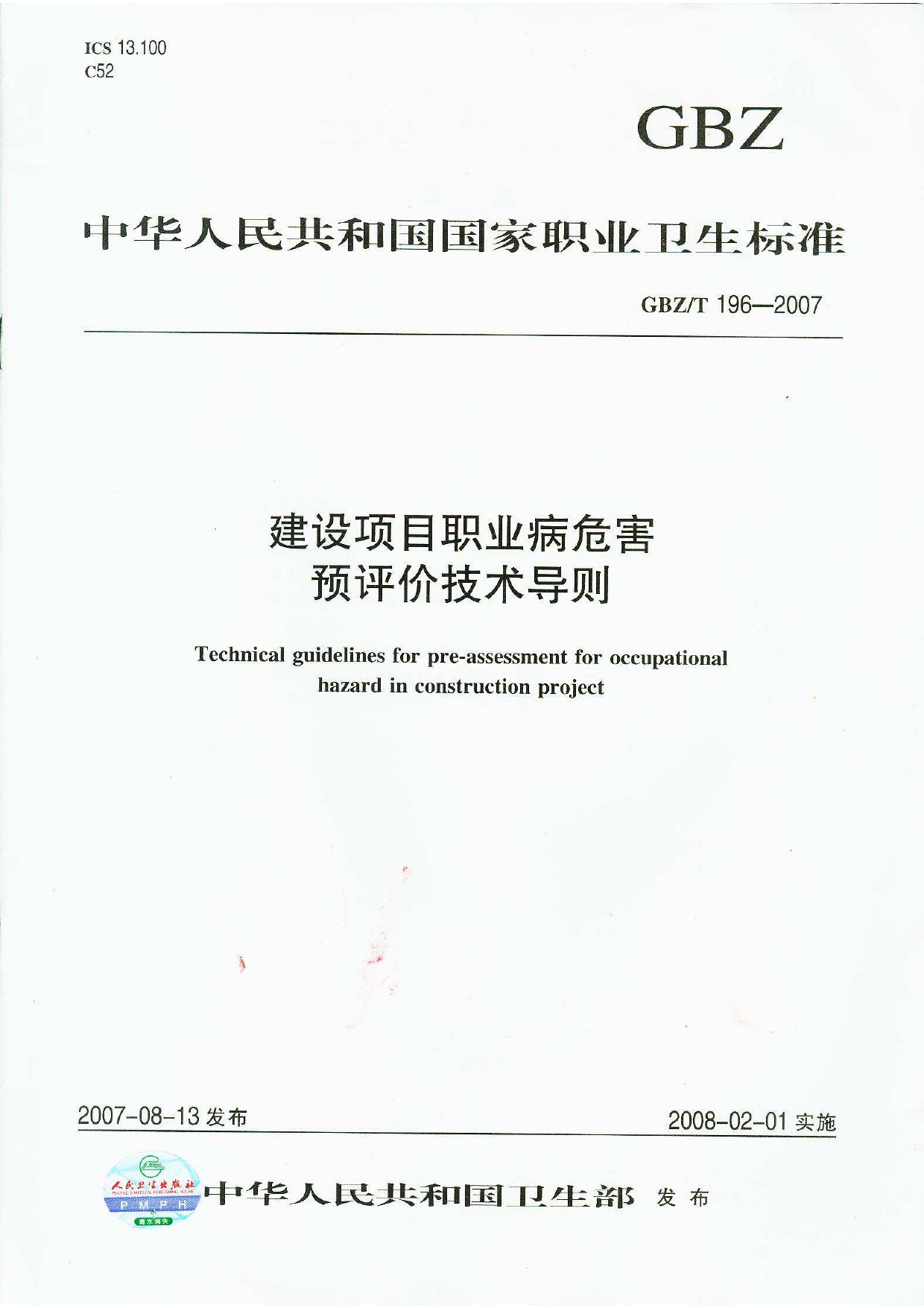 《建设项目职业病危害控制效果评价技术导则》(GBZ/T197-2007)