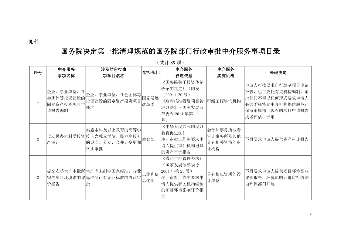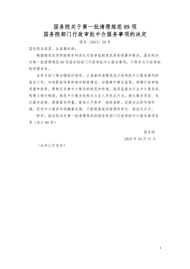 《国务院关于第一批清理规范89项国务院部门行政审批中介服务事项的决定》
