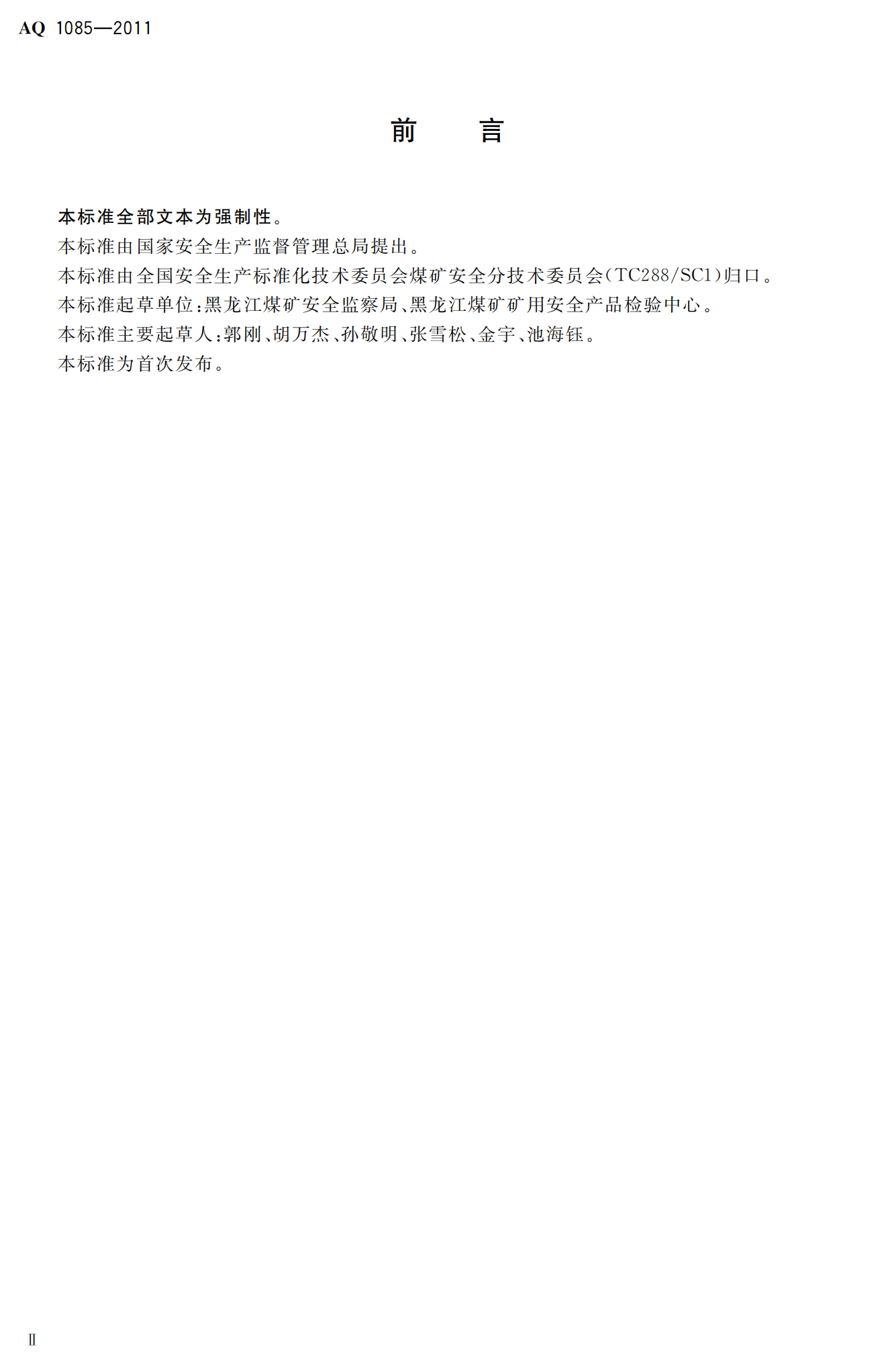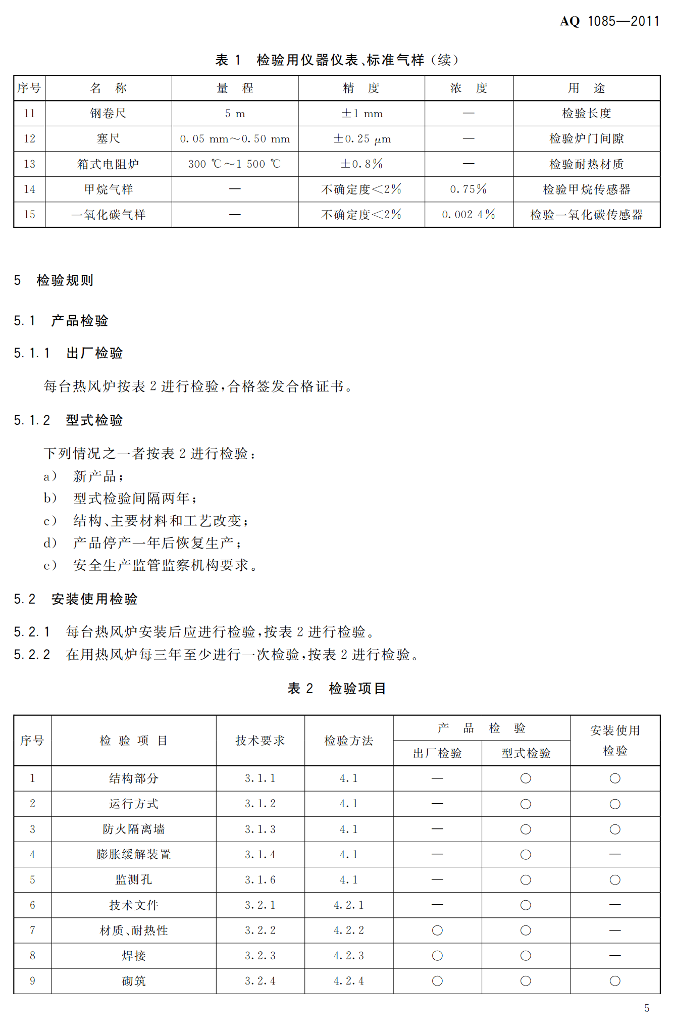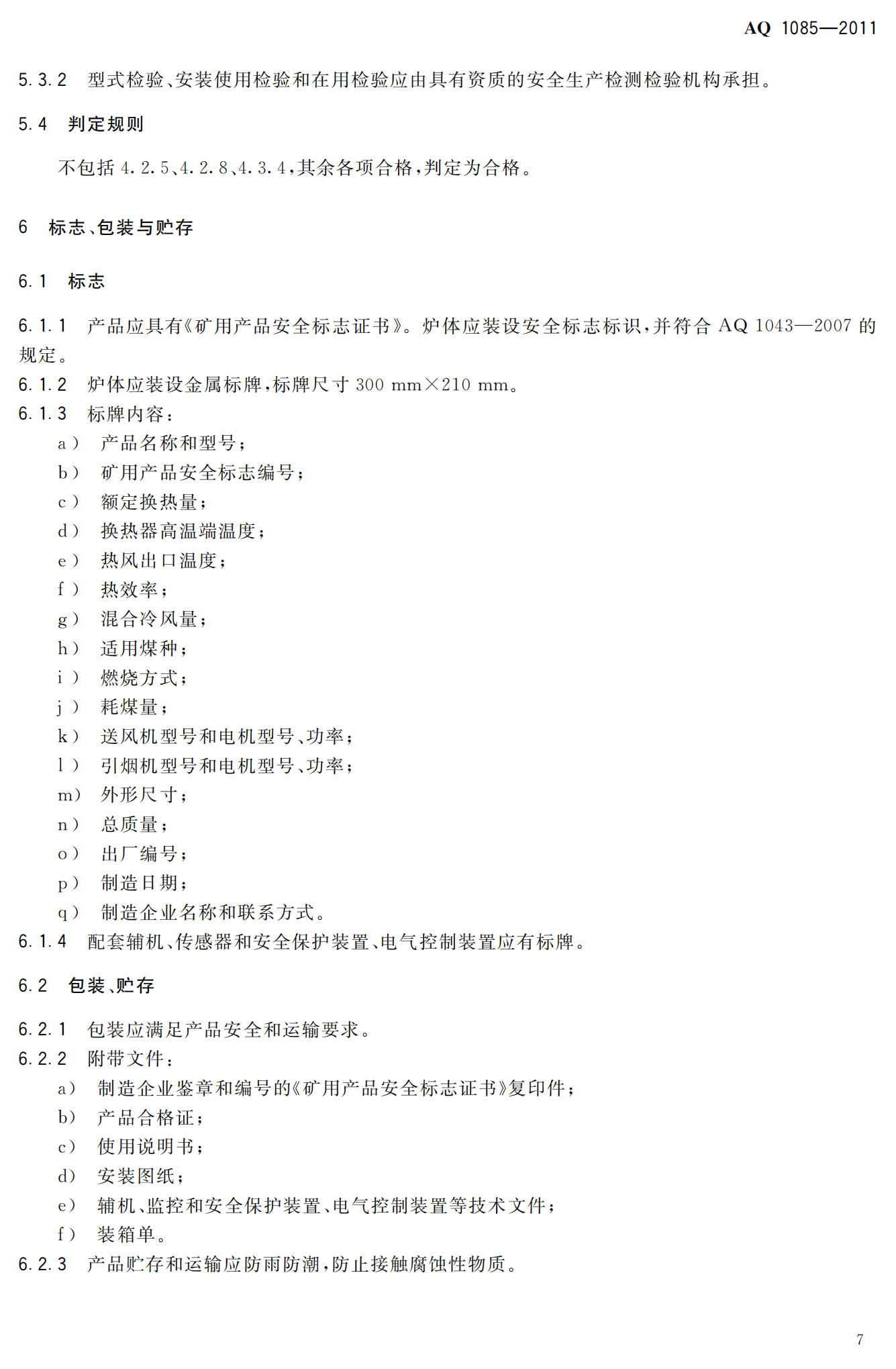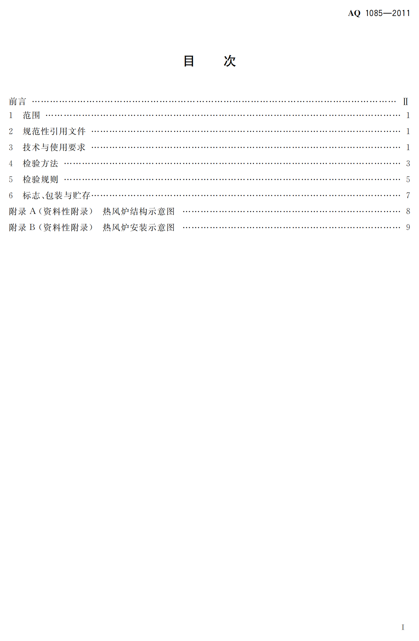 《煤矿进风井地面用燃煤热风炉安全技术条件》(AQ1085-2011)