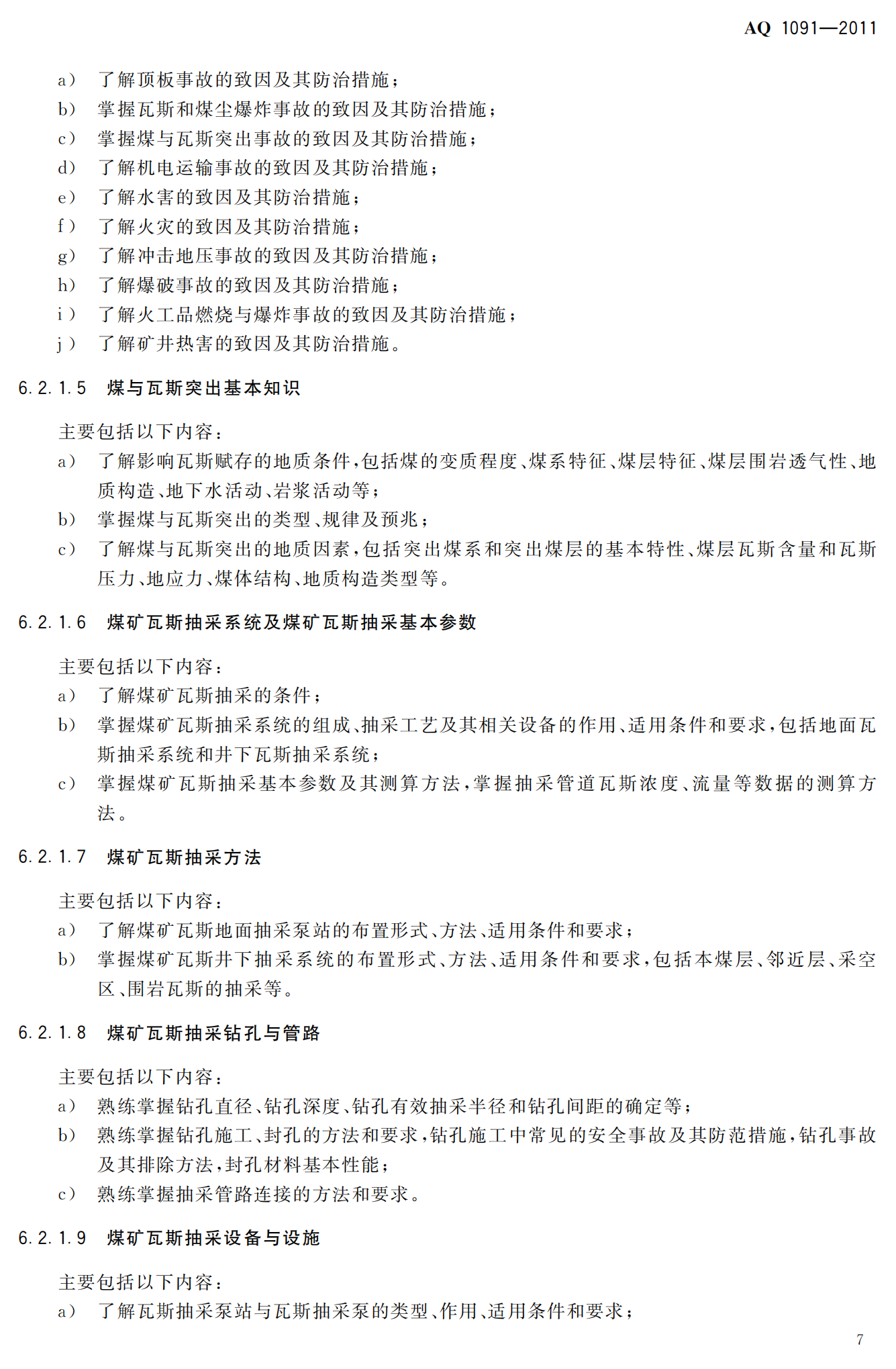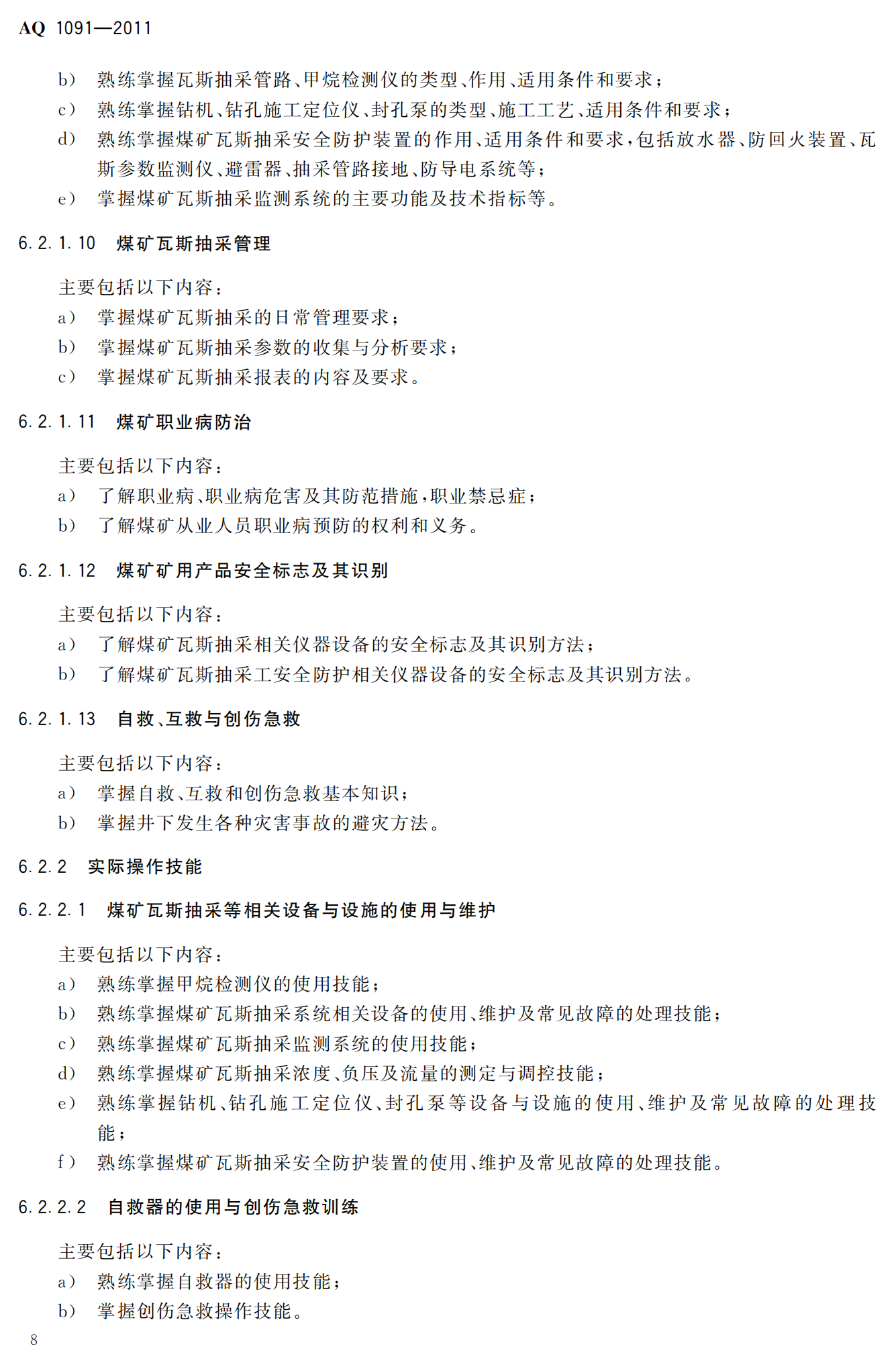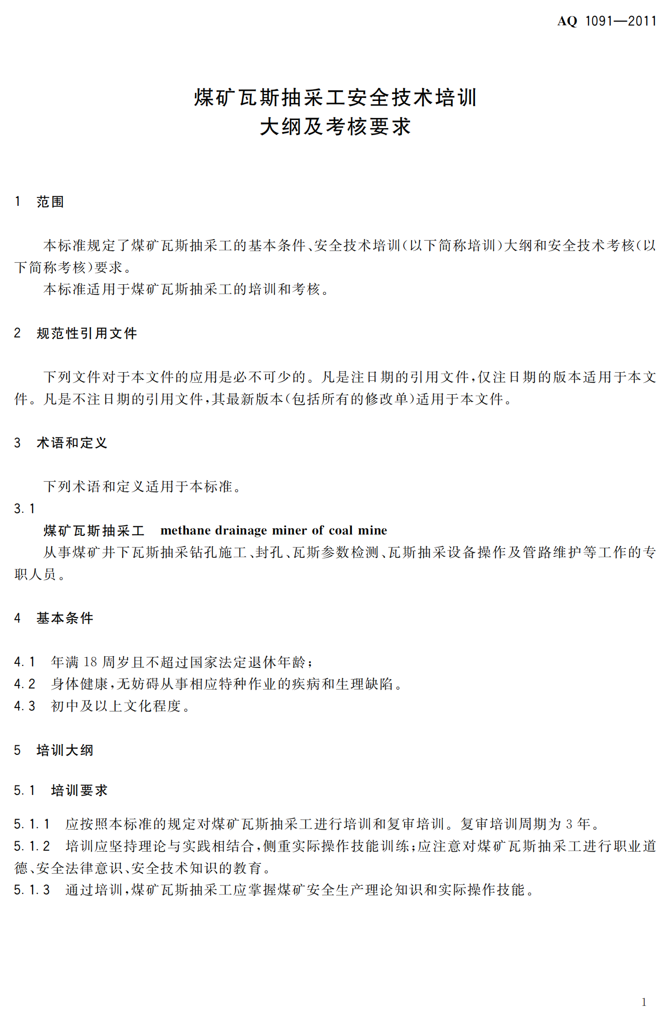 《煤矿瓦斯抽采工安全技术培训大纲及考核要求》(AQ1091-2014)