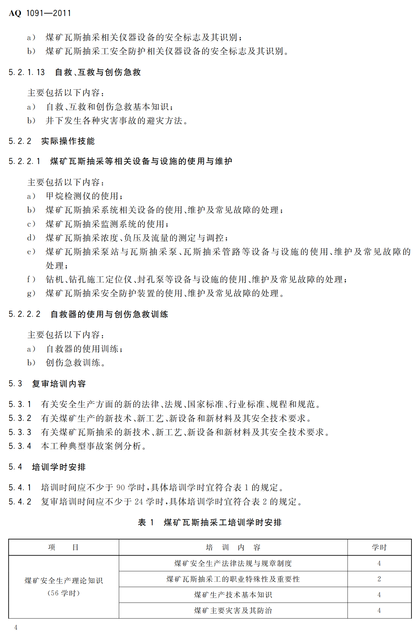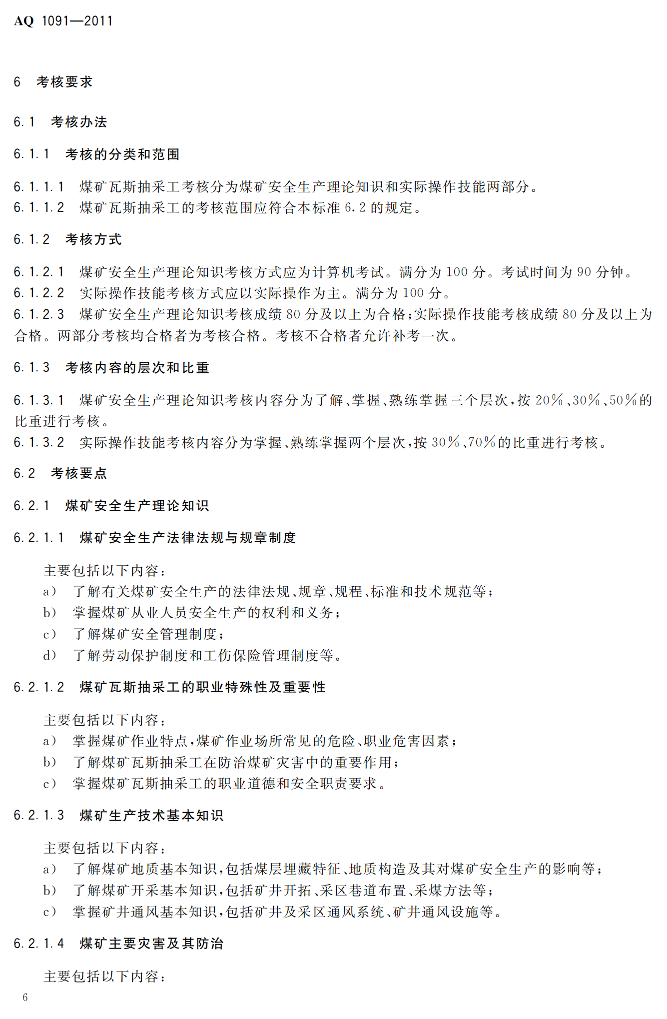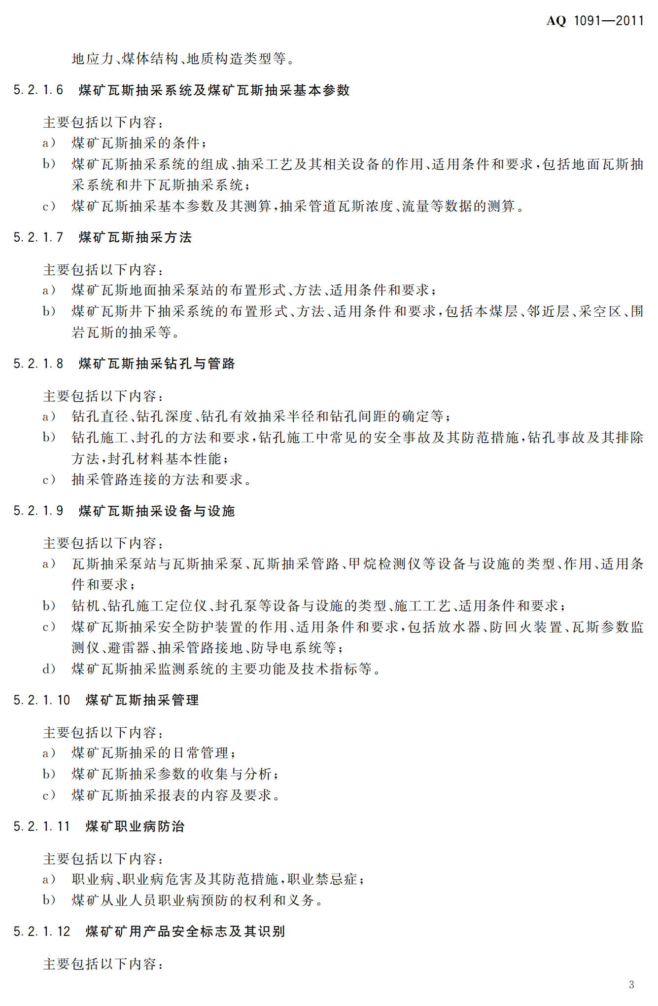 《煤矿瓦斯抽采工安全技术培训大纲及考核要求》(AQ1091-2014)